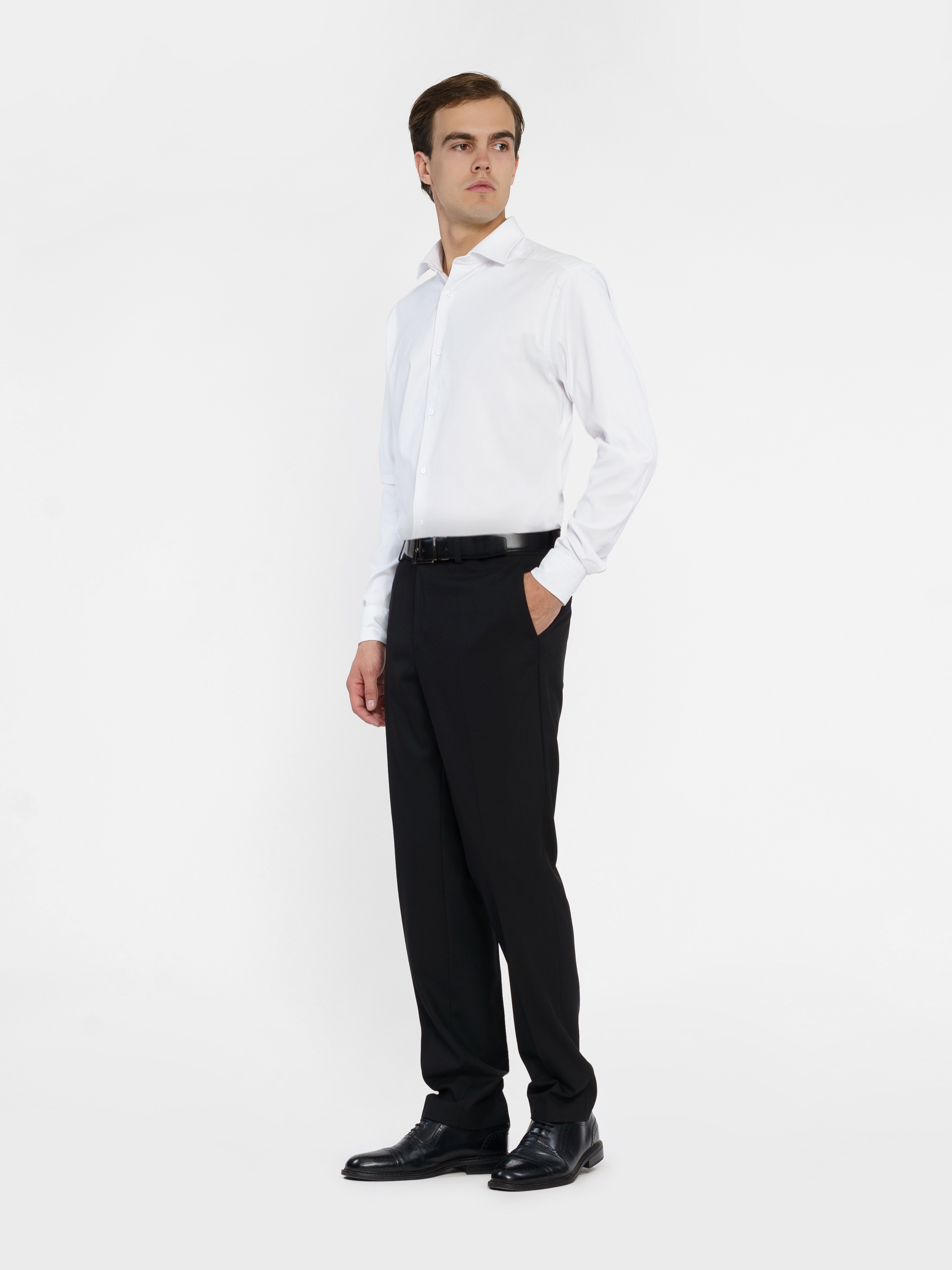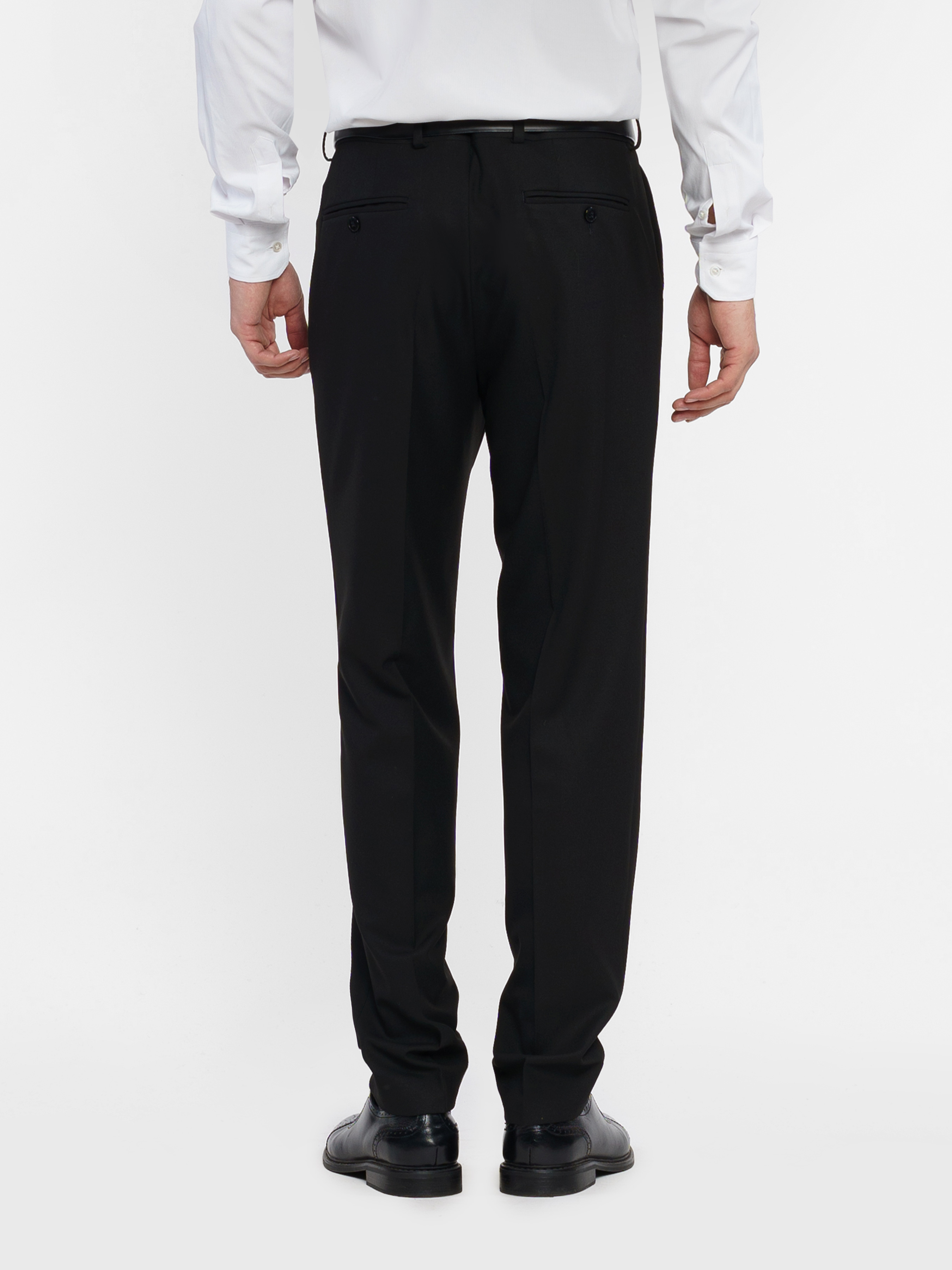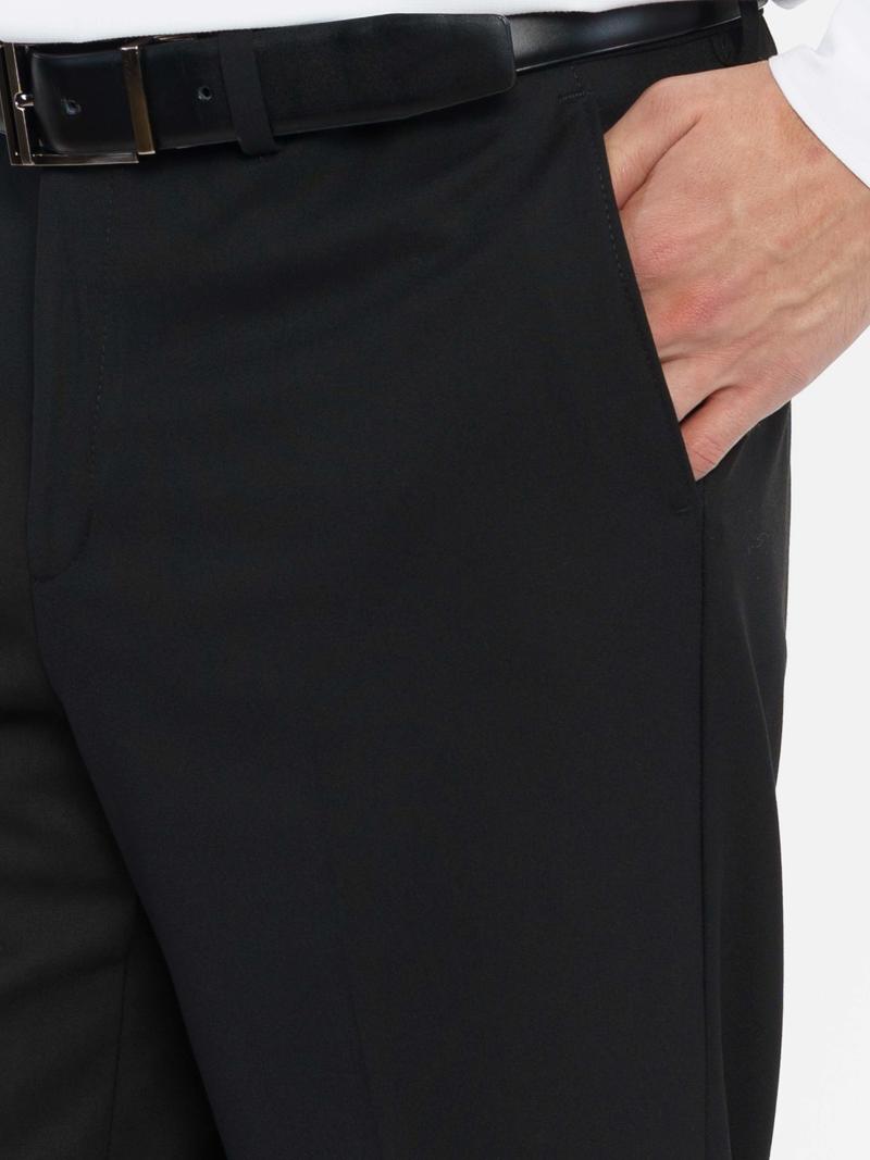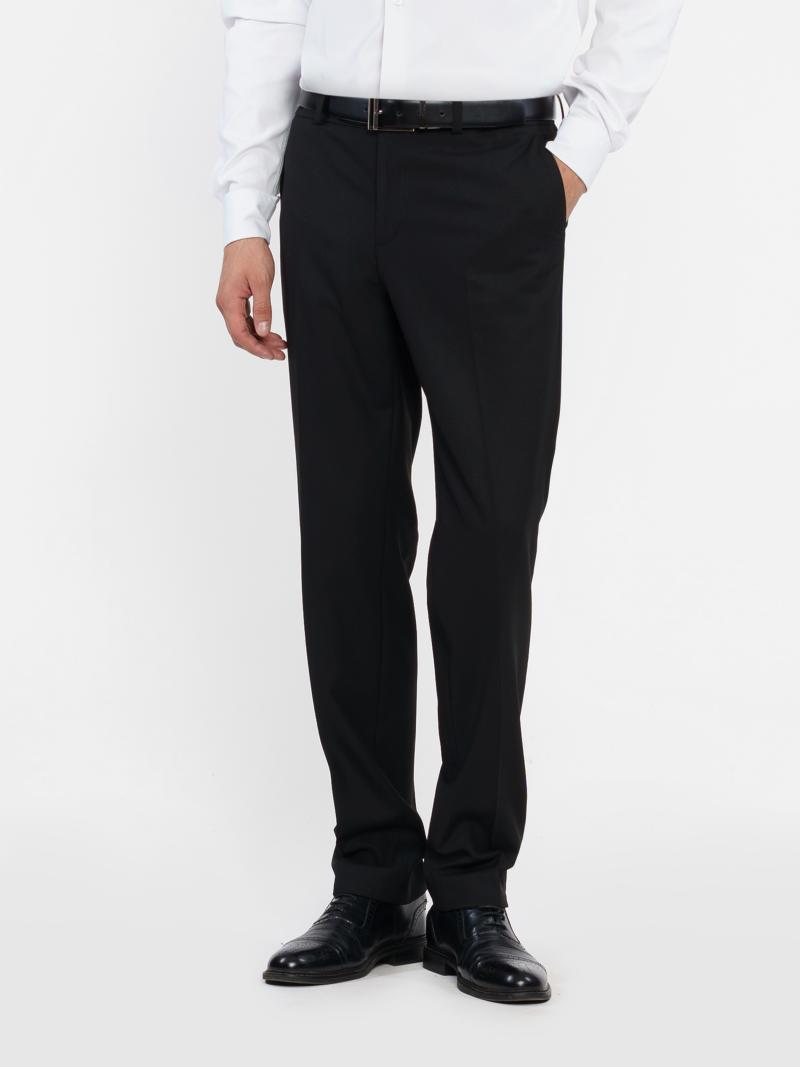 Чоловічі брюки Arber, чорного кольору, створені з інноваційної тканини на основі віскози з добавками, максимально практичні та зручні в експлуатації, не мнуться, стійкі до зносу. Середня посадка, комфортні, завужені до низу, зі стрілками, з двома похилими кишенями з боків і двома задніми прорізними, із застібкою на блискавку та ґудзик. Універсальна модель брюк для гардероба сучасного чоловіка. Модель у розмірі 48.Зріст: 185 см. Параметри: 92/71/89