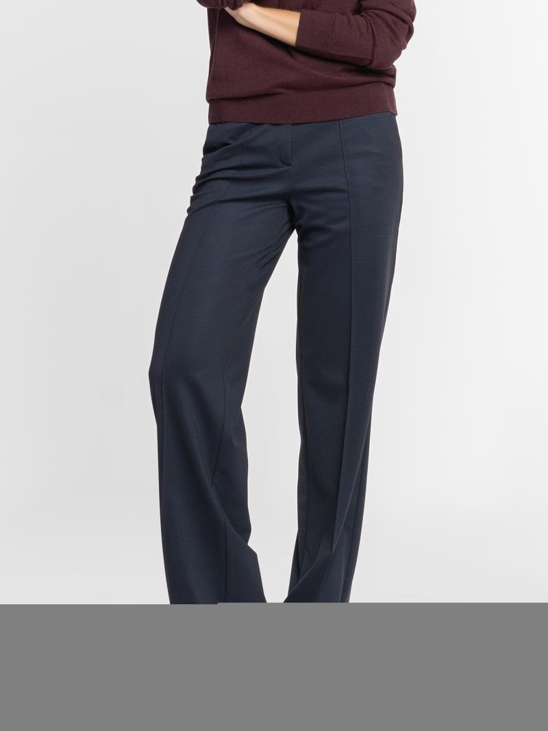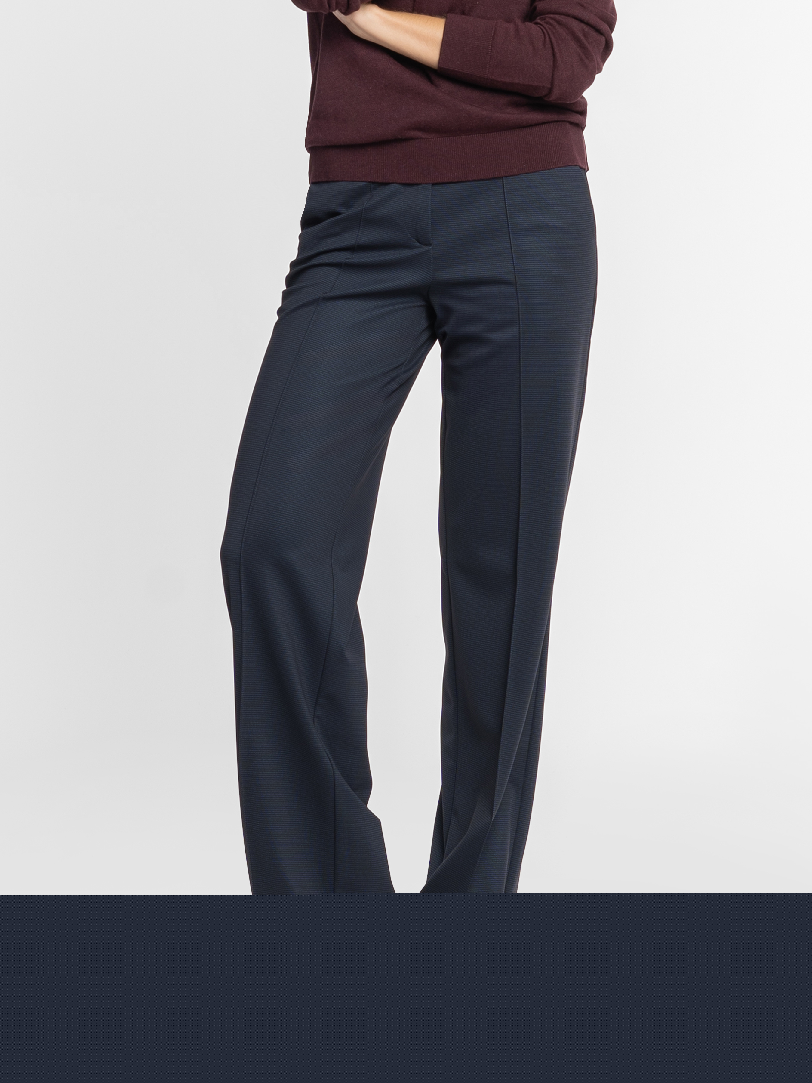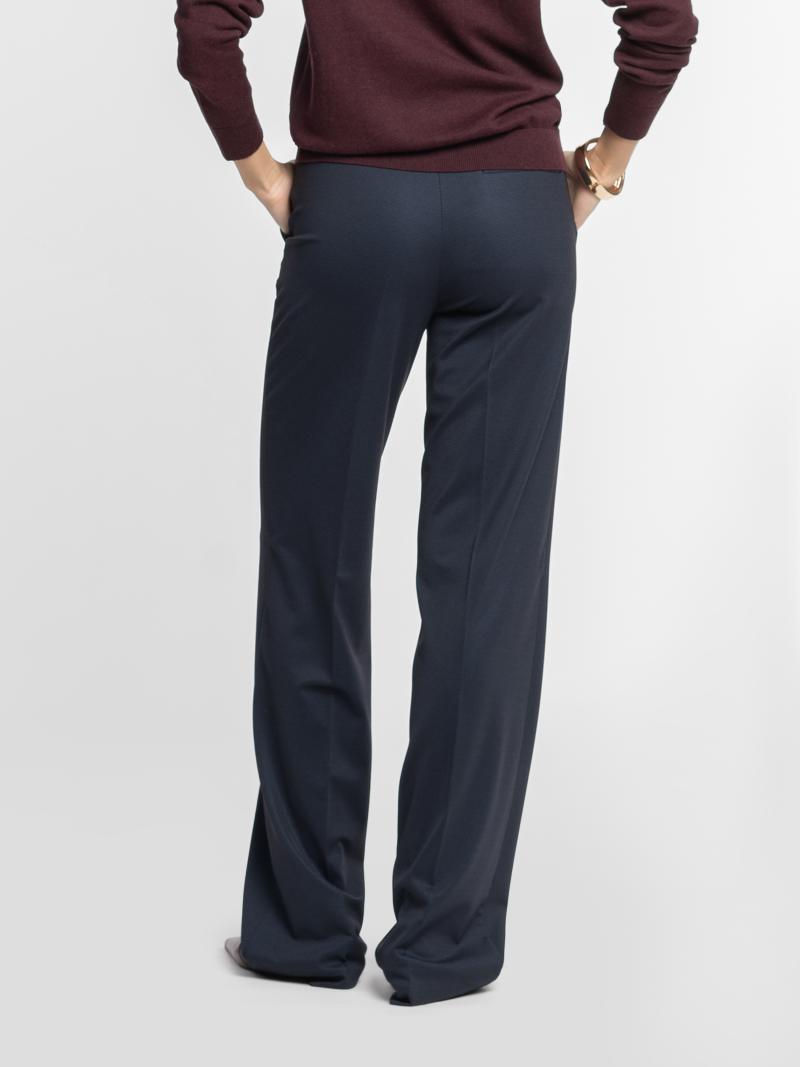 Жіночі трикотажні брюки Arber темно-синього кольору, виконані з еластичної тканини з віскозою. Матеріал м’який, приємний до тіла, добре тягнеться, тримає форму та комфортно сідає по фігурі. Висока посадка, прямий крій із легким розширенням донизу створюють витончений силует і забезпечують зручність у щоденному носінні. Закріплені стрілки додають лаконічності та візуальної чіткості. Брюки чудово поєднуються з жакетами, сорочками чи базовим трикотажем — ідеальна база для щоденних і офісних образів у стилі smart casual. Модель на фото у розмірі 42. Зріст: 168 см. Параметри: 79/60/88