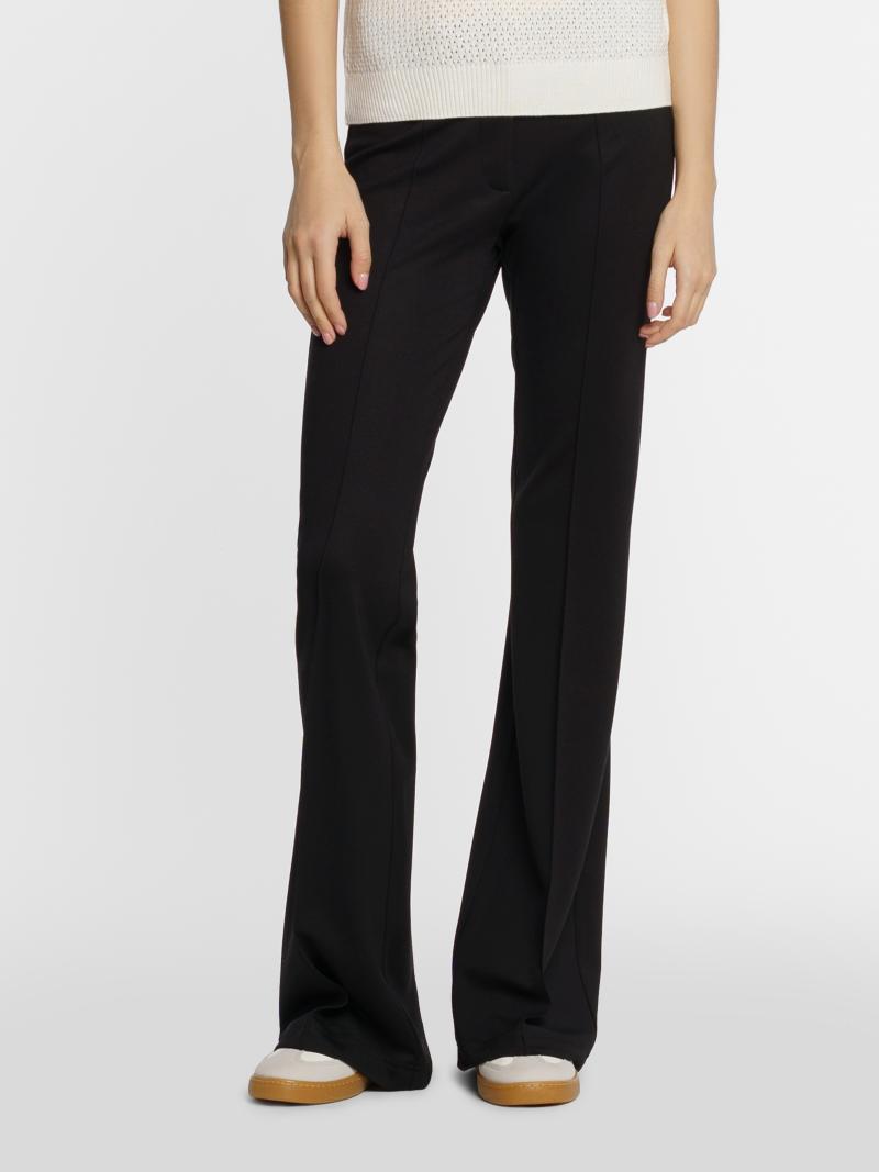 Жіночі трикотажні штани Arber чорного кольору з еластичної тканини на основі шовковистої віскози. Класичні штани штани розкльошеного крою зі стрілками. Модель із комфортною високою посадкою стане базовим елементом для створення повсякденного чи ділового образу.