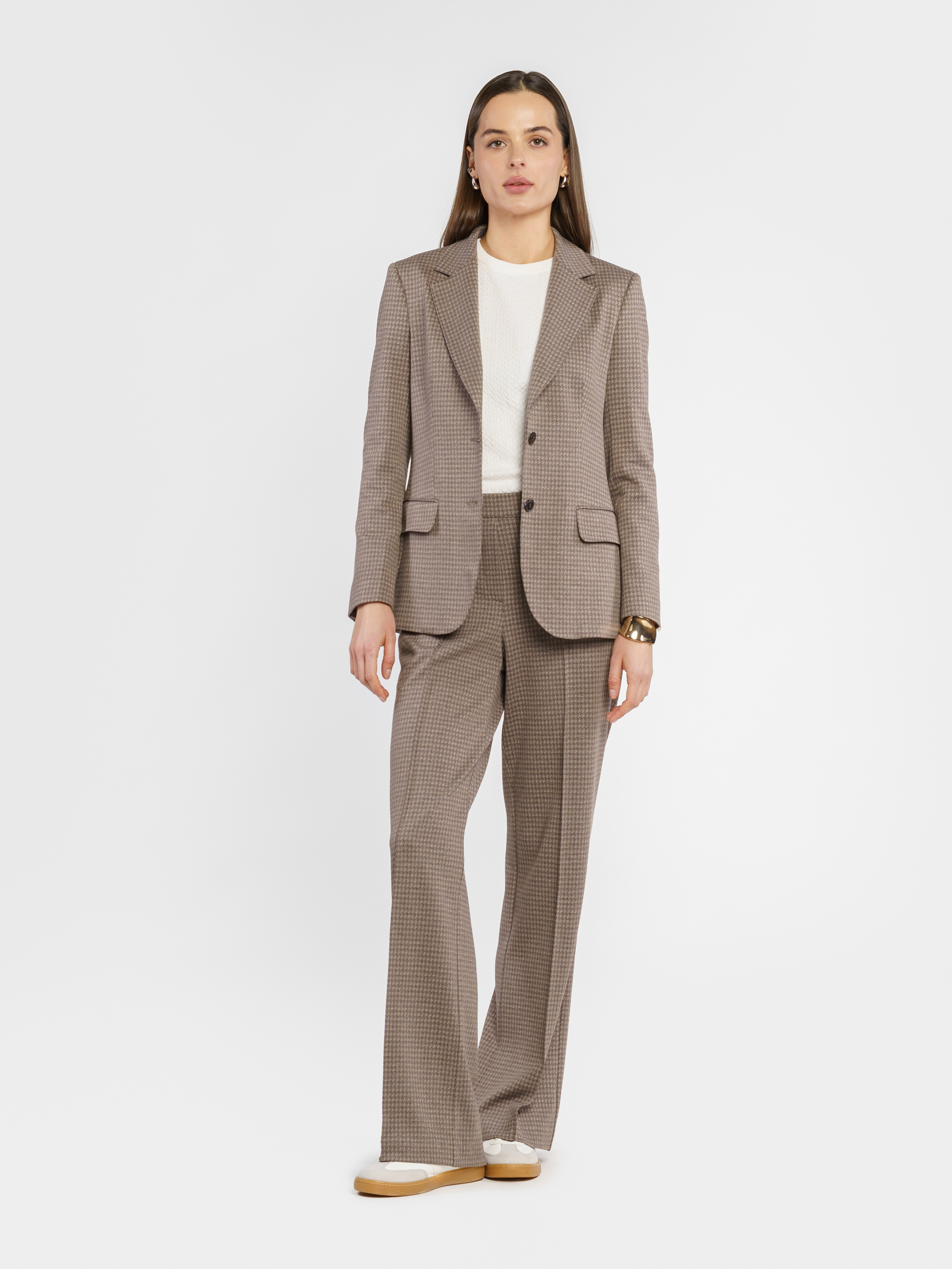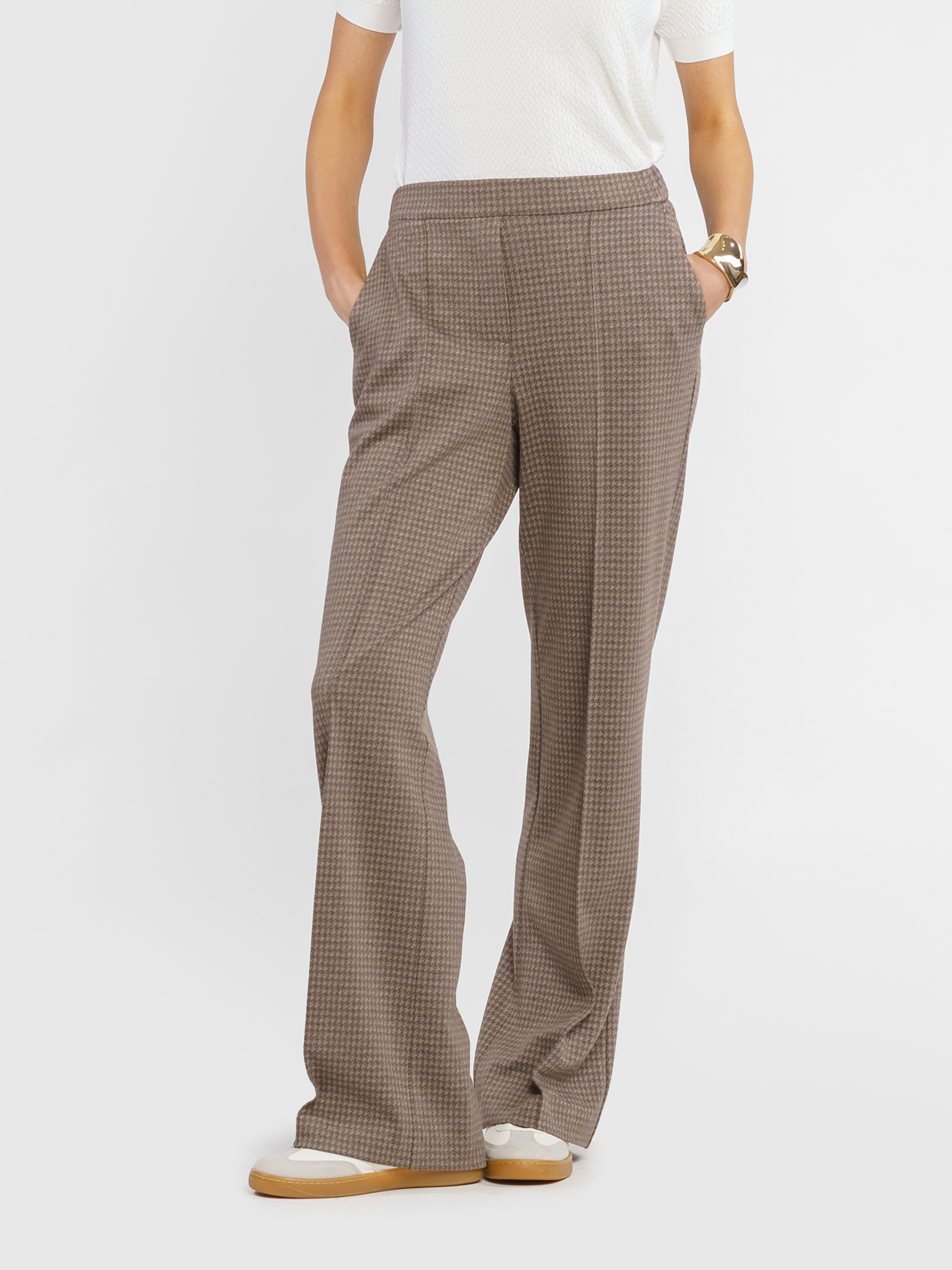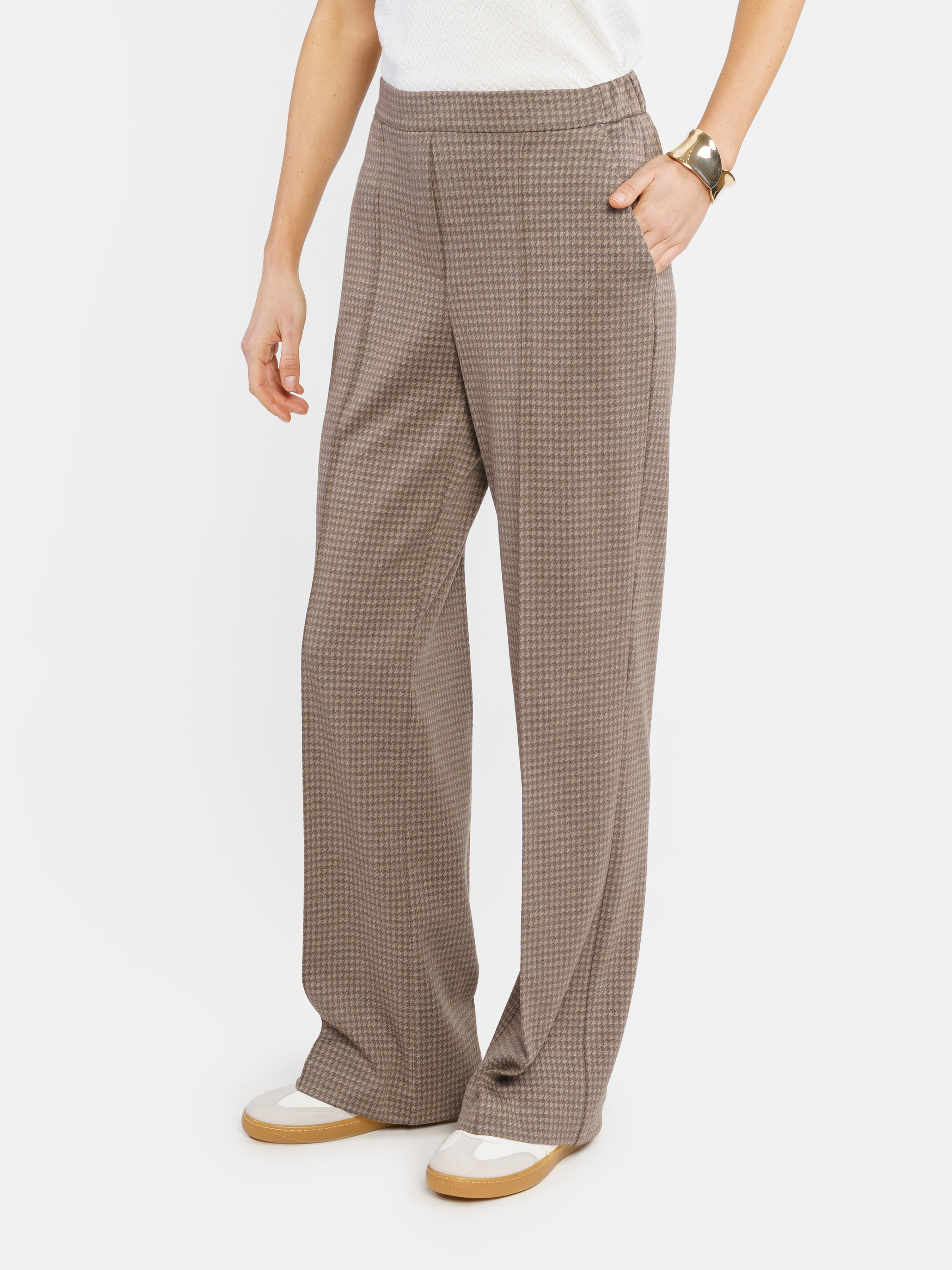 Women's knitted trousers W01.22.39.512 Arber brown in a cage with a medium fit