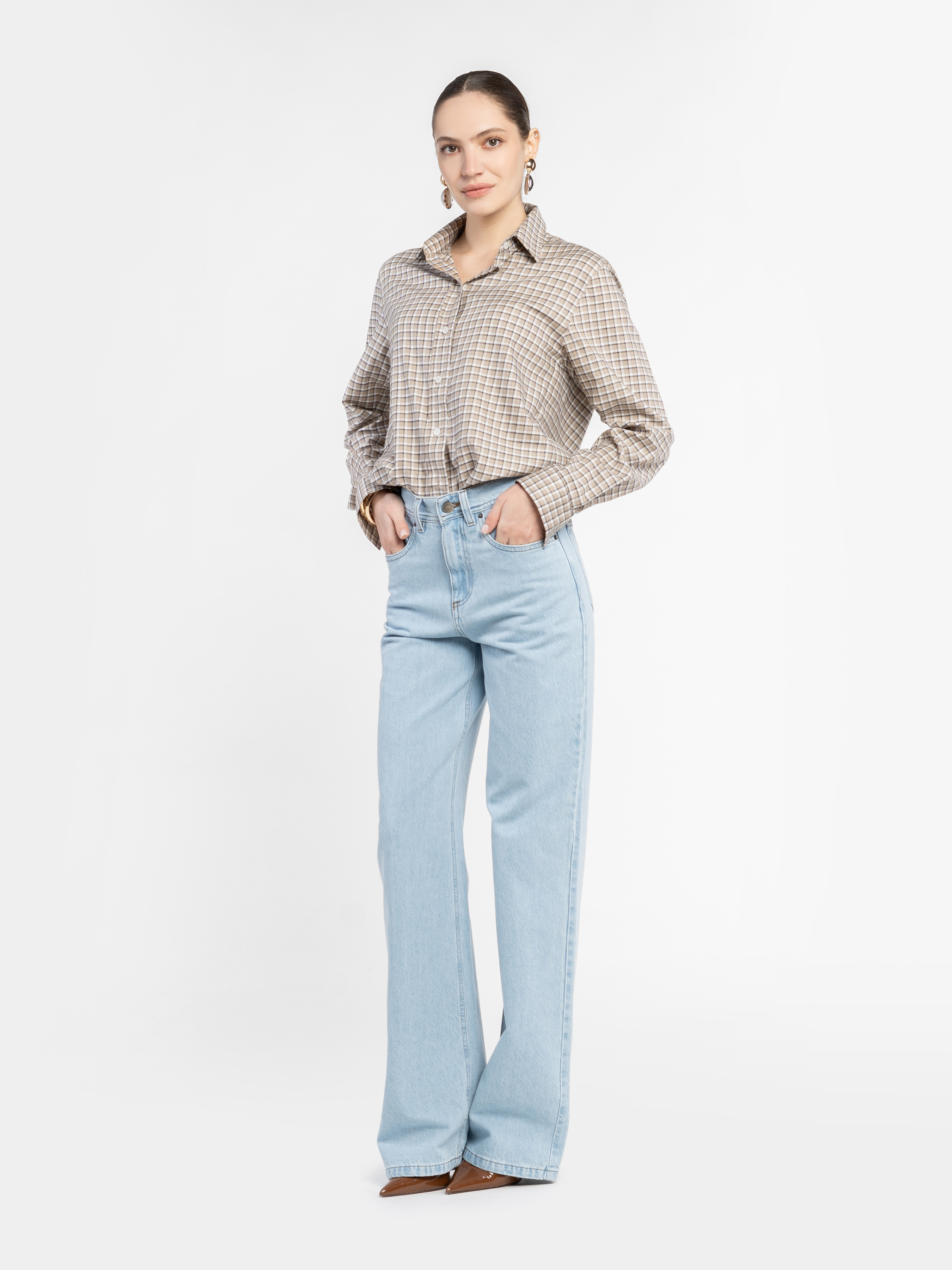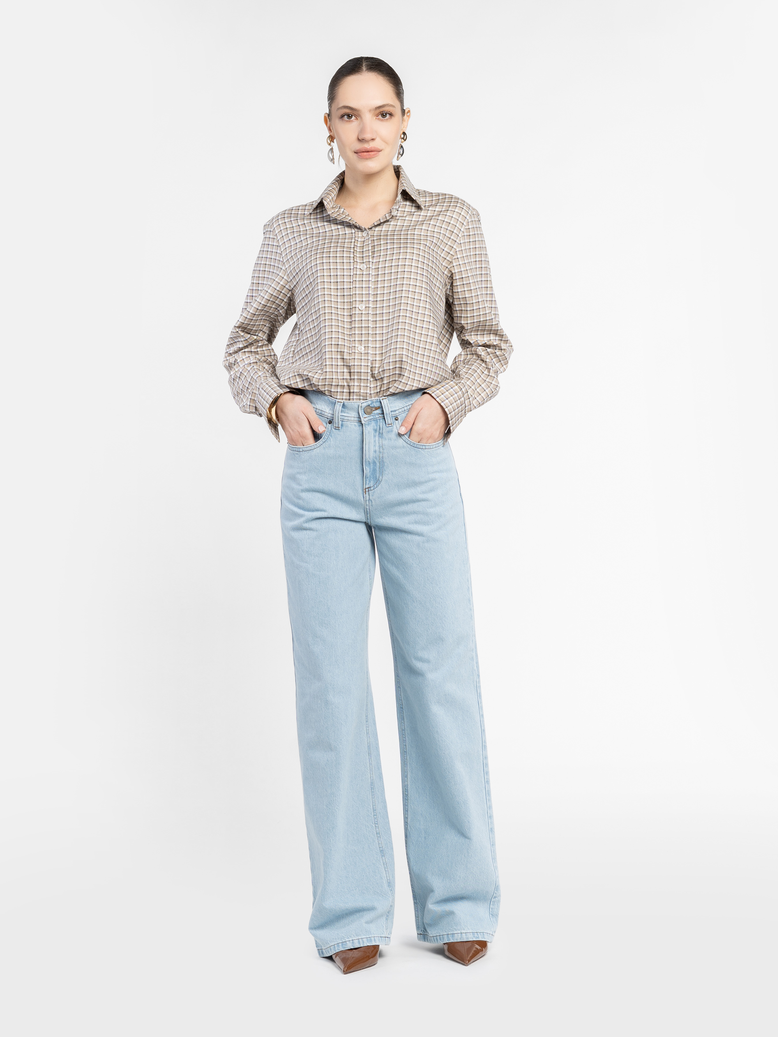 Жіночі джинси Arber блакитного кольору. Виконані з бавовни та додаванням еластану, комфортні, тримають форму та дарують свободу рухів. Джинси з високою посадкою та п'ятьма кишенями. Широка екстрадовга штанина. Застібка спереду на блискавку та металевий ґудзик, лаконічний дизайн і глибокий відтінок роблять їх універсальною базою для сучасних образів. Модель на фото у розмірі 42. Зріст: 175 см. Параметри: 84/61/91