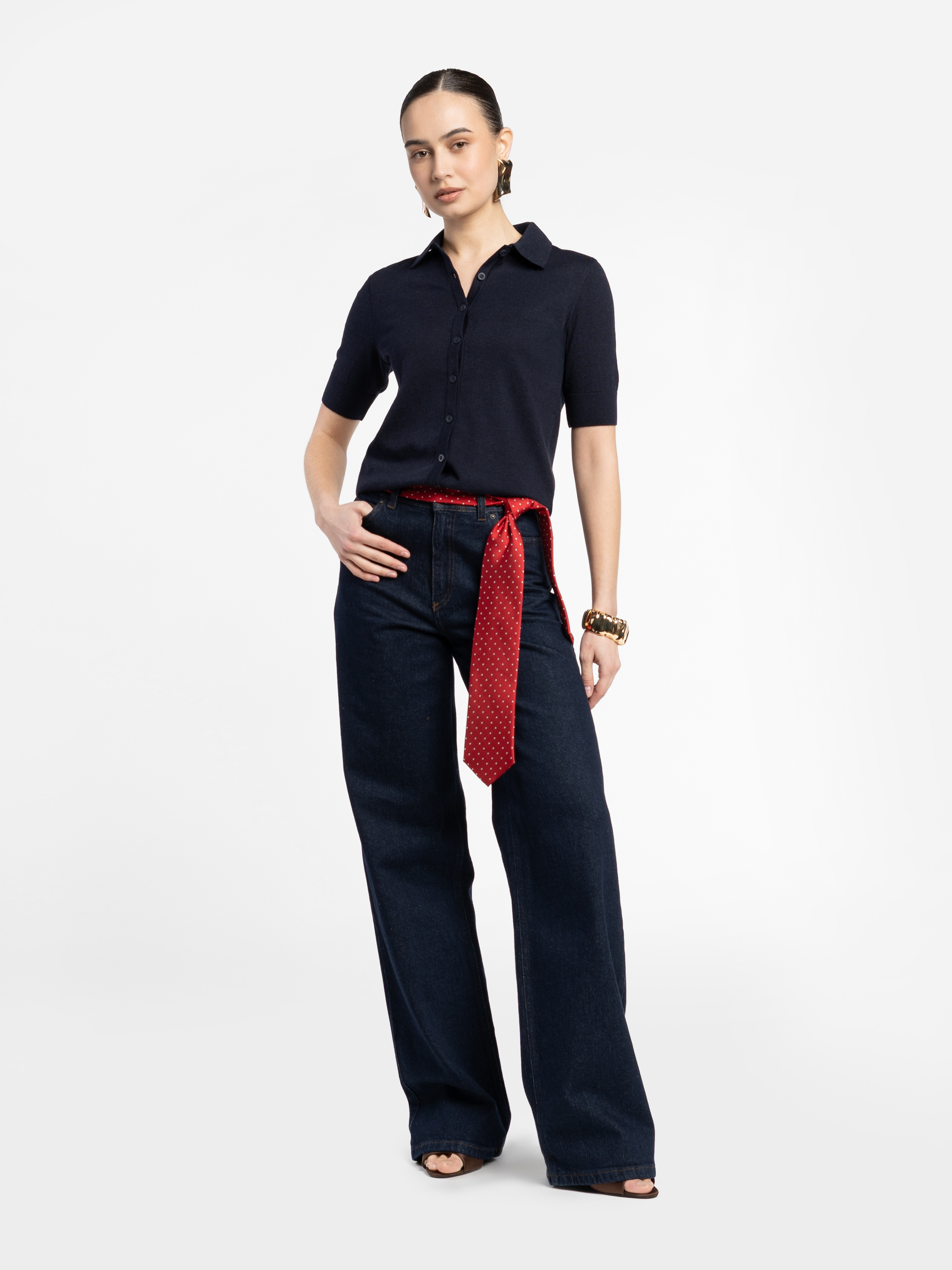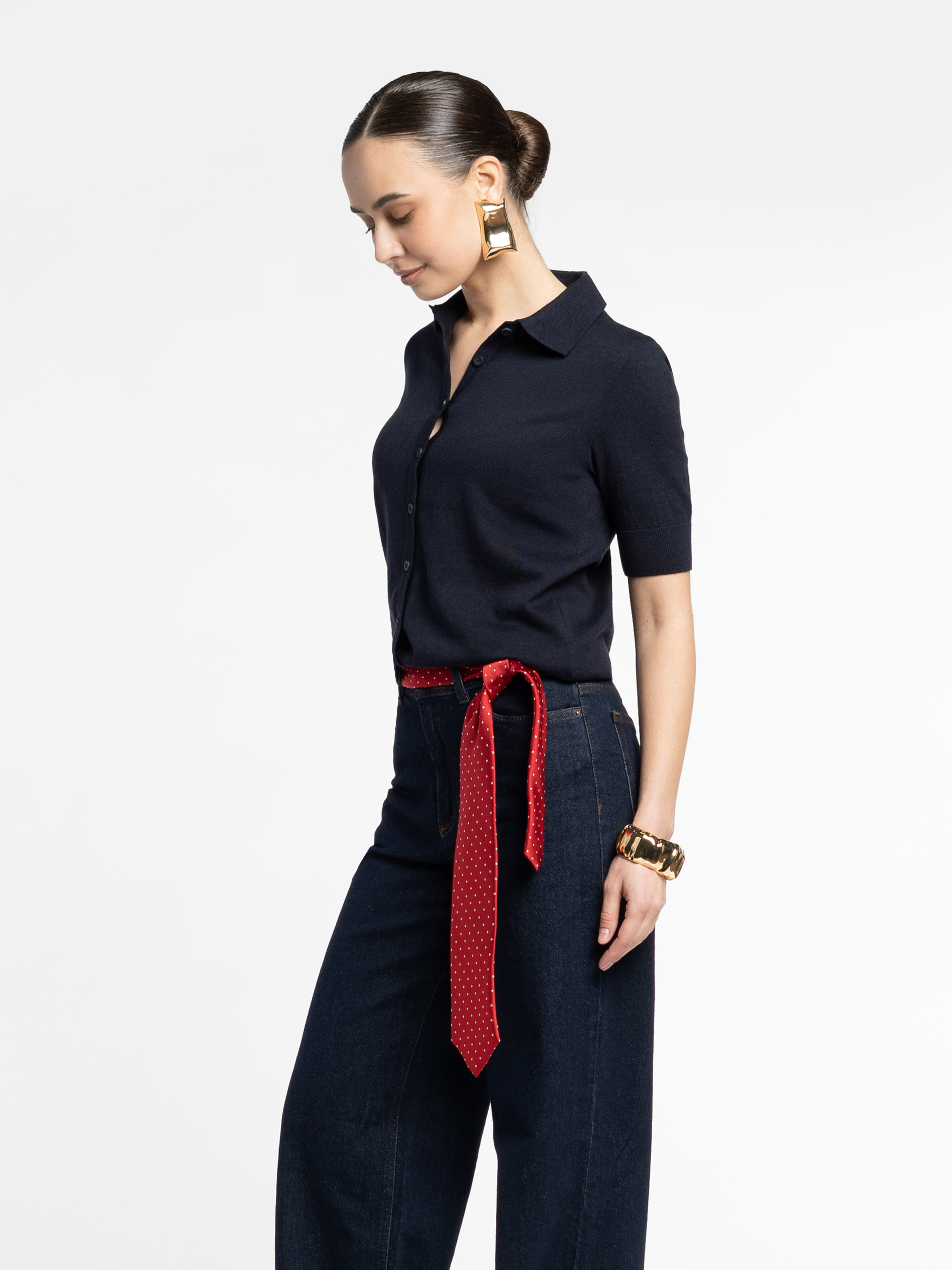 Arber women's blue cardigan with short sleeves, knitted from fine 100% high-quality cotton yarn. The light knit made from natural fibres is pleasant to the touch and ensures comfort throughout the day. Thanks to its fine texture, the model is breathable and gives a feeling of freshness. The button fastening adds a touch of modern, understated elegance. It pairs easily with trousers, jeans and skirts to create a confident and sophisticated everyday look. The model in the photo is wearing size 44. Height: 168 cm. Measurements: 79/60/88