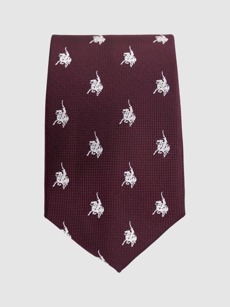Чоловіча краватка Arber бордового кольору, зображенням логотипу Freedom - козак на коні, виготовлена з шовковистої на дотик тканини та пошита вручну. Ця краватка створена для чоловіка, який хоче виділятися природним елегантним виглядом.