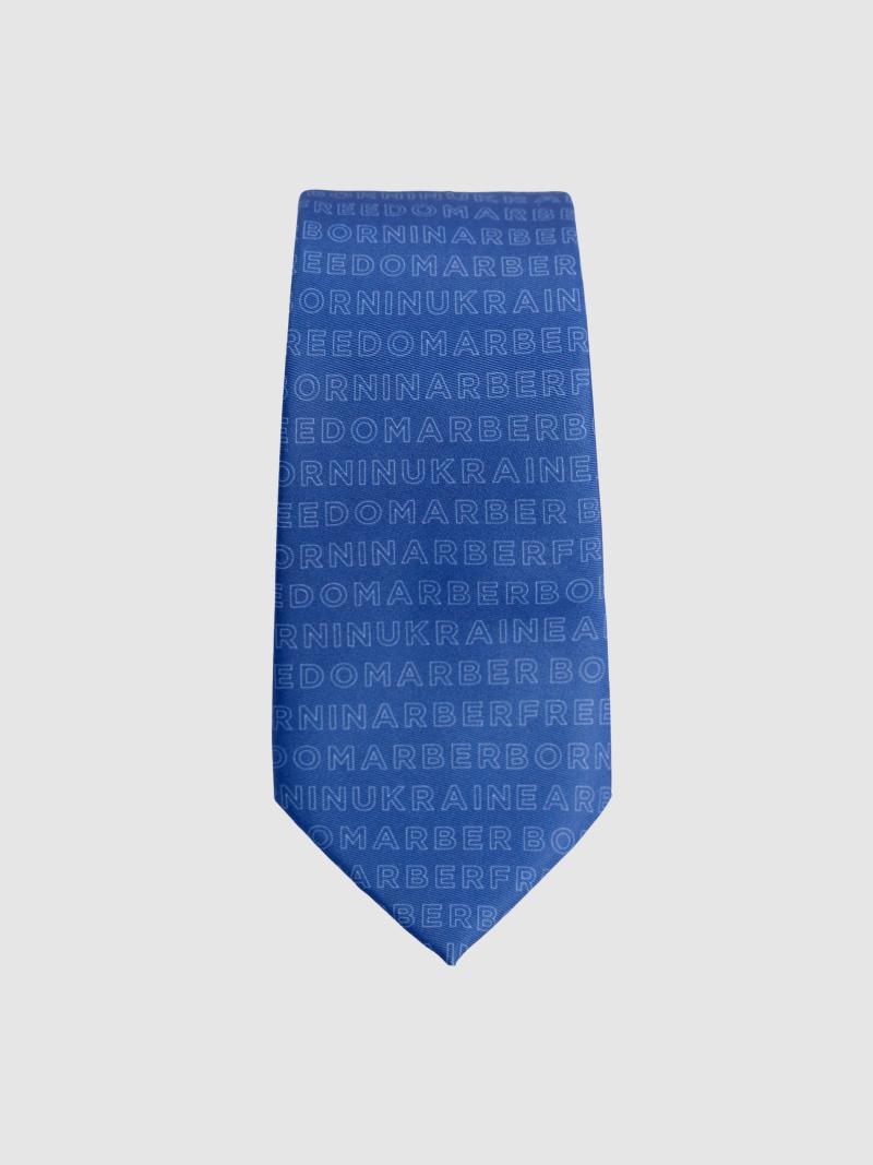 Патріотична краватка Arber темно-синього кольору, виготовлена з шовковистої на дотик тканини та пошита вручну. Декорована декорована паттерном із мотивами колекції Freedom, як символ боротьби за свободу та незалежність України.