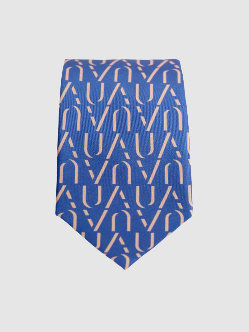 Патріотична краватка Arber синього кольору, виготовлена з шовковистої на дотик тканини та пошита вручну. Декорована декорована паттерном UA колекції Freedom, як символ боротьби за свободу та незалежність України.
