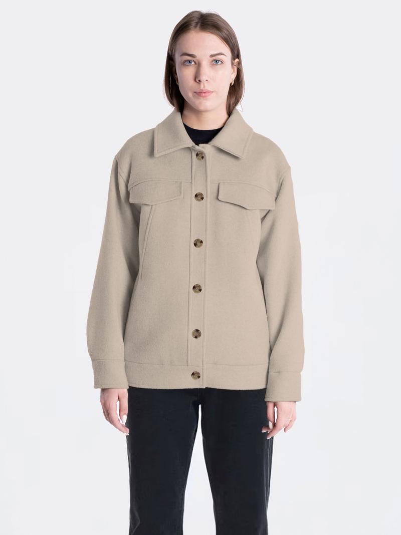 Жіноча куртка Arber бежевого кольору створена з якісної м'якої на дотик тканини на основі вовни. Модель вільного силуету із застібкою на ґудзики, з боків дві похилі кишені. Модель зручна для прохолодної погоди, підійде для шанувальників елегантного і водночас практичного повсякденного стилю.