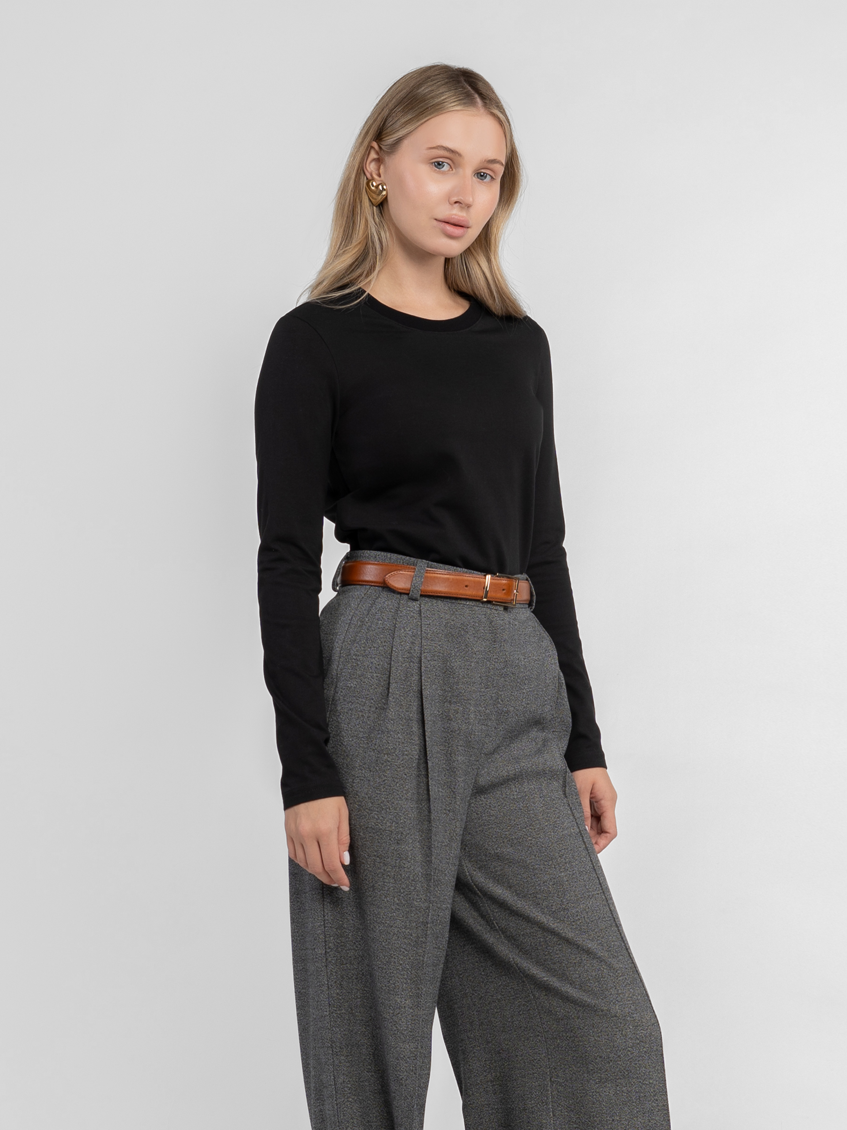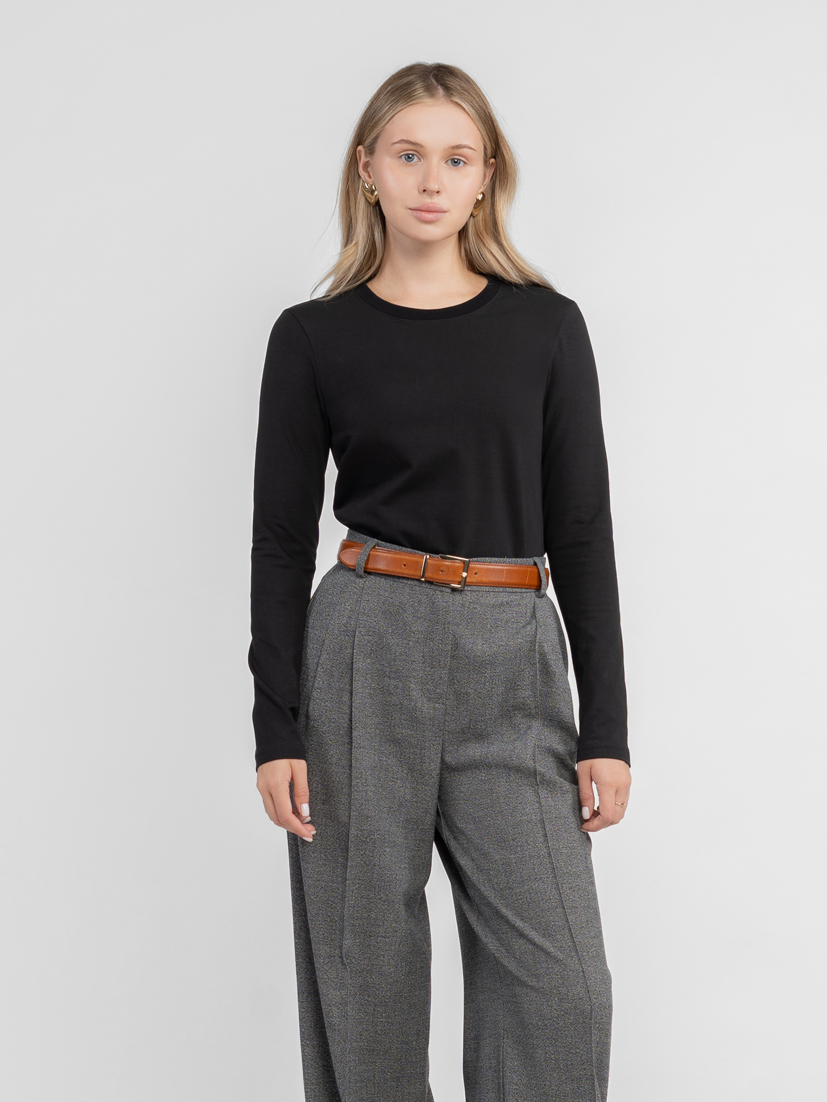 Arber women's long sleeve top in black, made from thin cotton jersey. The lightweight, soft fabric is comfortable and feels great against the skin all day long. With its straight silhouette and basic design, this long sleeve top is easy to pair with jeans, skirts or trousers to create comfortable and modern everyday looks. The model in the photo is wearing size 42. Height: 168 cm. Measurements: 80/62/87