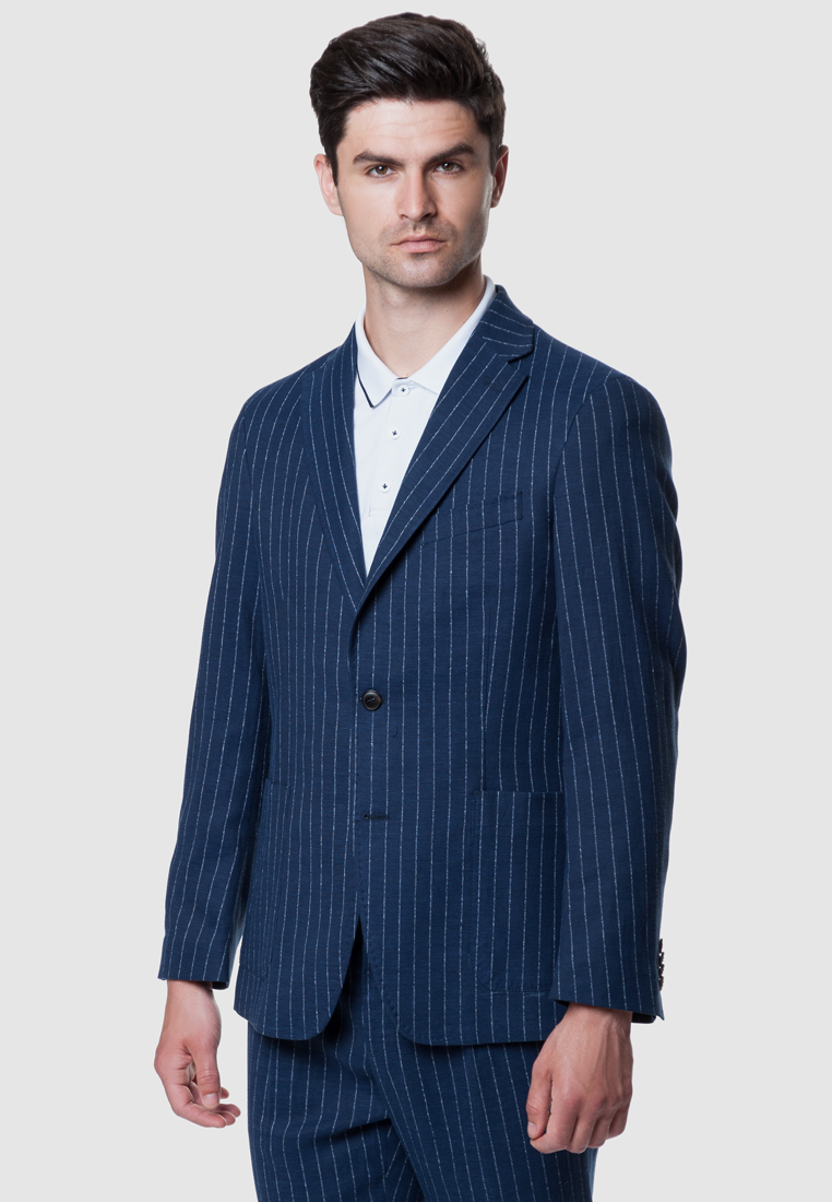 Піджак чоловічий AM 02.32.30 Arber синій у смужку еластична тканина з додаванням льону