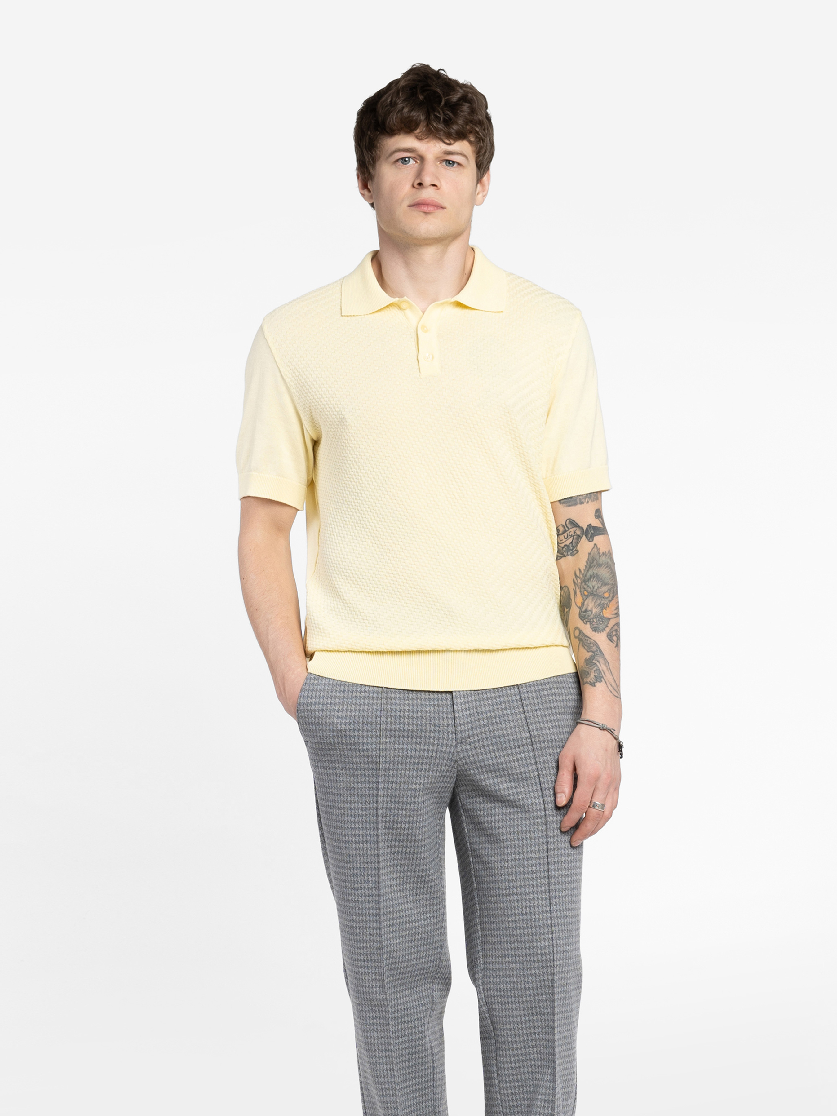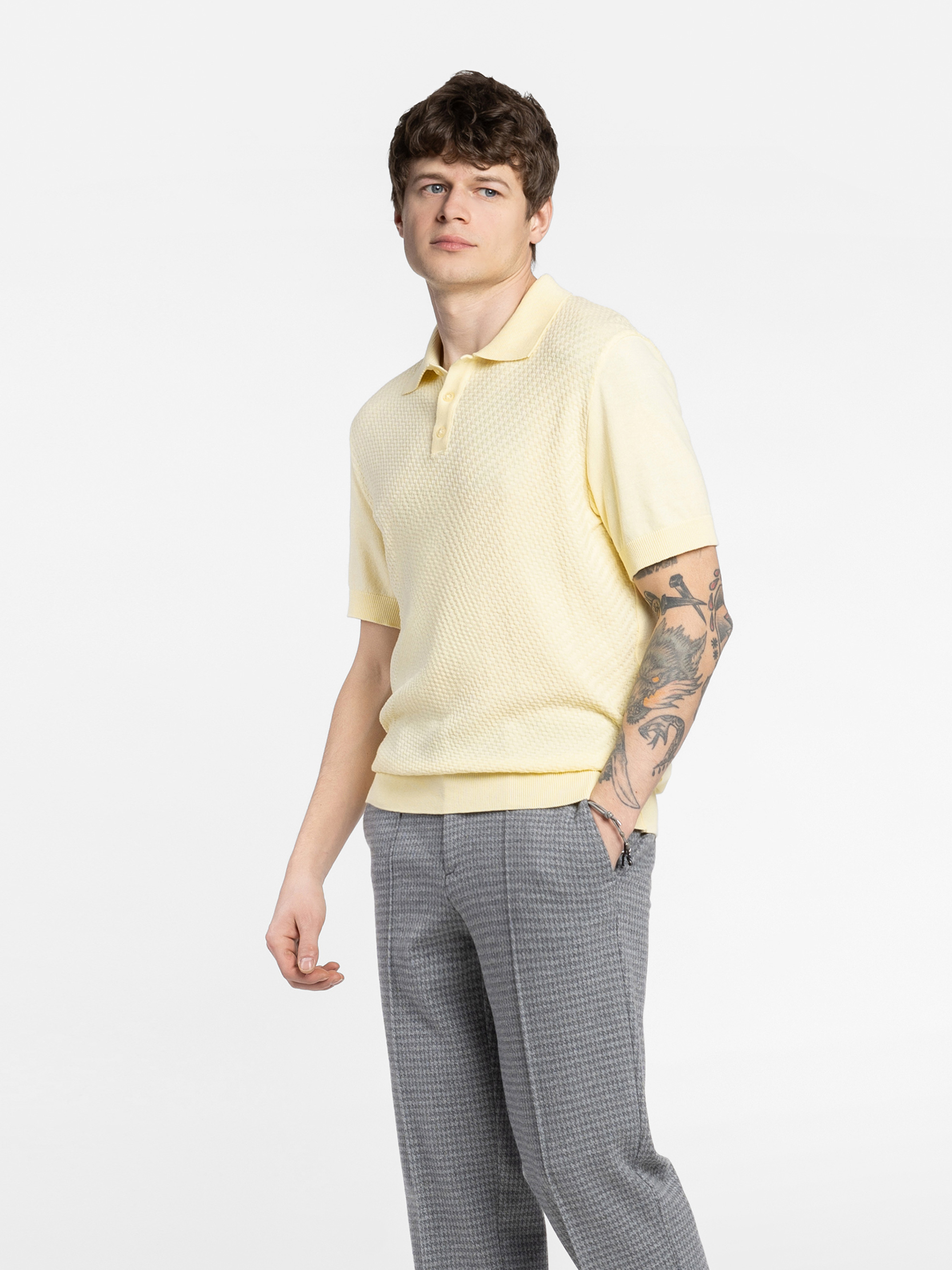This yellow Arber men's polo shirt is made from a fine yarn of 100% high-quality cotton. The natural fabric feels light and exceptionally soft, with a pleasant texture. Thanks to its fine weave, the polo shirt is highly breathable, ensuring comfort all day long. This polo shirt with a three-button fastening will complement your wardrobe perfectly when paired with trousers or jeans. The model in the photo is wearing a size 48. Height: 188 cm. Measurements: 110/80/100