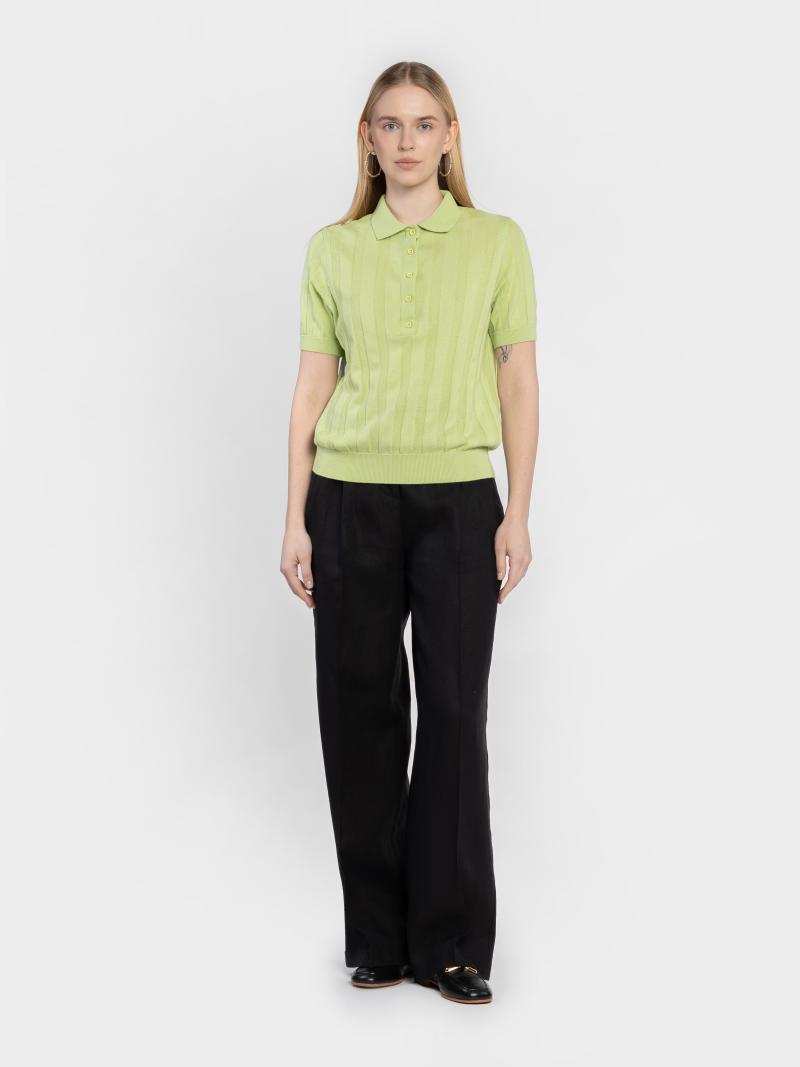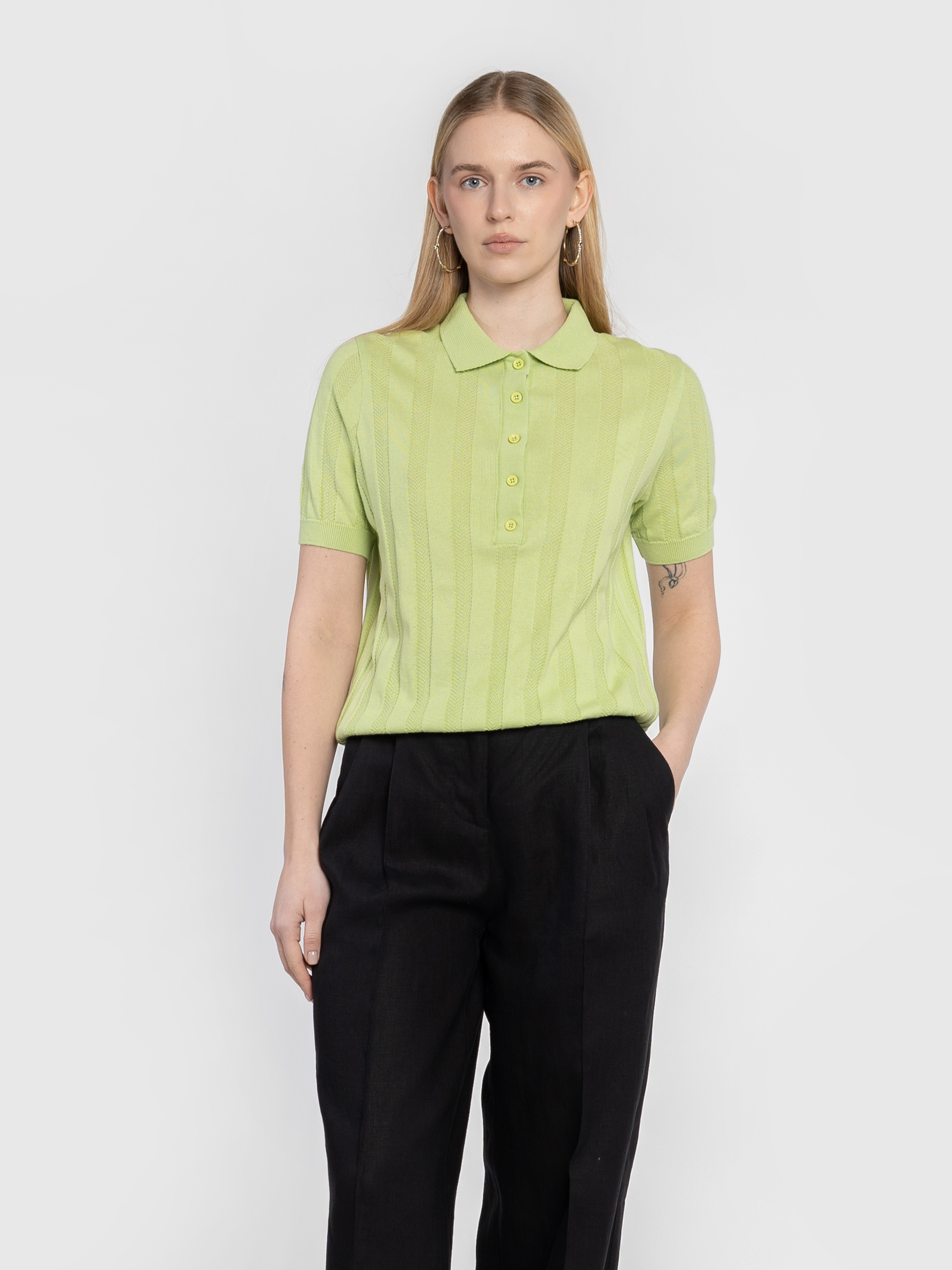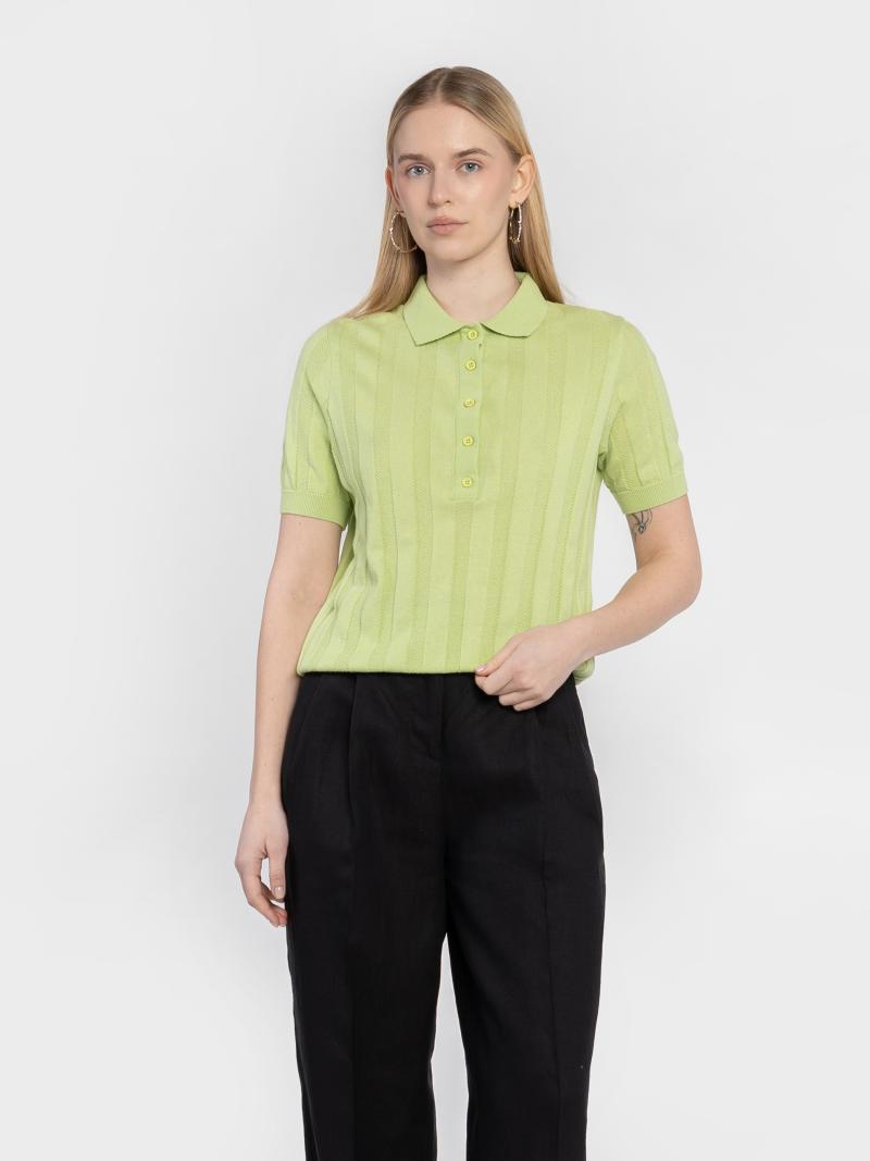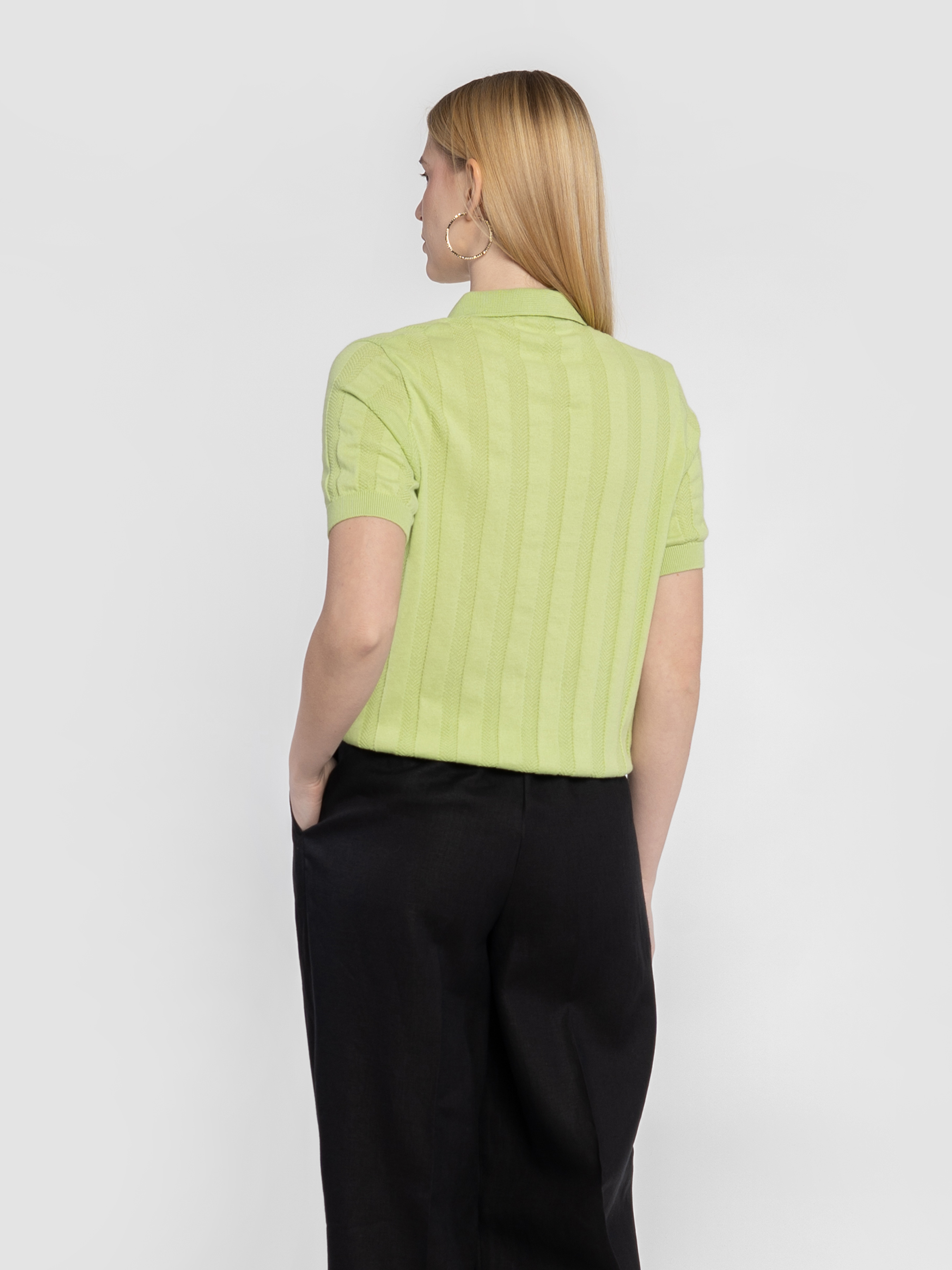 Жіноче поло Arber зеленого кольору у фактурну смужку, пов'язане з тонкої пряжі високоякісної бавовни. Виріб м'який і приємний на дотик, фактура, що дихає, створить відчуття комфорту протягом дня. Модель на фото у розмірі 42. Зріст: 175 см. Параметри: 84/61/91