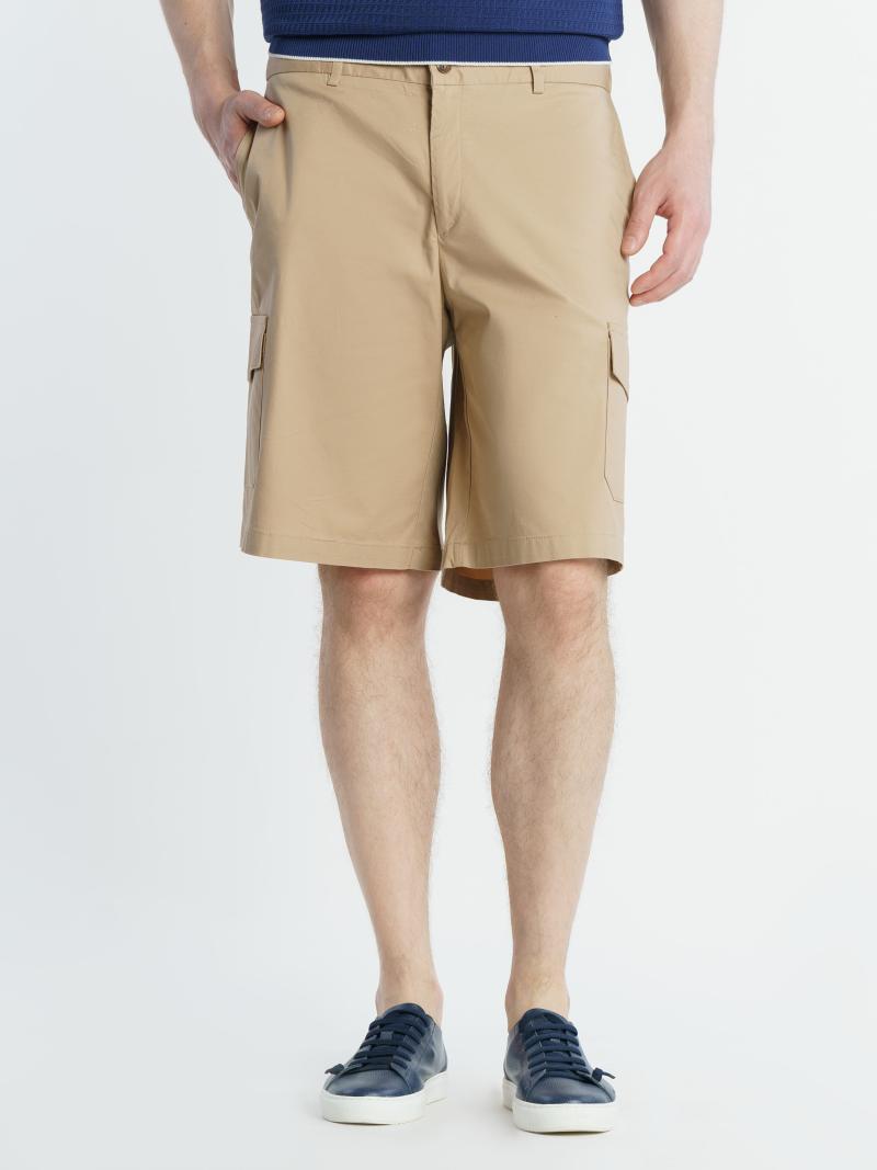 Чоловічі бежеві шорти Arber з екологічної бавовни з добавкою еластану. Еластична тканина робить їх комфортними та зручними. Модель з двома похилими боковими кишенями та двома задніми прорізними, застібка на блискавку та гудзик. Такі шорти будуть яскравим доповненням літнього гардеробу.