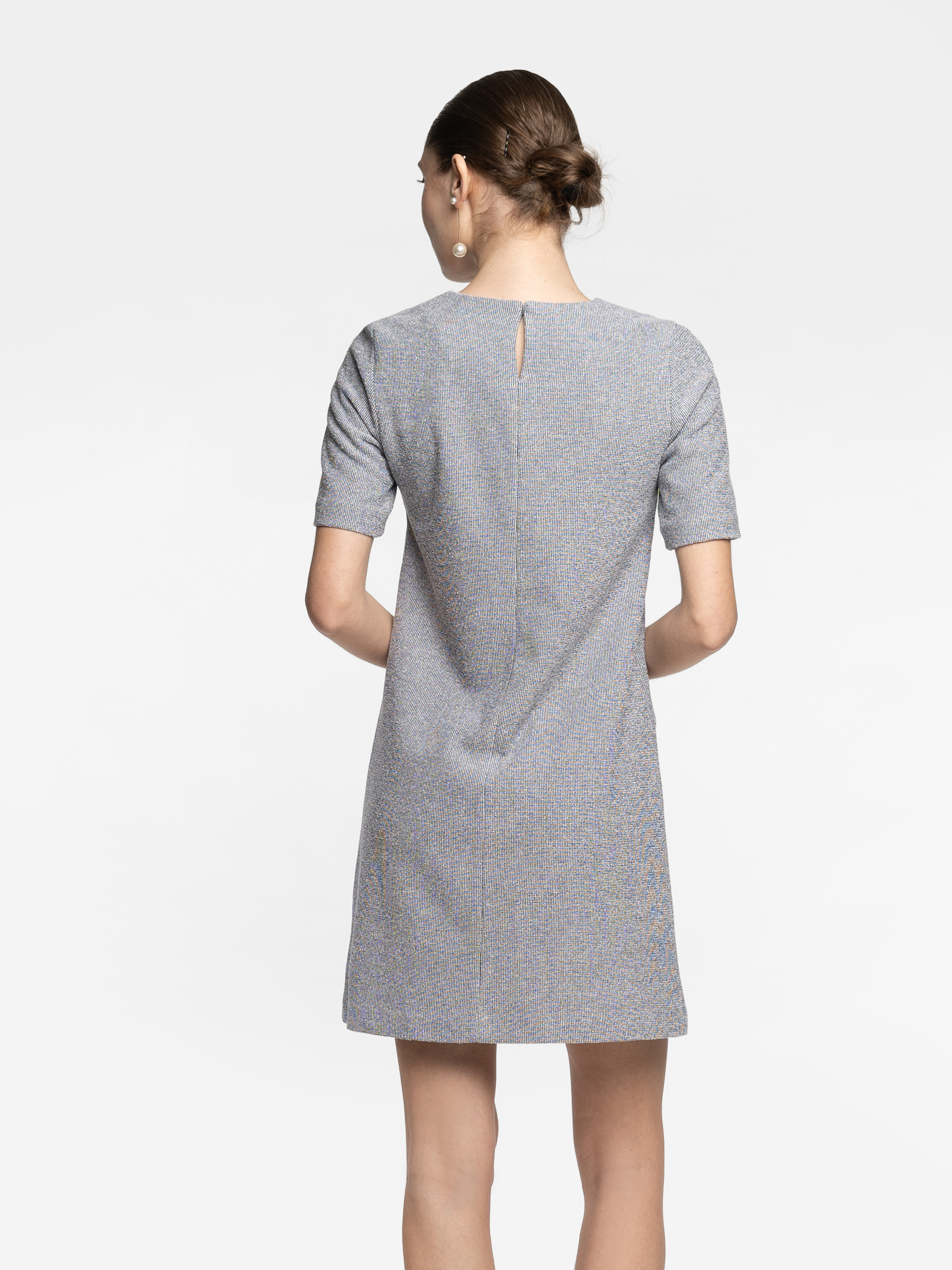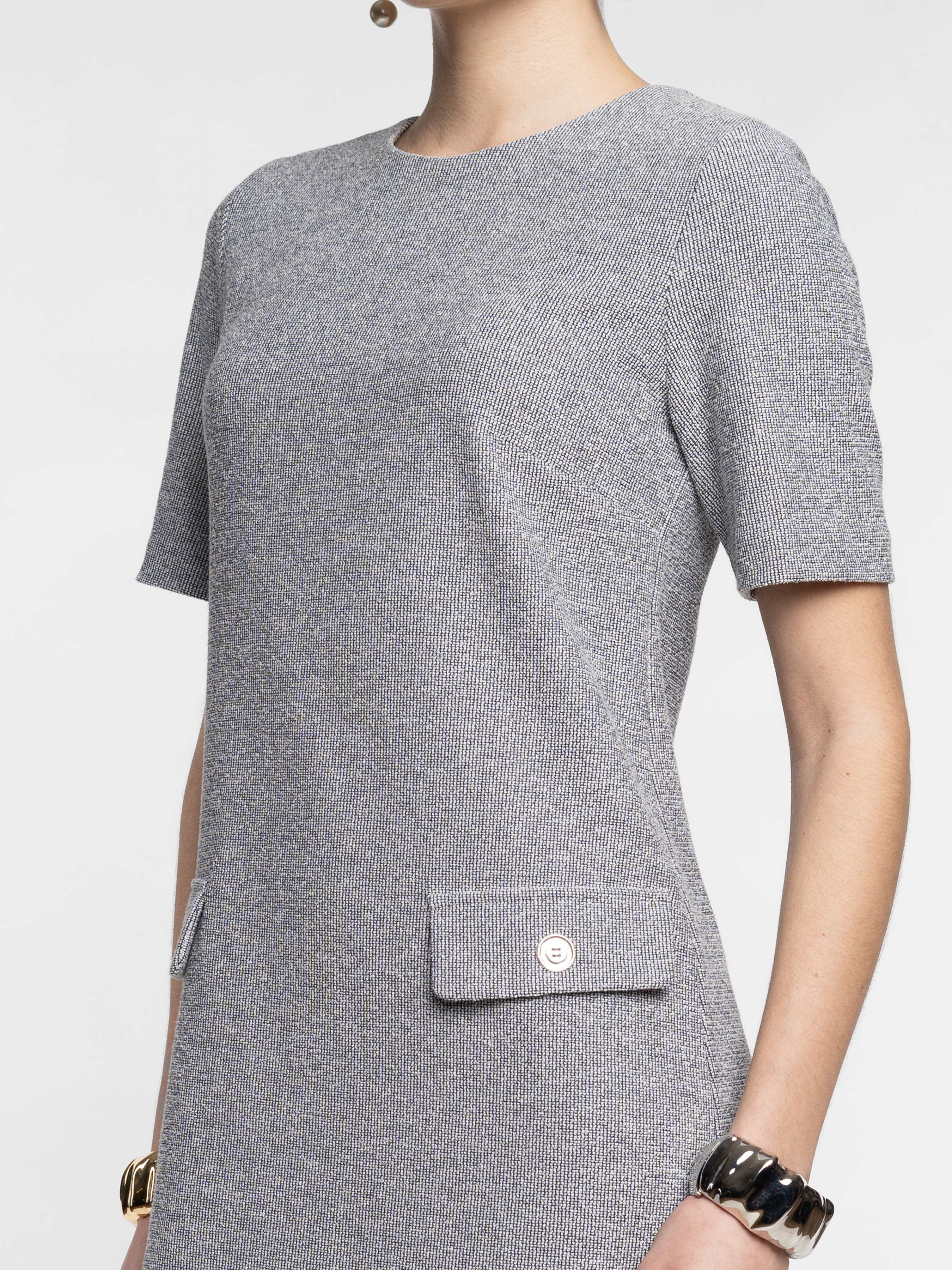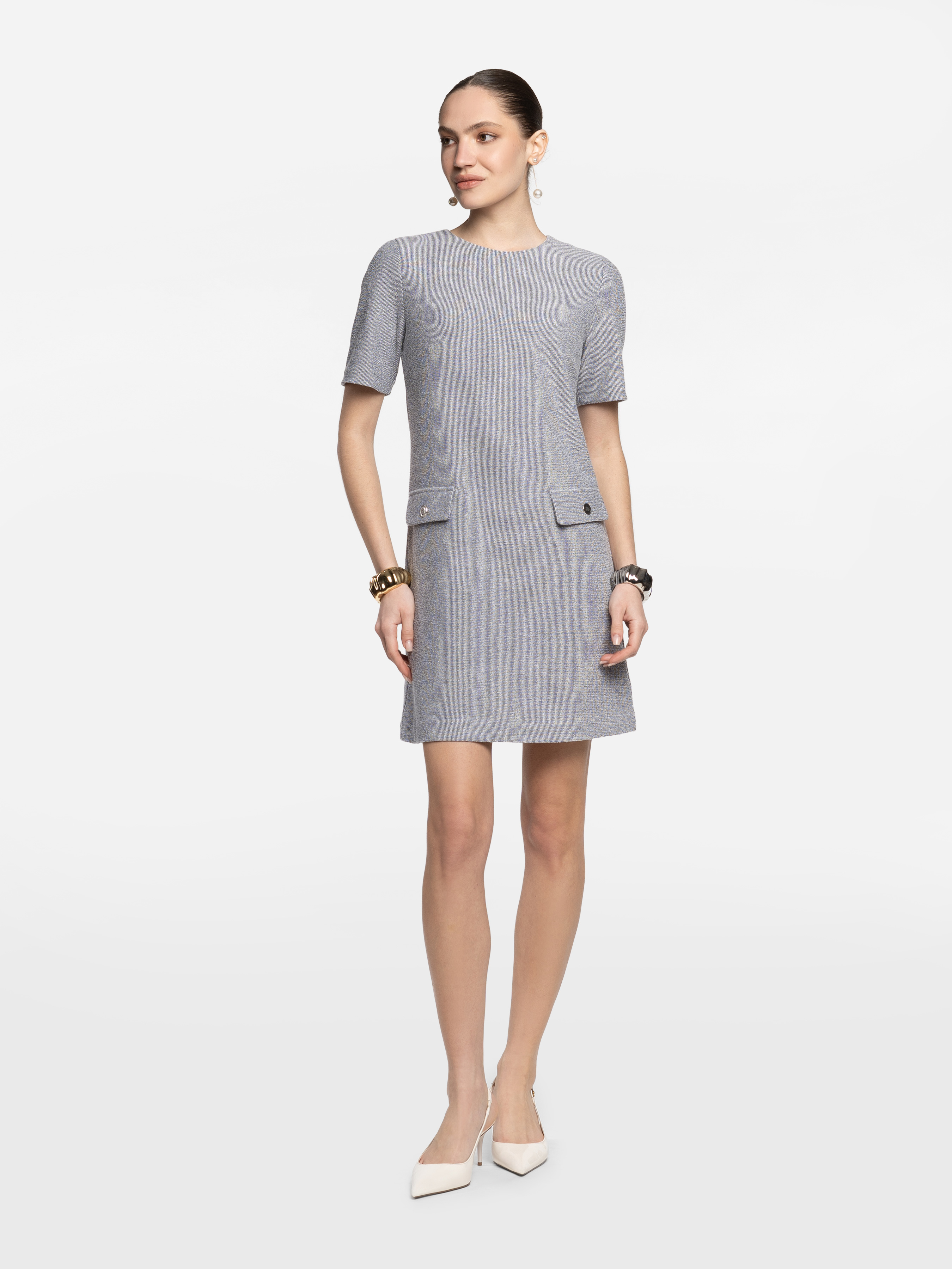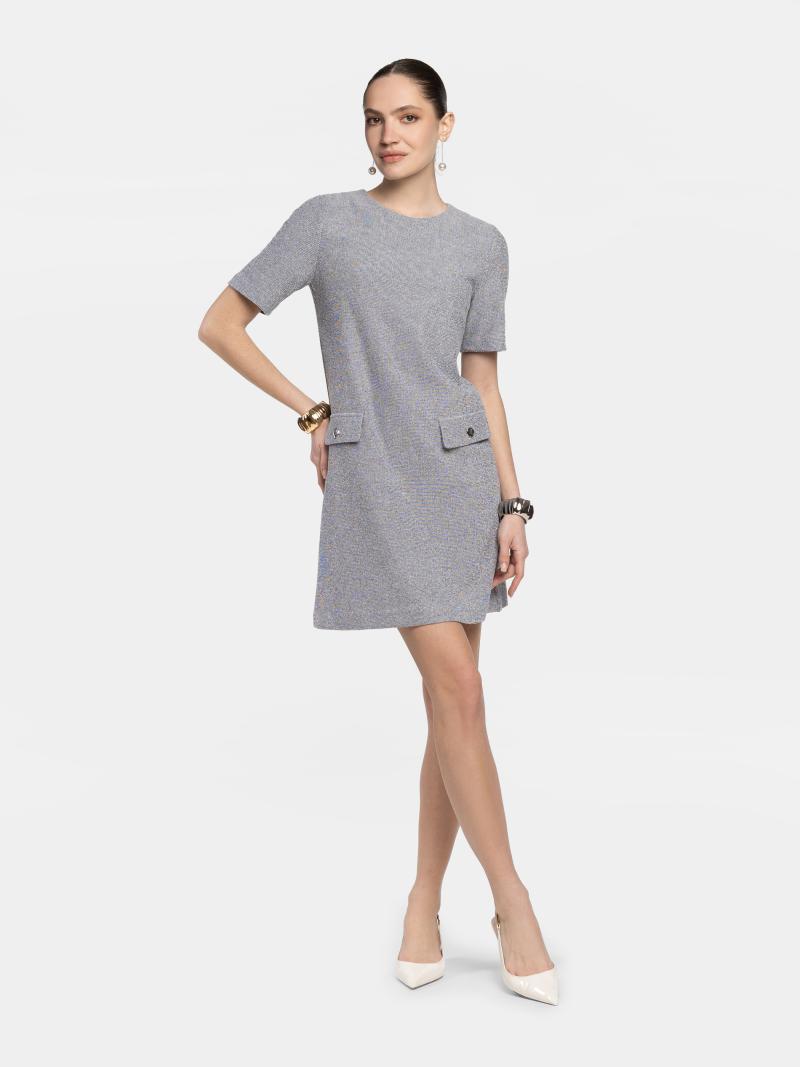 A women’s beige knitted dress made from a lightweight, soft-to-the-touch fabric that ensures comfort and ease of wear. The cropped length, round neckline and button fastening create a clean, modern silhouette. The design is complemented by two patch pockets, which give the look a contemporary edge. The understated design is easy to style for both everyday and more formal looks, created to make you look perfect every day. The model in the photo is wearing a size 42. Height: 175 cm. Measurements: 84/61/91
