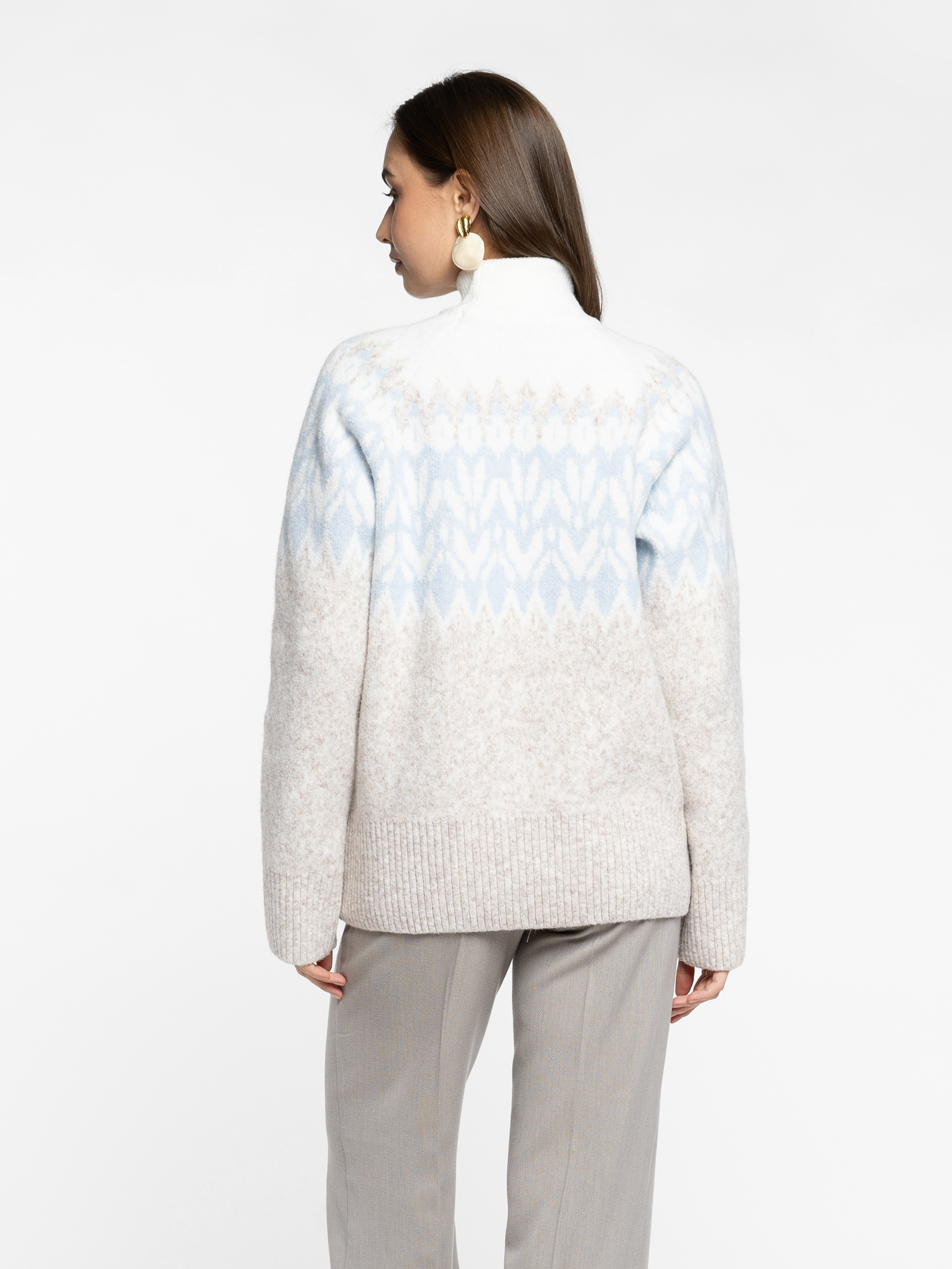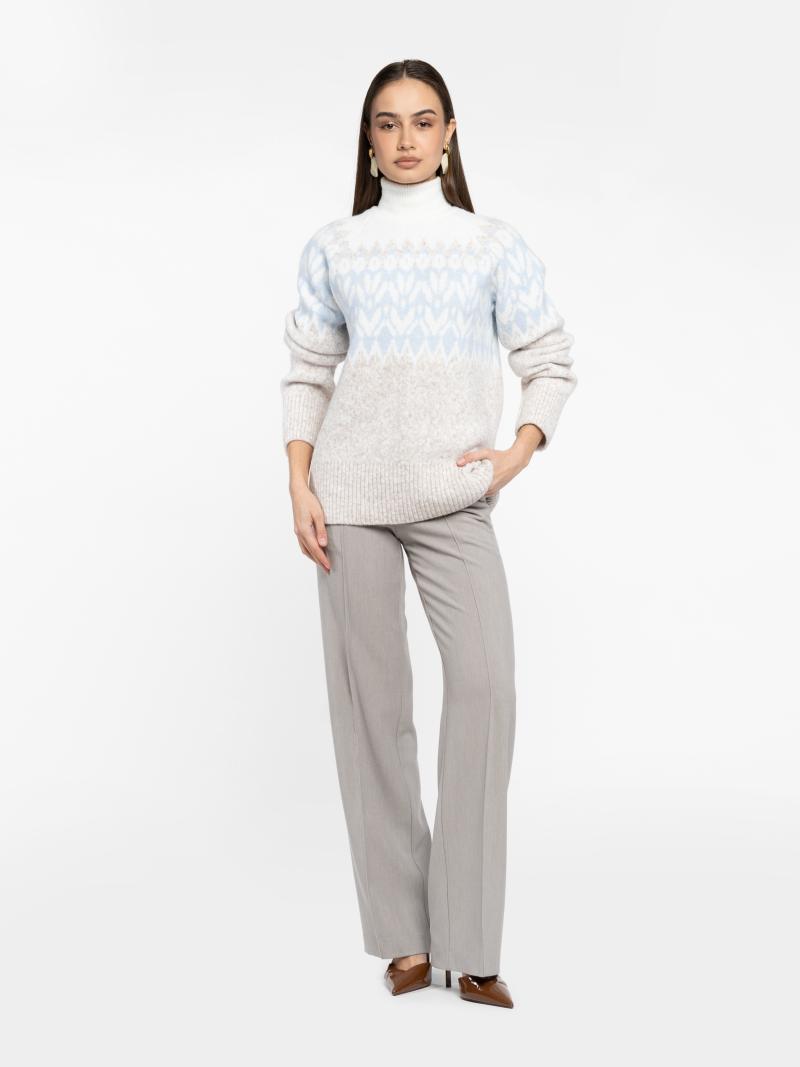 Жіночий светр Arber у бежевого кольору. Подовжена модель із м’якої пряжі з додаванням вовни. Класичний комір під горло, чистий силует і мінімалістичний дизайн роблять светр універсальною базою для будь-якого образу. Ідеально поєднується з джинсами, брюками чи для багатошарових луків. Модель на фото в розмірі XS. Зріст: 178 см. Параметри: 89/60/90