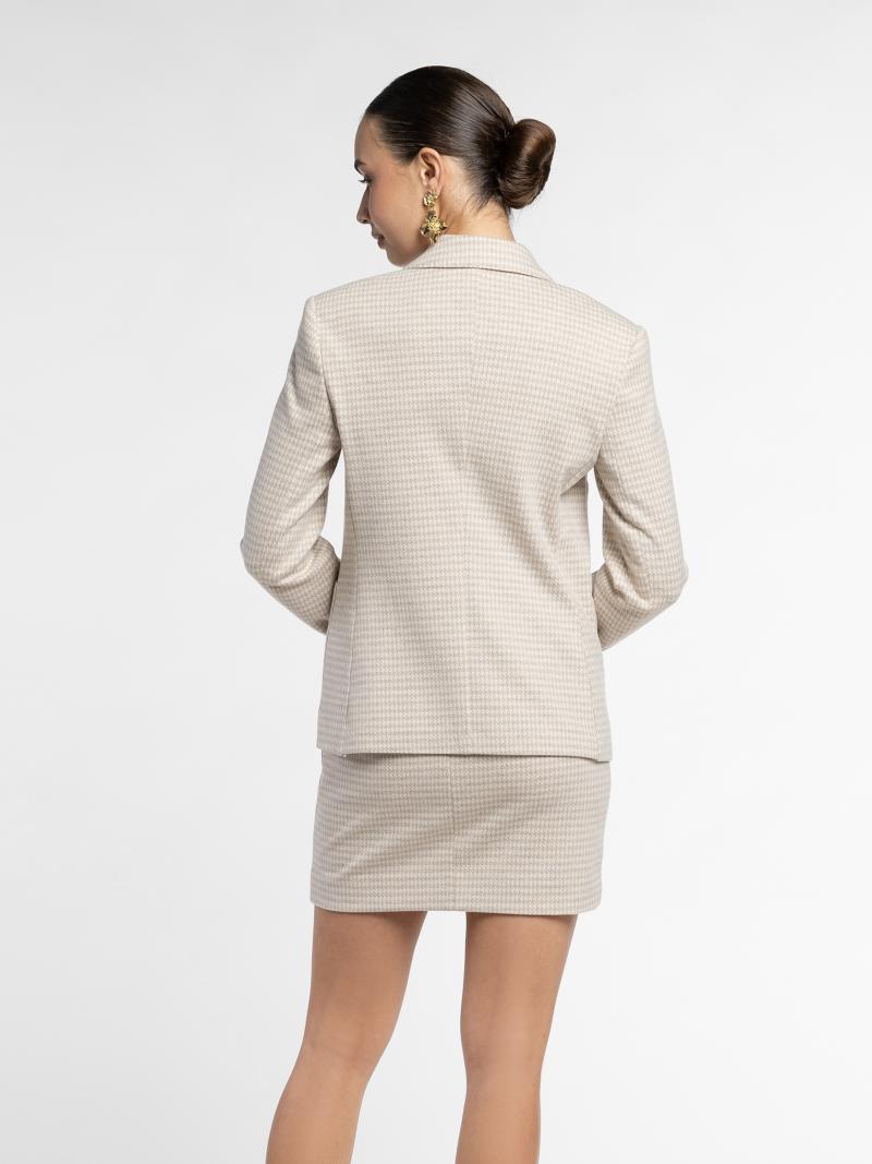 Arber women's beige knitted jacket made from soft fabric with added viscose. The straight cut creates a harmonious balance of strength and elegance. A single-breasted button fastening, straight lapels and two slit pockets with flaps ensure a perfect fit and functionality. It perfectly complements both modern trousers and stylish skirts, creating a sophisticated total look. The model in the photo is wearing size 44. Height: 168 cm. Measurements: 79/60/88