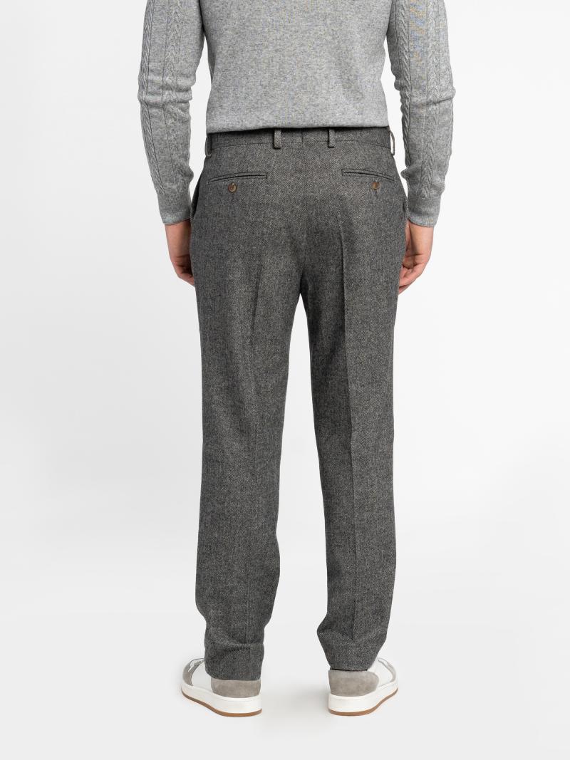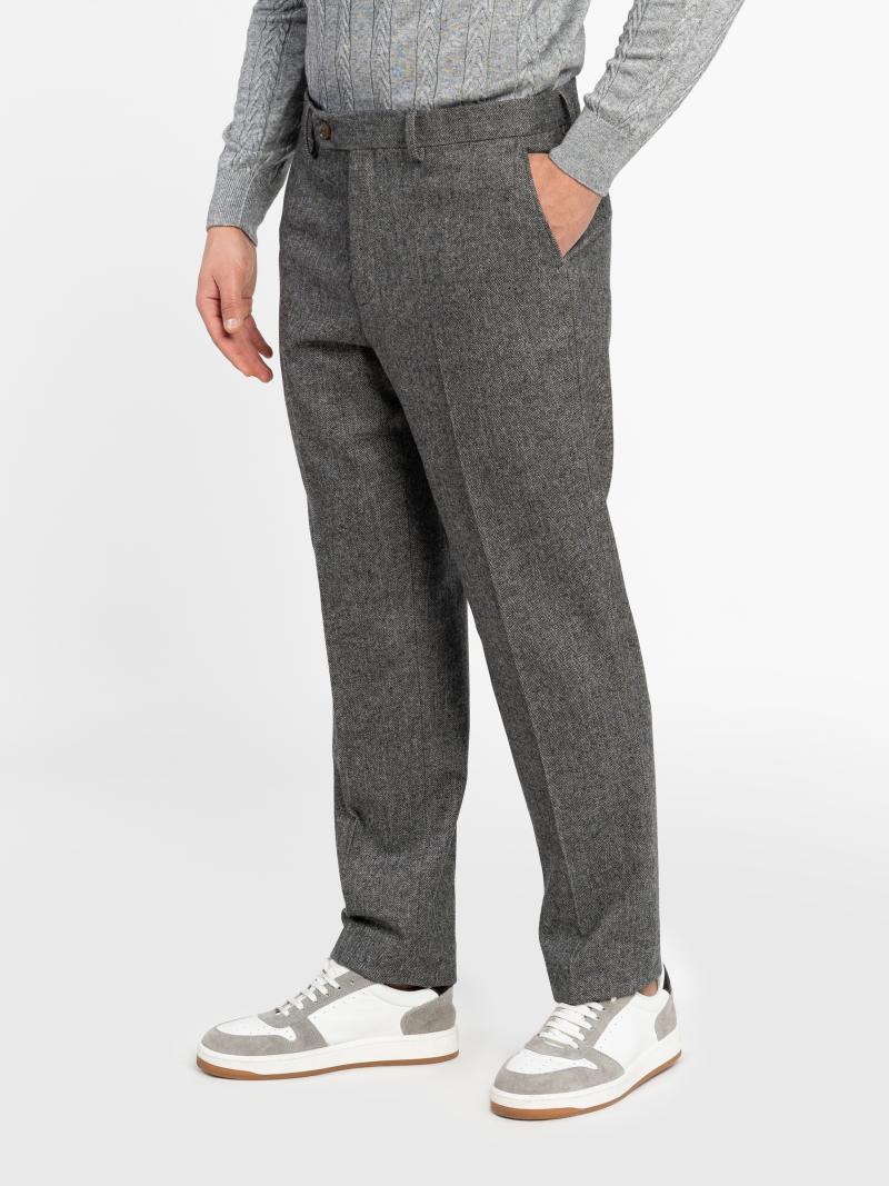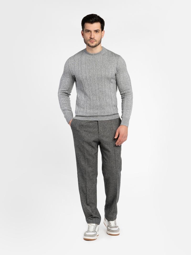 Чоловічі брюки Arber сірого кольору, виконані з теплої вовняної тканини, що зберігає тепло та забезпечує комфорт протягом дня. Середня посадка, елегантні стрілки та частково еластичний пояс поєднують стиль і практичність. Модель оснащена двома косими боковими та двома задніми кишенями. Ідеально пасують до бомбера M08.16.12.531 з тієї ж тканини для створення сучасного та теплого образу. Модель на фото: розмір 48, зріст 188 см, параметри 97/78/96.