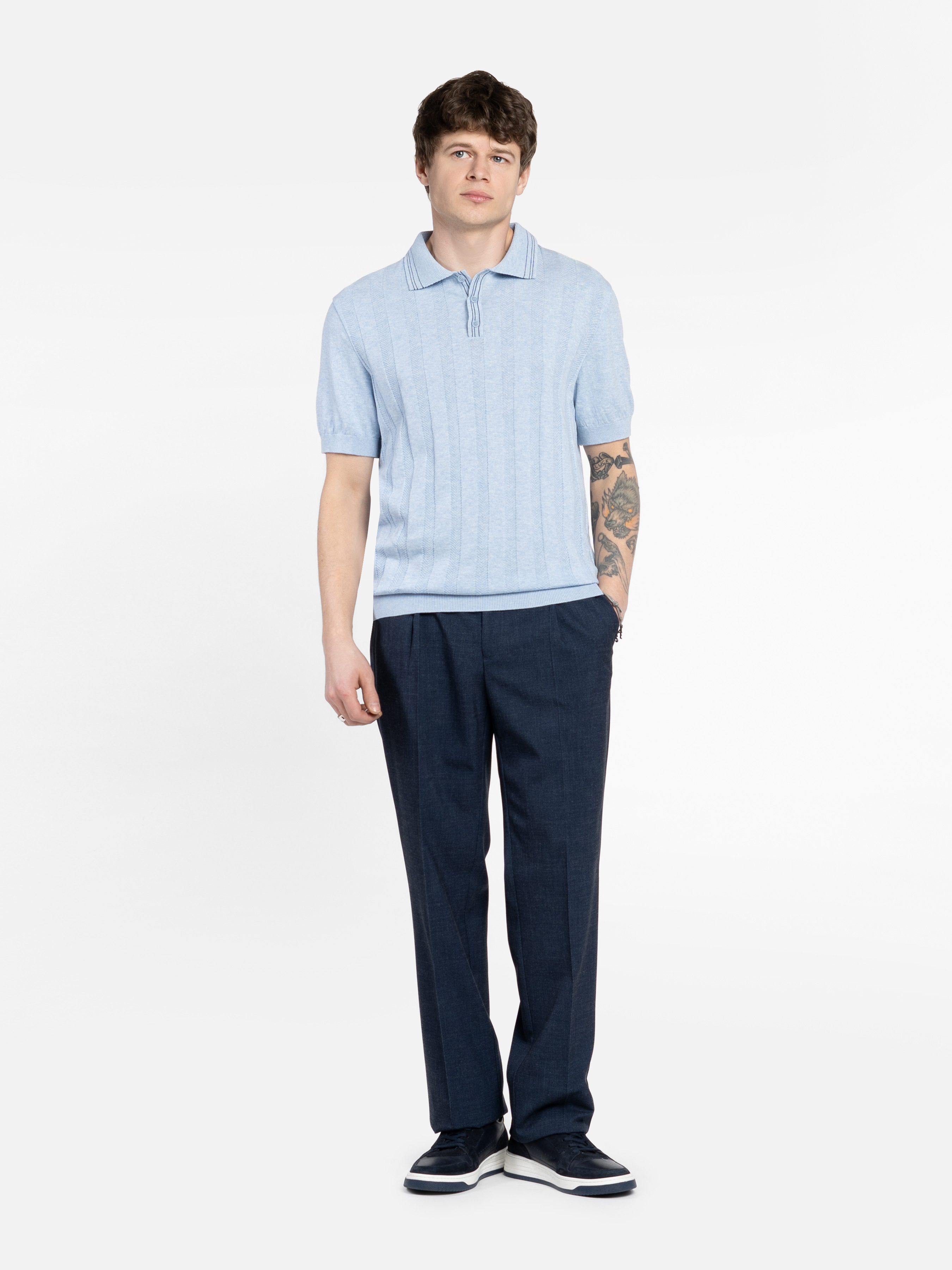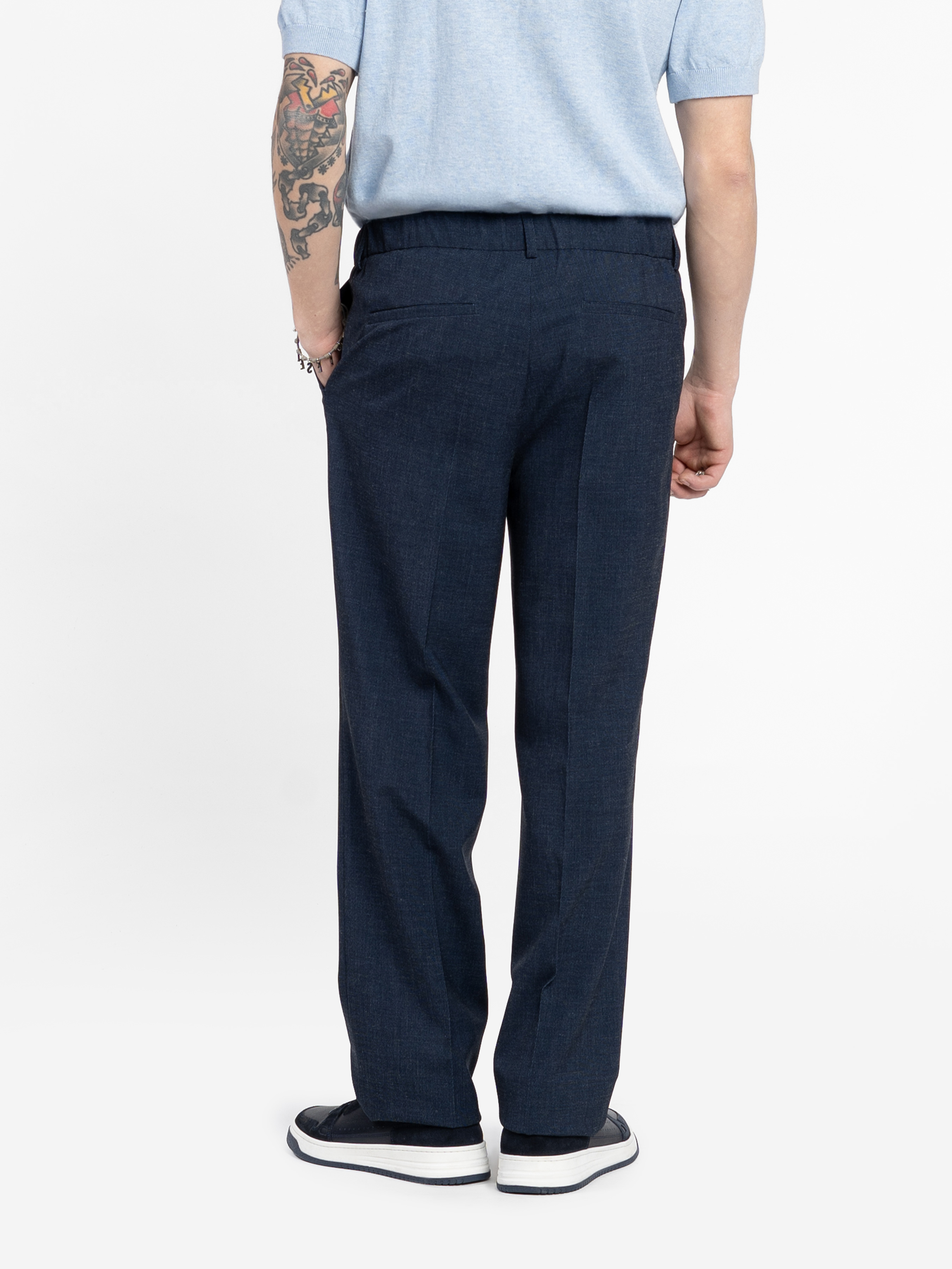 Чоловічі брюки Arber темно-синього кольору, виготовлені з інноваційної тканини з додаванням шовковистої віскози, що забезпечує комфорт і практичність. Вони не мнуться й зберігають бездоганний вигляд протягом дня. Модель має середню посадку, оформлена стрілками, пояс на гумці із застібкою на блискавку та ґудзик для зручності. Оснащені двома косими боковими кишенями та двома задніми кишенями. Бездоганний вигляд має у комплекті з піджаком M02.01.09.611 або бомбером M08.01.09.611 з тієї ж тканини. Модель на фото у розмірі 48. Зріст: 188 см. Параметри: 110/80/100