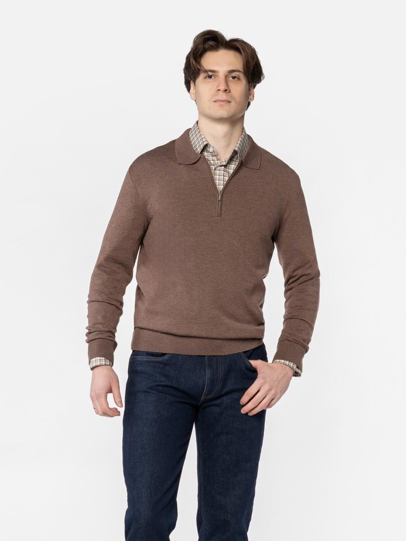 Чоловіче поло Arber коричневого кольору з тонкої бавовняної пряжі з додаванням натуральної вовни. М’яка тканина приємна на дотик, забезпечує комфорт і свободу рухів. Модель із довгими рукавами та застібкою на блискавку додає сучасного акценту. Легко поєднується з джинсами або брюками для стильного, лаконічного образу. Модель на фото у розмірі 48. Зріст: 185 см. Параметри: 103/78/100