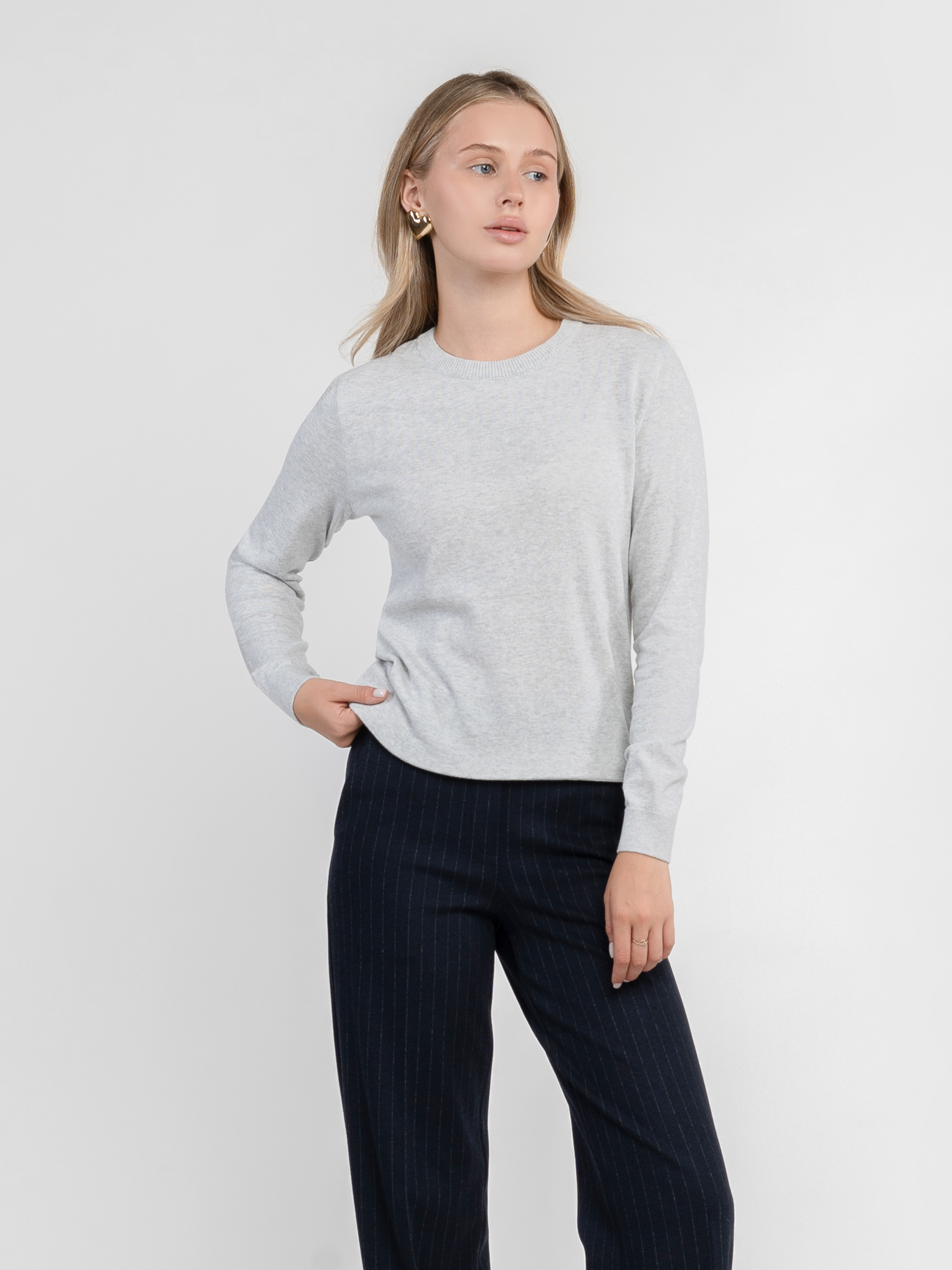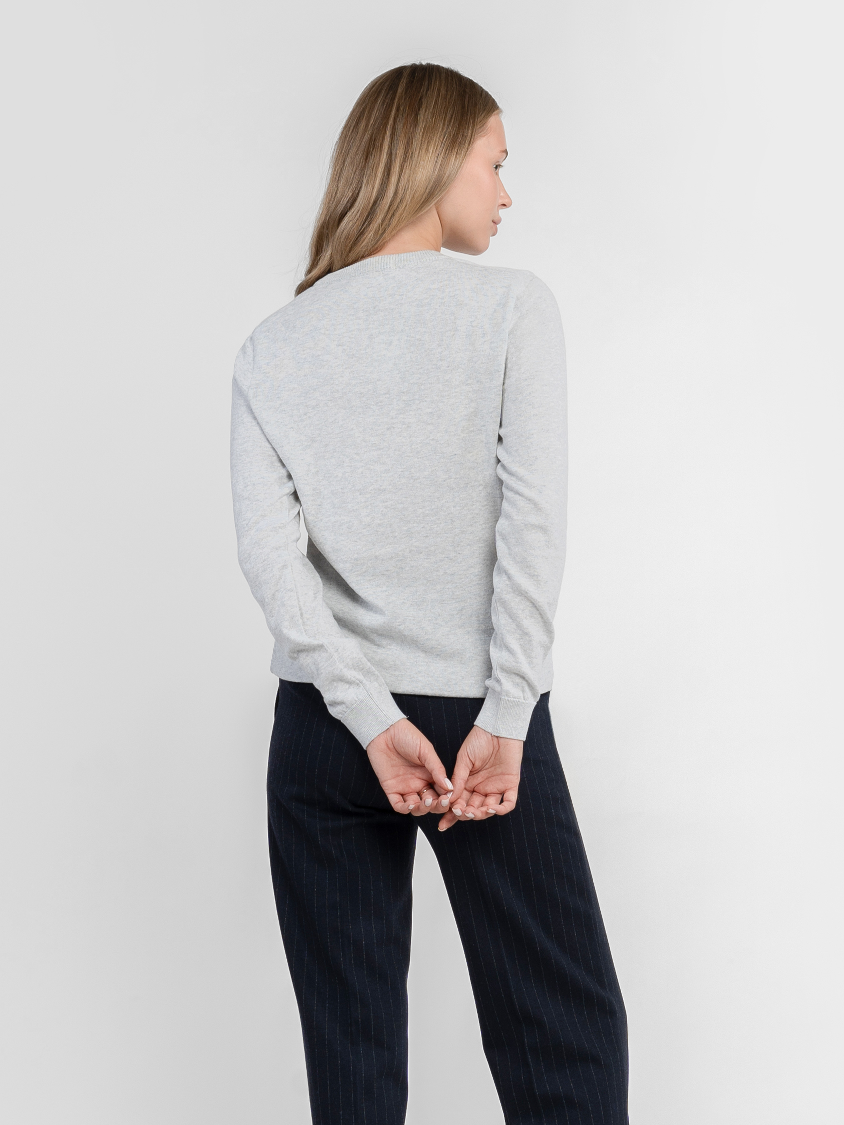 Жіночий джемпер Arber сірого кольору, пов’язаний з тонкого трикотажу на основі натуральної бавовни. Надзвичайно м’який та легкий, створений для комфорту. Ідеально сідає по фігурі, підкреслює жіночність, не сковуючи рухів. Мінімалістичний дизайн і нейтральний колір роблять цю модель універсальним базовим елементом гардероба. Модель на фото у розмірі 42. Зріст: 168 см. Параметри: 80/62/87