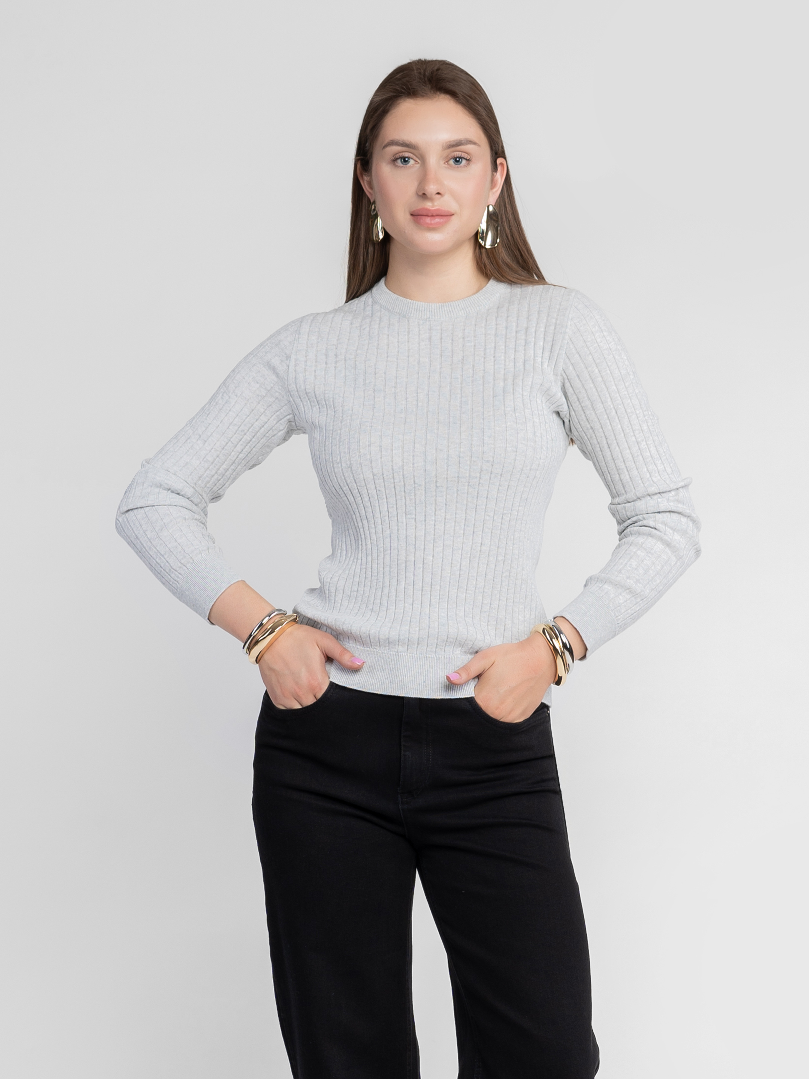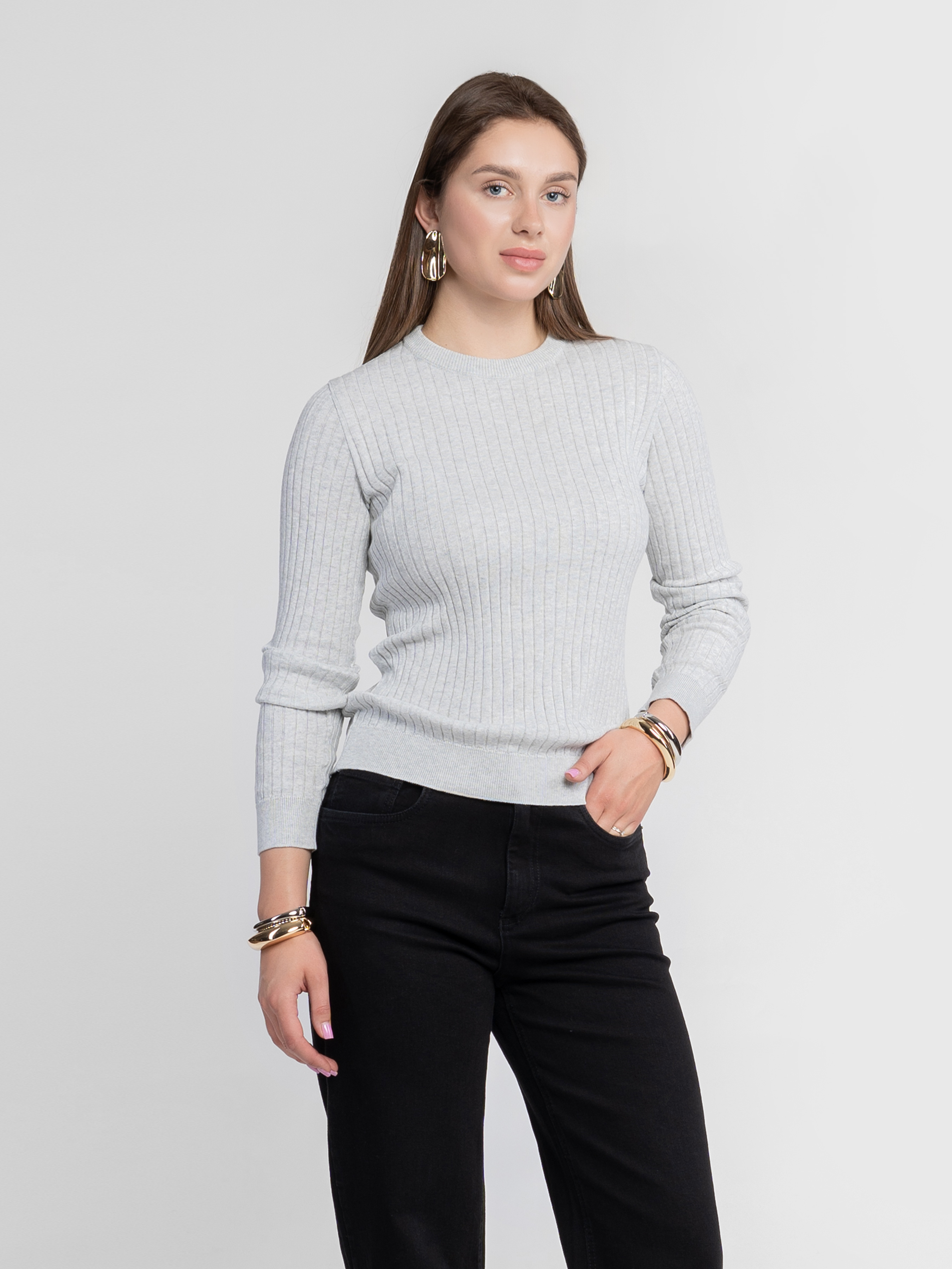 Джемпер жіночий Arber сірий, створений зі 100% бавовни, м'який трикотаж ідеально сідає по фігурі і не сковує рухів. Текстура рубчика і мінімалістичний крій додають сучасного шарму. Ідеальний для джинсів, брюк та casual-образів. Модель на фото у розмірі 42. Зріст: 168 см. Параметри: 80/62/87