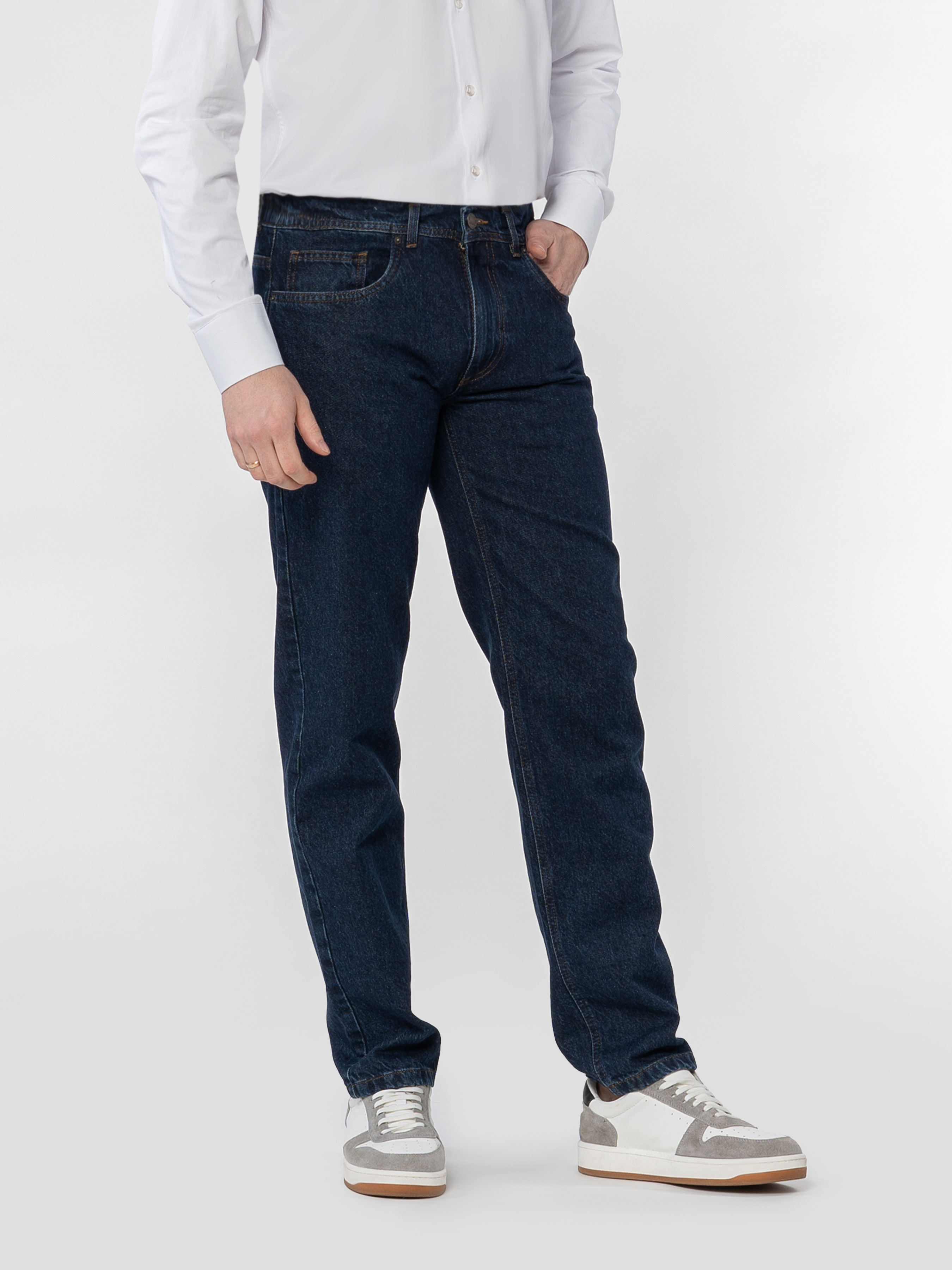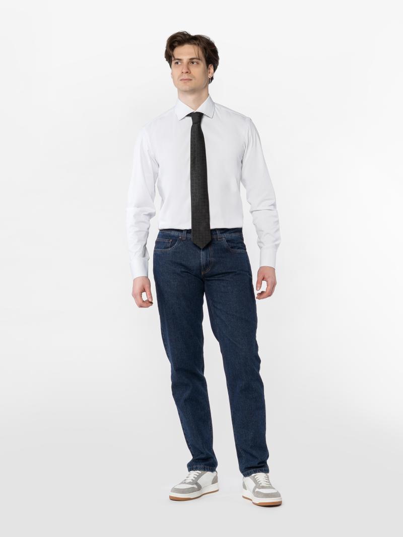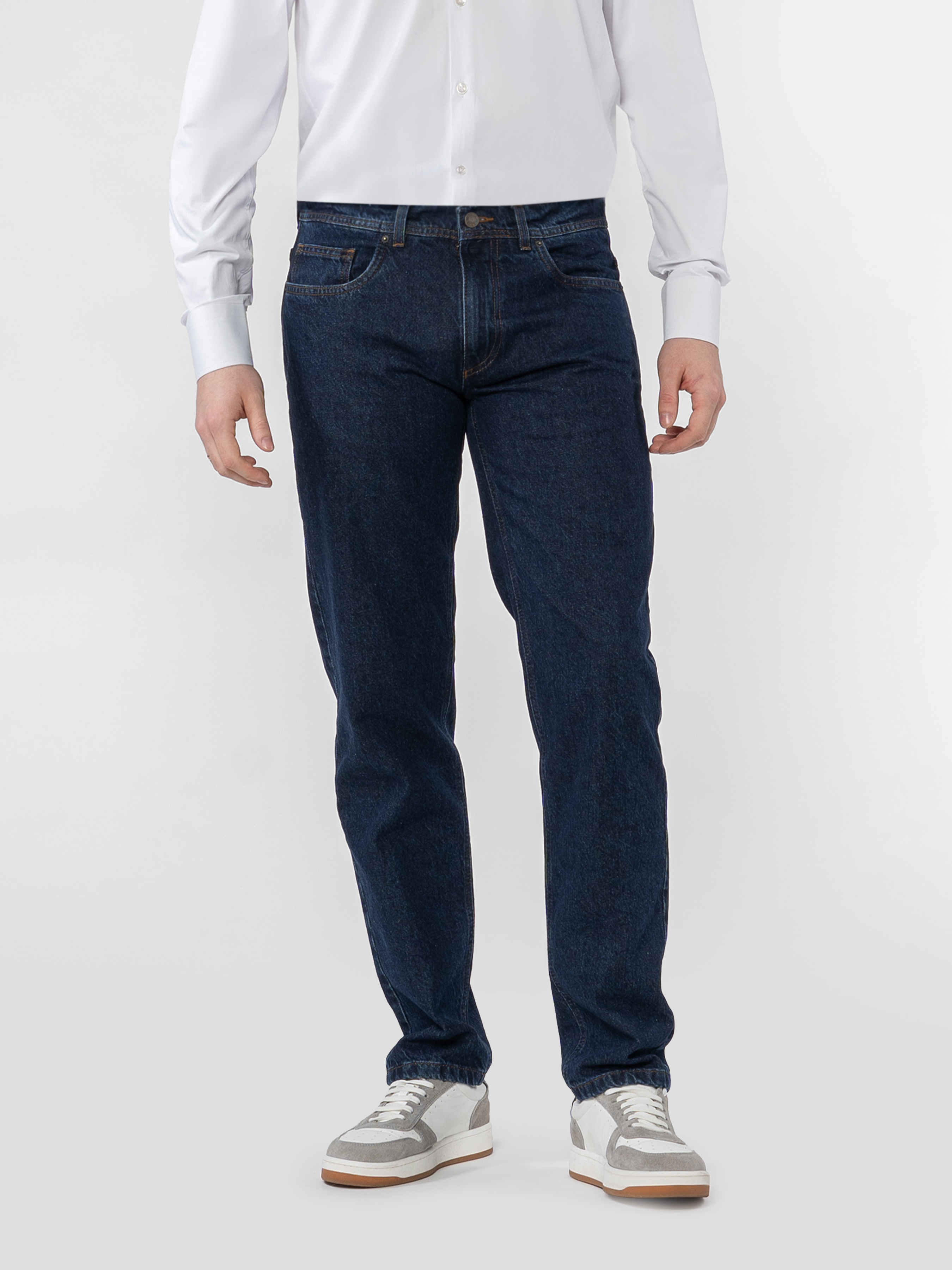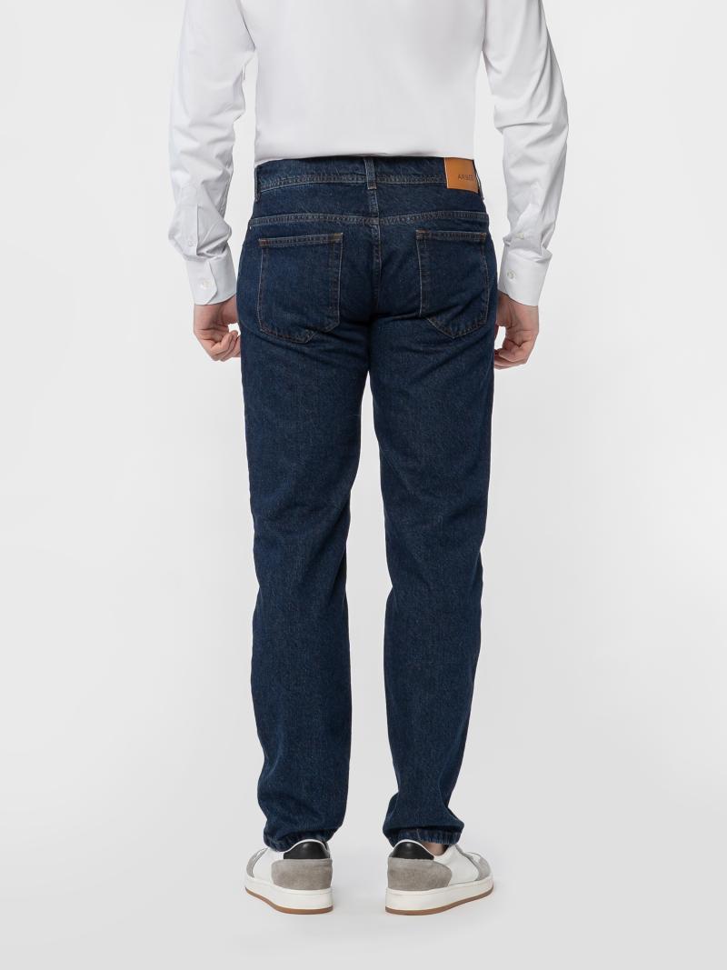 Джинси сині чоловічі Arber з м'якого бавовняного деніму з додаванням еластану для комфортної посадки і свободи рухів. Прямий крій з класичною посадкою на талії створює чистий силует, підкреслюючи сучасний мінімалізм. Темно-синій відтінок універсальний у поєднаннях — ідеально підходить як для повсякденних образів, так і для смарт-кежуал стилю. Модель на фото у розмірі 48. Зріст: 185 см. Параметри: 103/78/100