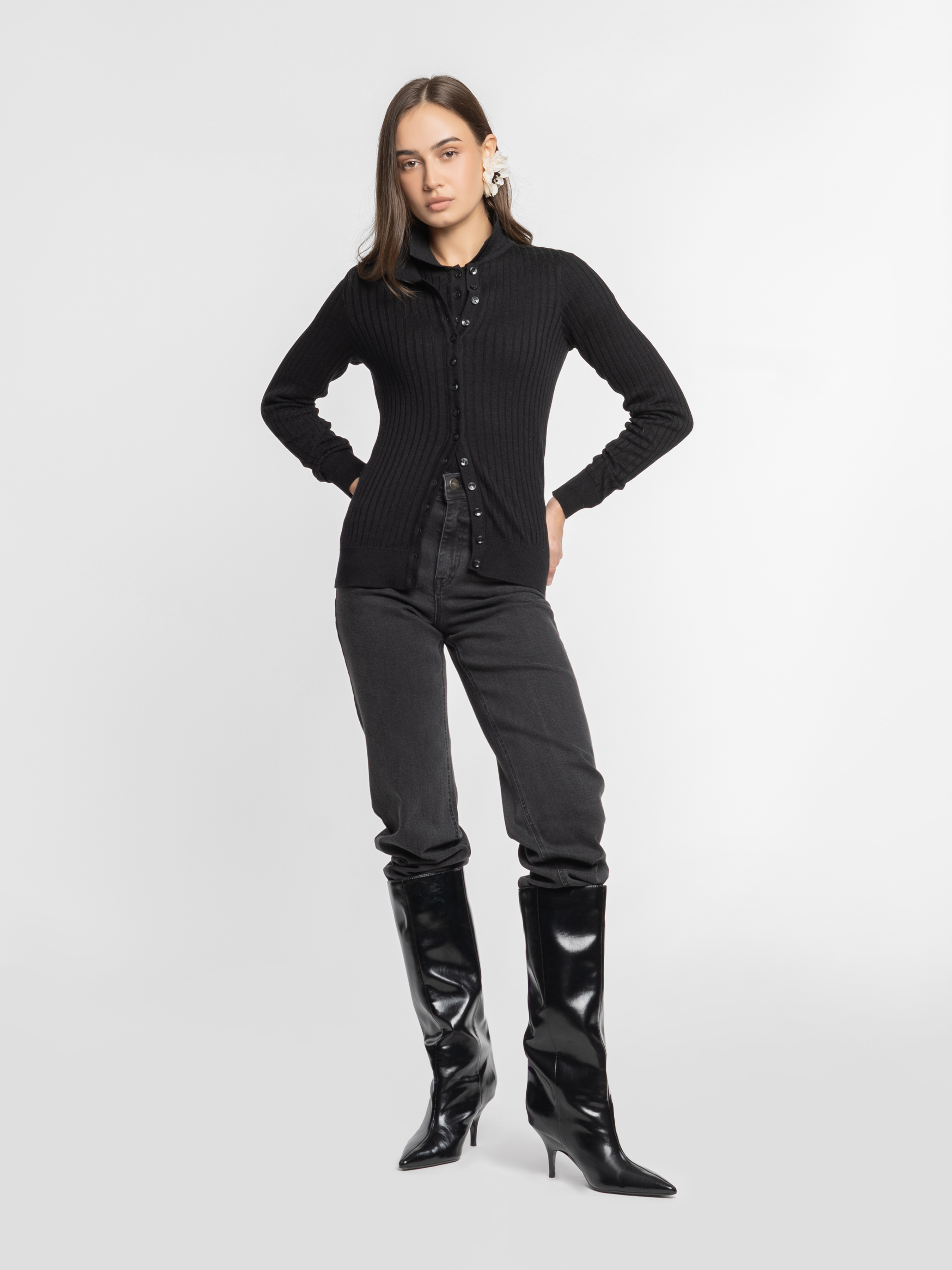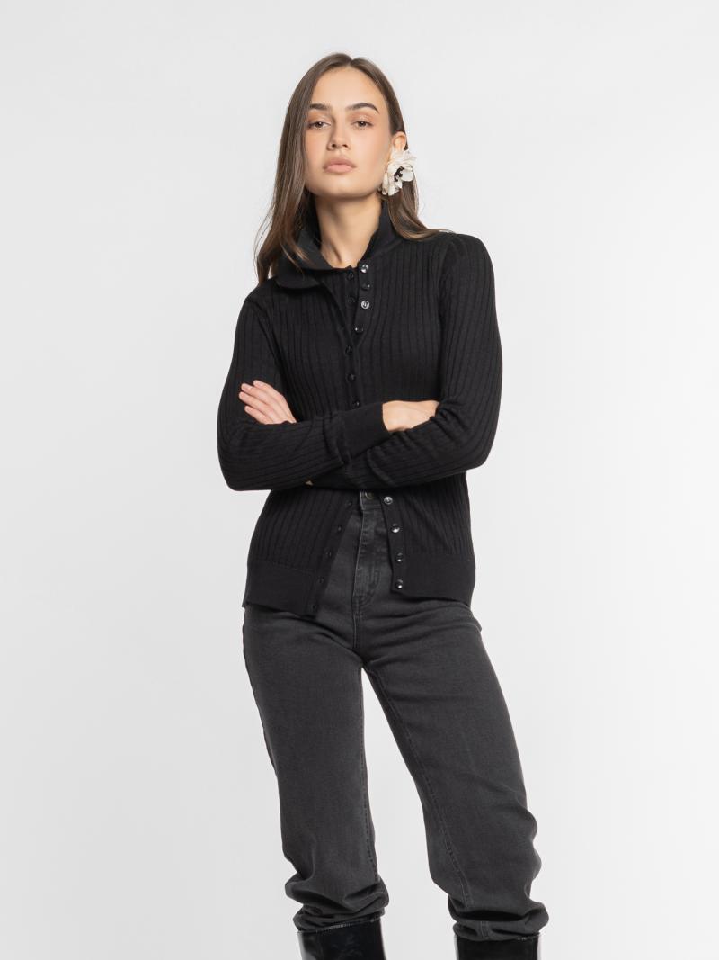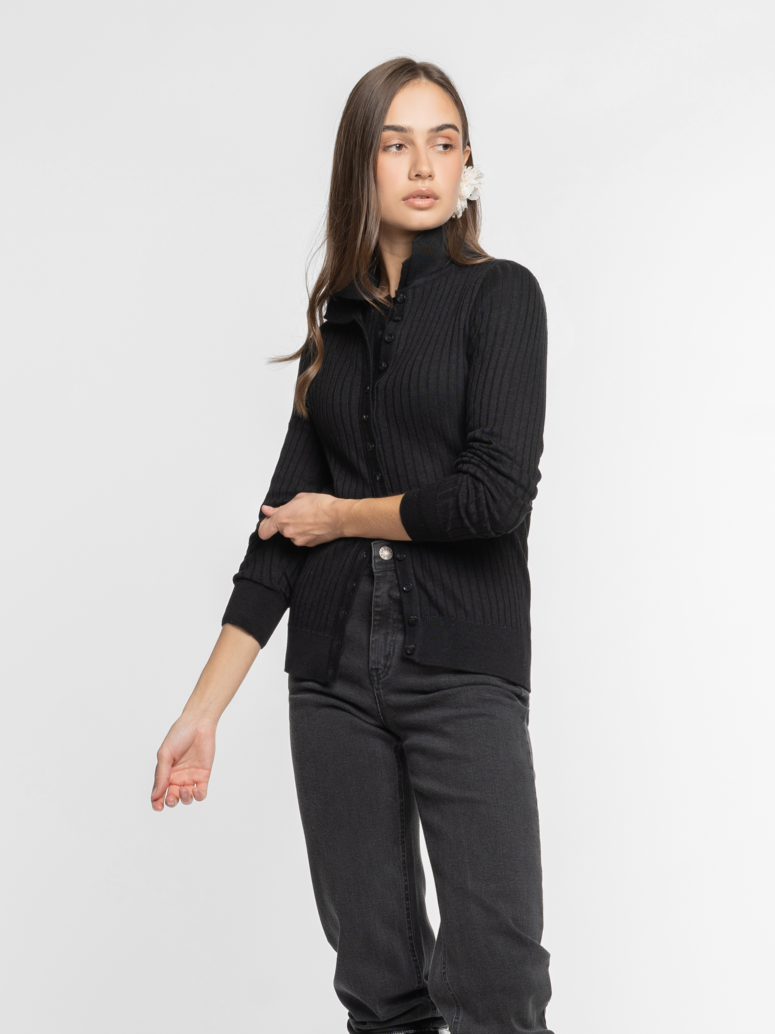 Кардиган-поло W10.18.02.535 Arber жіночий чорний в рубчик трикотажний