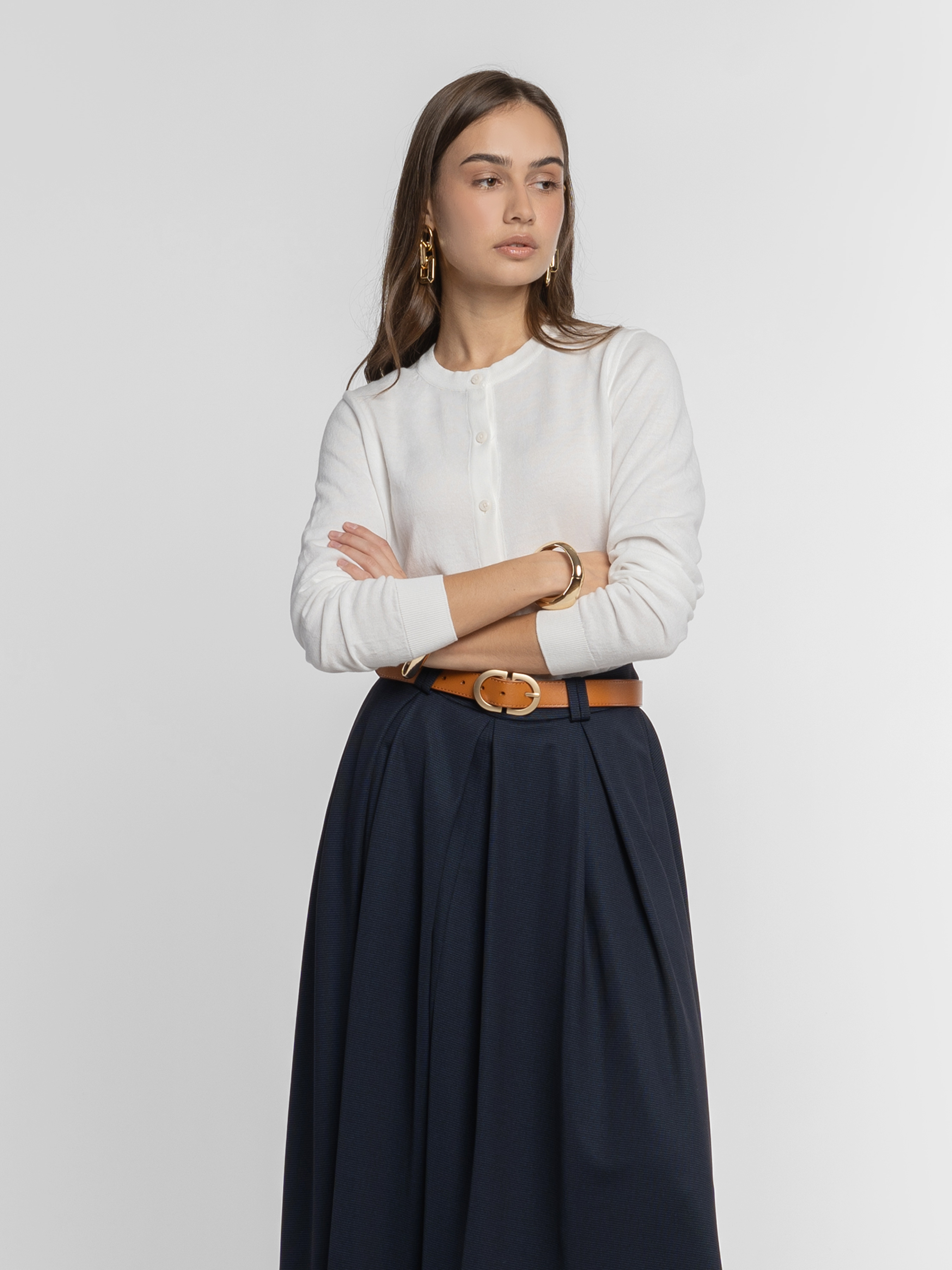 Жіночий базовий кардиган Arber білого кольору.¶М’який бавовняний трикотаж не сковує рухів і дарує комфорт протягом дня. Прямий крій і гладка поверхня створюють сучасний силует, а застібка на ґудзиках додає елегантного акценту. Ідеальний для джинсів, брюк та casual-образів. Модель на фото у розмірі XS. Зріст: 168 см. Параметри: 79/60/88