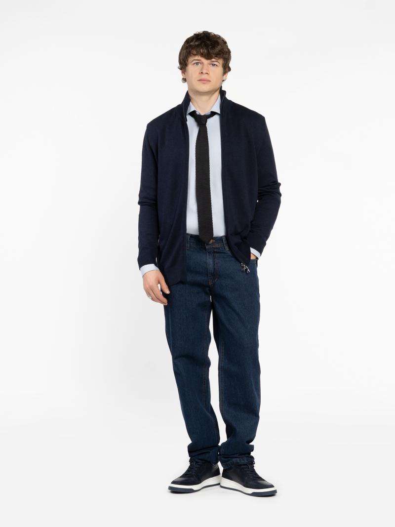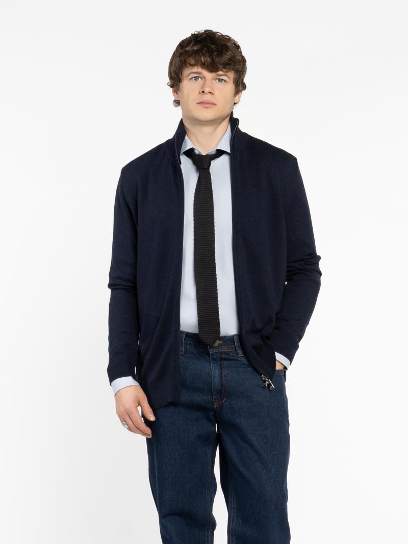 Чоловіча кофта Arber темно-синього кольору на змійці, виконана з м’якої пряжі на основі бавовни з додаванням нейлону та вовни. Легка, комфортна і приємна на дотик — ідеальна для повсякденного носіння. Класичний крій та зручна застібка на змійку роблять її універсальною базовою річчю, яка легко поєднується з джинсами, брюками або спортивними елементами гардеробу. Модель на фото: розмір 48, зріст 188 см, параметри 97/78/96.