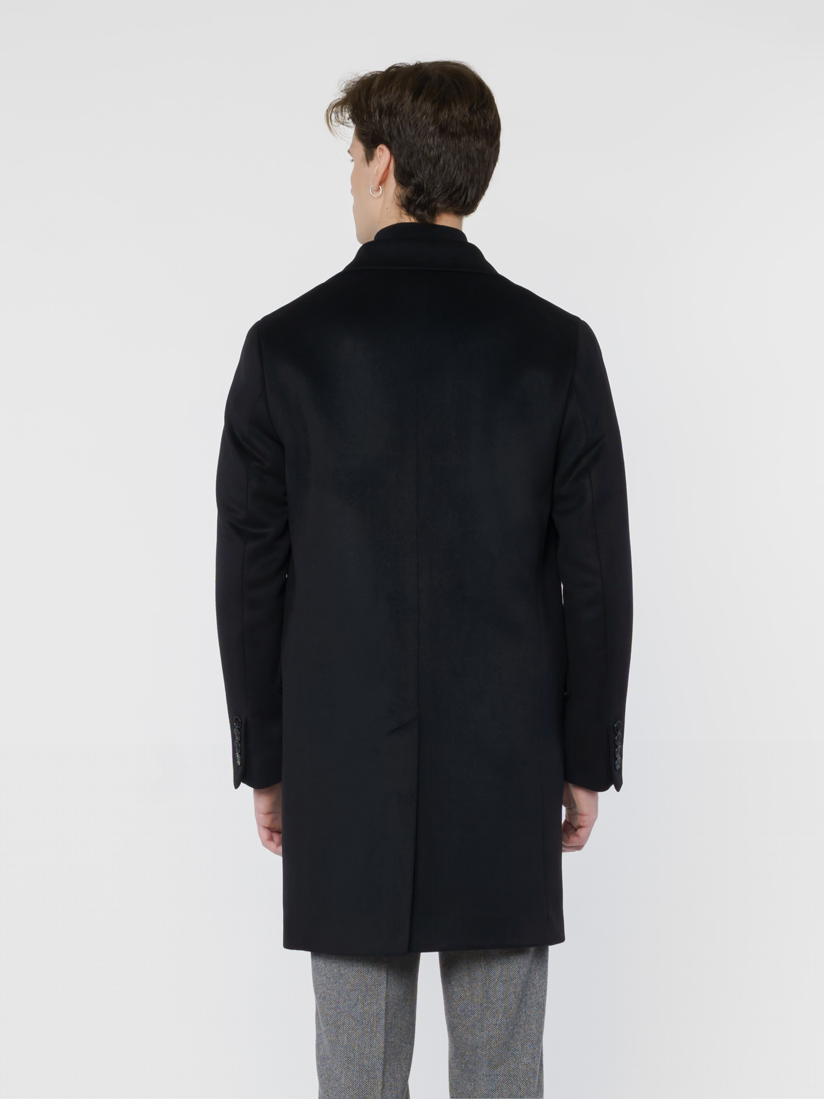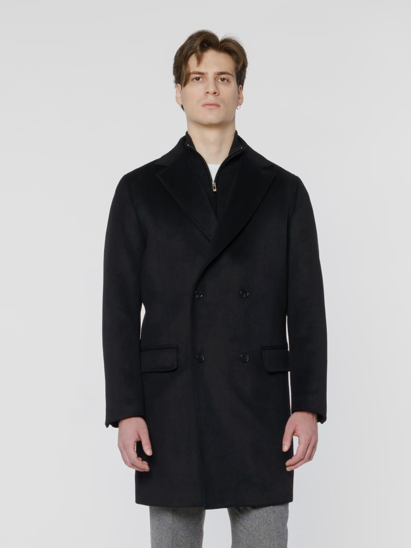 Чоловіче чорне пальто Arber створено з якісної та м'якої на дотик тканини на основі вовни. Модель двобортна, з відкладним коміром та прямими лацканами, прямого силуету, з плавною лінією плеча, має дві прорізні кишені з клапанами. Спинка зі швом посередині, закінчується відкритою шлицею. На підкладці дві внутрішні, прорізні кишені. Це елегантне пальто - відмінний вибір для осінього гардеробу сучасного чоловіка.
