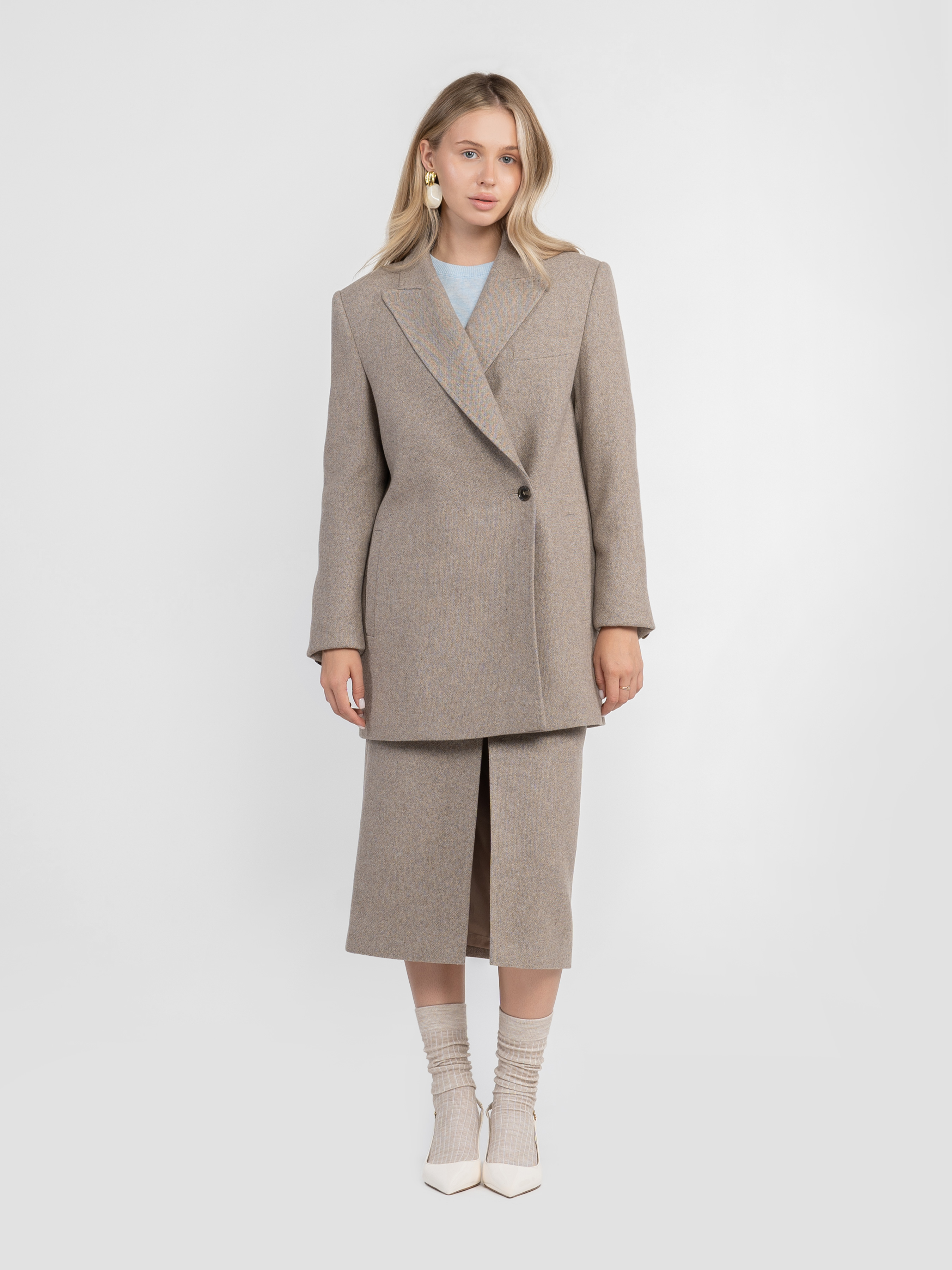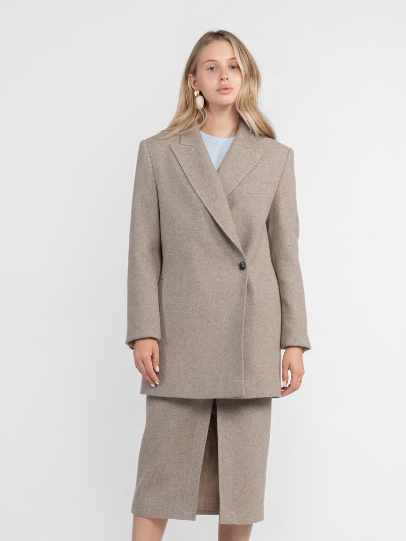 Жіноче пальто Arber бежевого кольору зі змішаною вовняною тканиною. Укорочена модель із чіткими лініями та гострими лацканами створює сучасний силует. Застібка на ґудзик підкреслює мінімалізм, а тканина м'яка та добре зберігає тепло. Підкладка стьобана на основі сучасного синтетичного утеплювача Hollowsoft, виготовленого за унікальними технологіями: маючи тонке волокно, зберігає високу теплоізоляцію, зігріваючи в холодну пору. Стильна базова річ, що додає образу легкої елегантності та завершеності. Модель на фото у розмірі 42. Зріст: 168 см. Параметри: 80/62/87