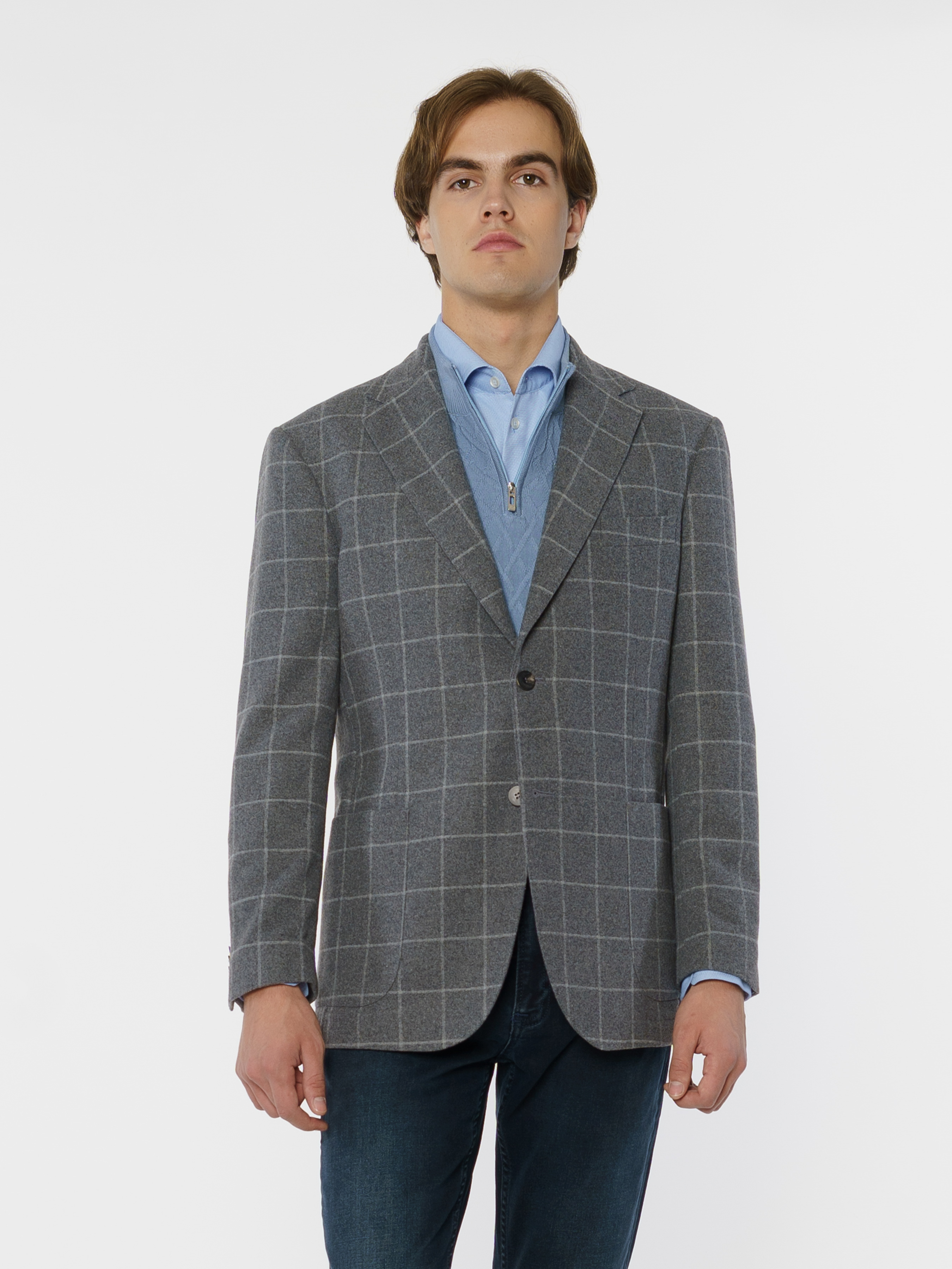 Чоловічий сірий піджак Arber selection створений із тканини на основі вовни, в клітину. М'яка, тканина на основі вовни, дозволяє зберегти і утримувати тепло, при цьому тканина практична, не мнеться, стійка до забруднень. Модель напівприлегла, із застібкою на 2 гудзики, з прямими лацканами, двома накладними кишенями та двома шліцами. Піджак вдало поєднується з трикотажем, повсякденними та класичними сорочками.