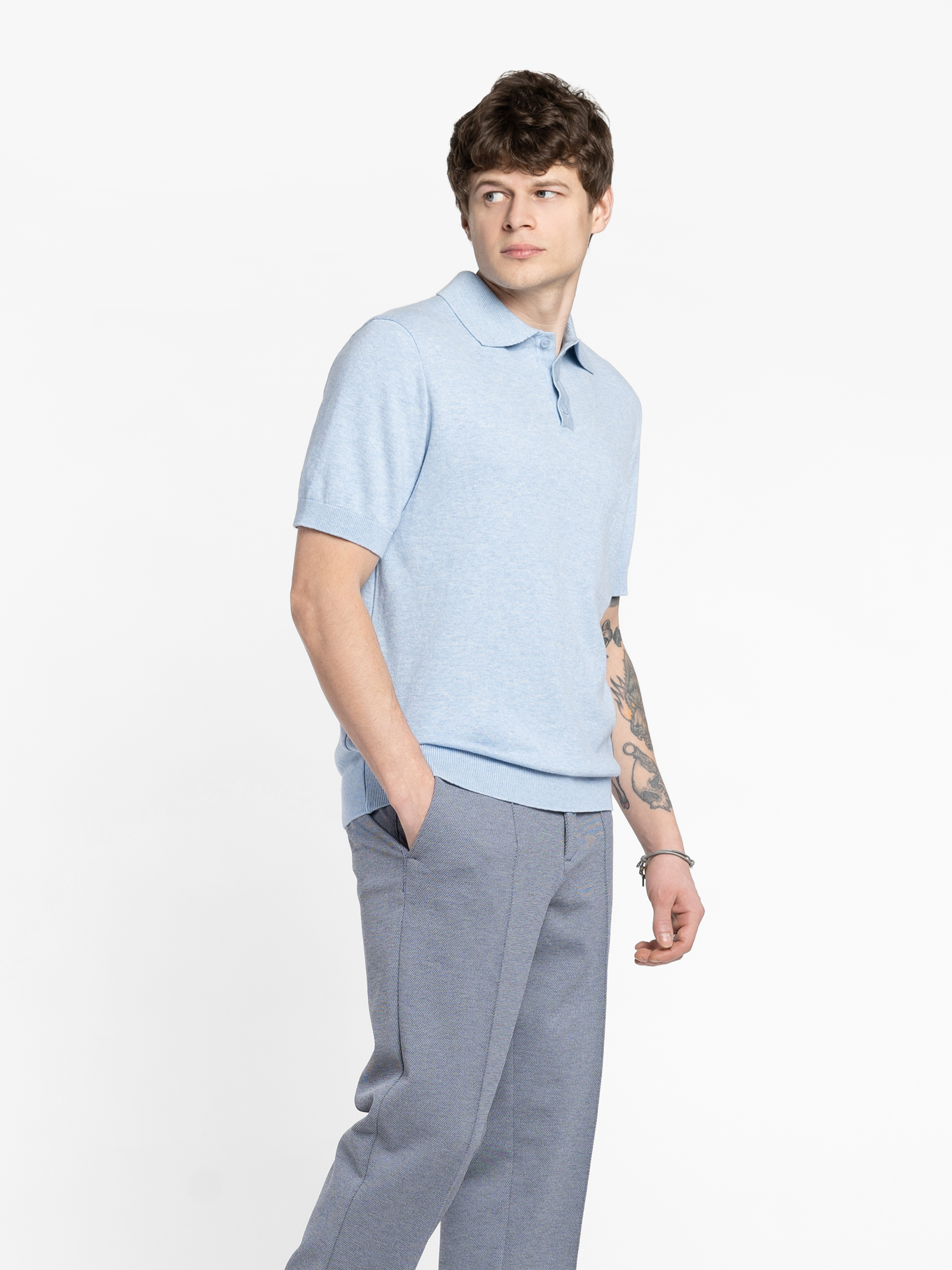 Чоловіче поло Arber блакитного кольору, створене з тонкої пряжі 100% високоякісної бавовни. Натуральна тканина дарує відчуття легкості та виняткової м’якості, приємної до тіла. Завдяки тонкій текстурі, поло відмінно пропускає повітря, забезпечуючи комфорт протягом усього дня. Поло з застібкою на 3 ґудзики, гармонійно доповнить гардероб в поєднанні з брюками або джинсами. Модель на фото у розмірі 48. Зріст: 188 см. Параметри: 110/80/100