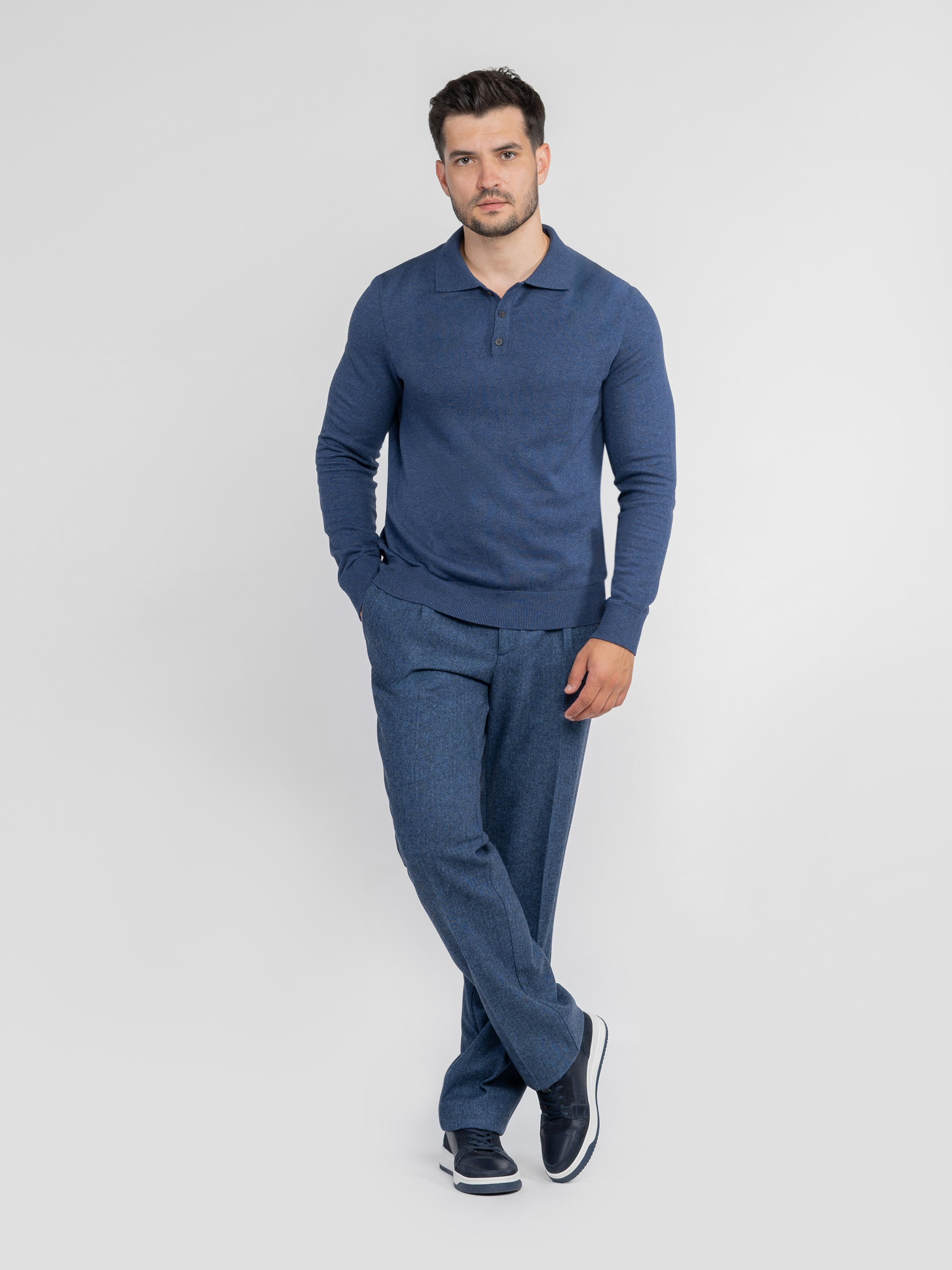 Поло чоловіче M10.09.06.531 Arber трикотажне синє з довгим рукавом