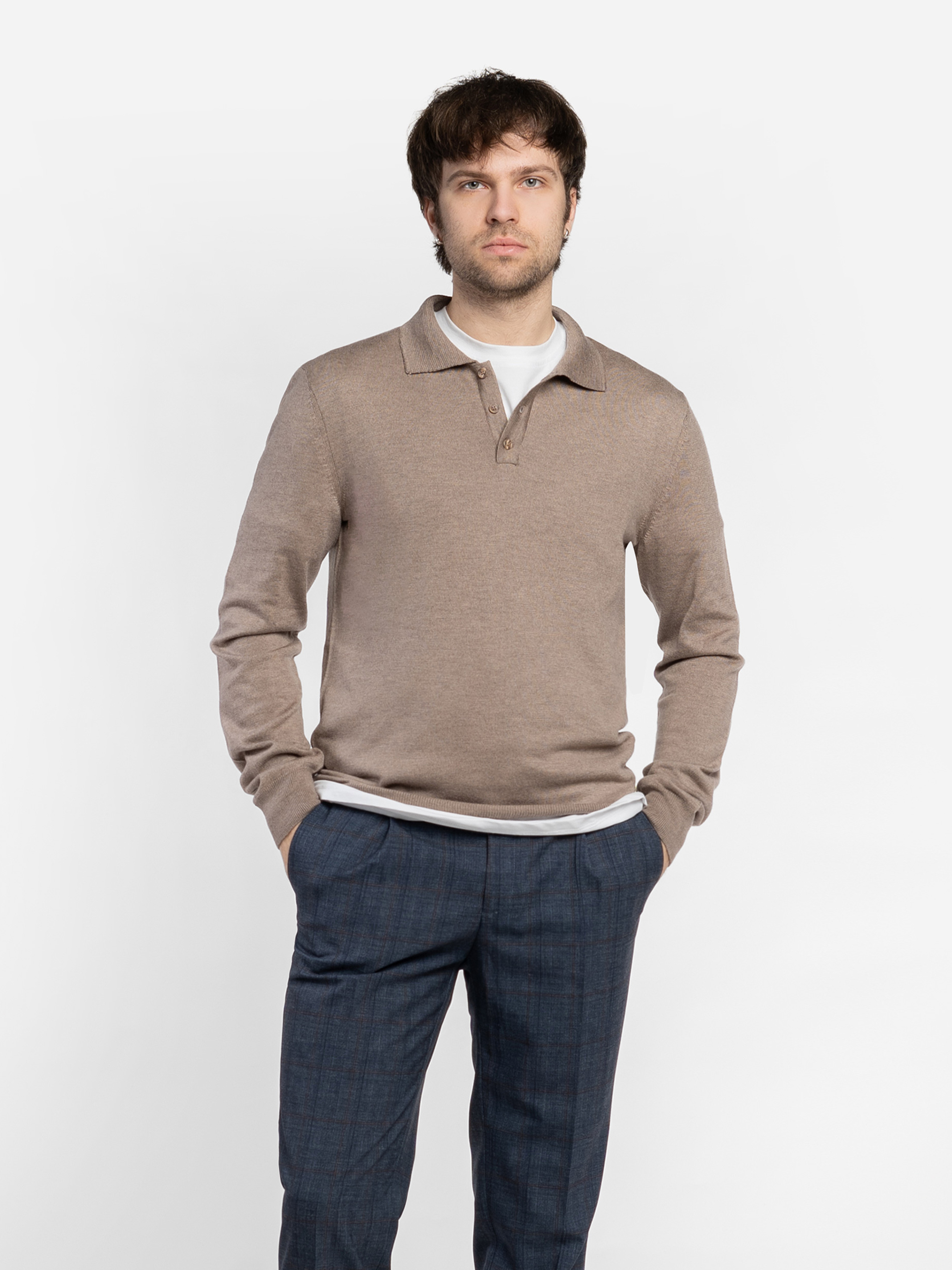 Поло чоловіче трикотажне M10.34.16.532 Arber бежеве з довгим рукавом