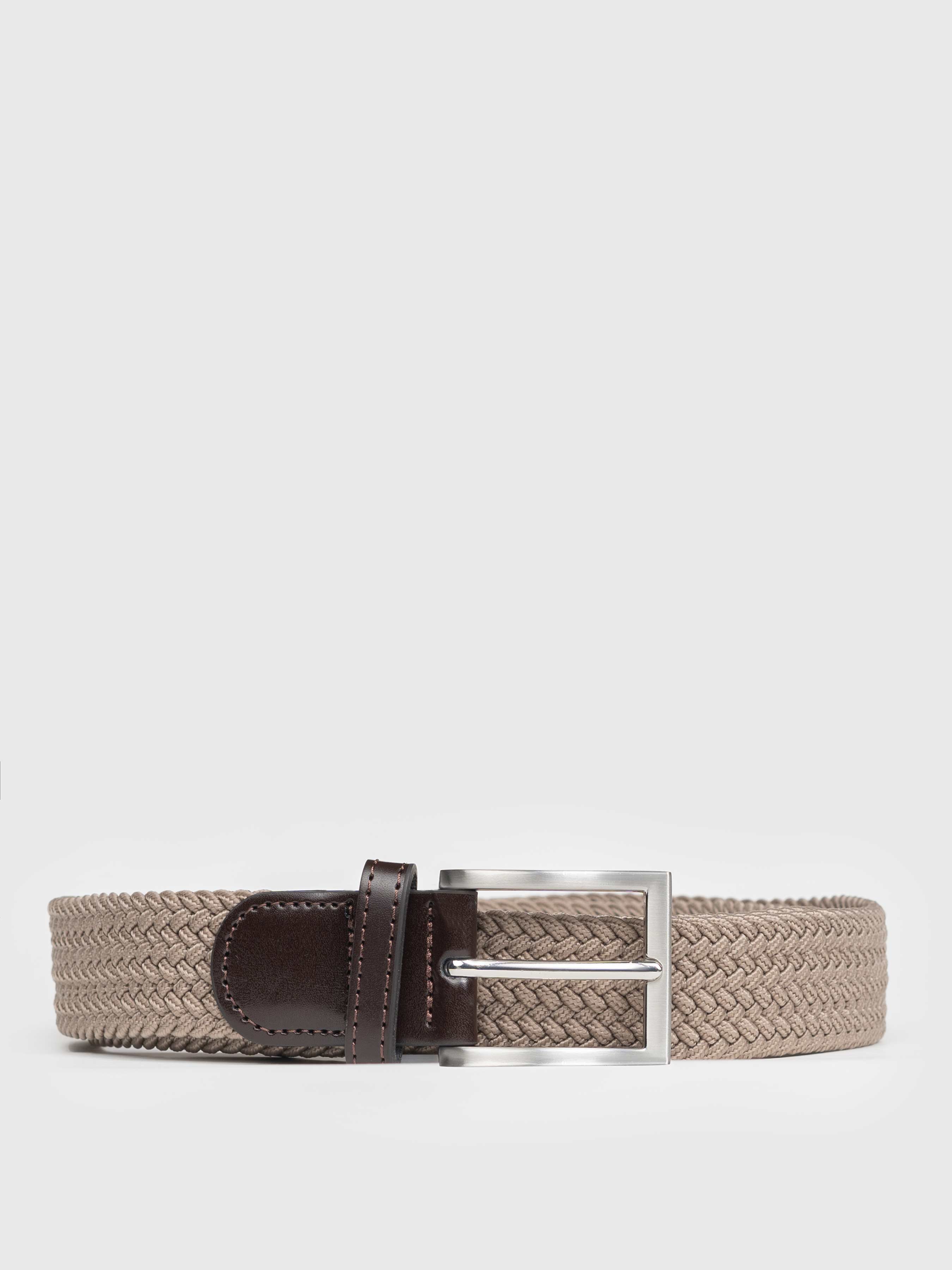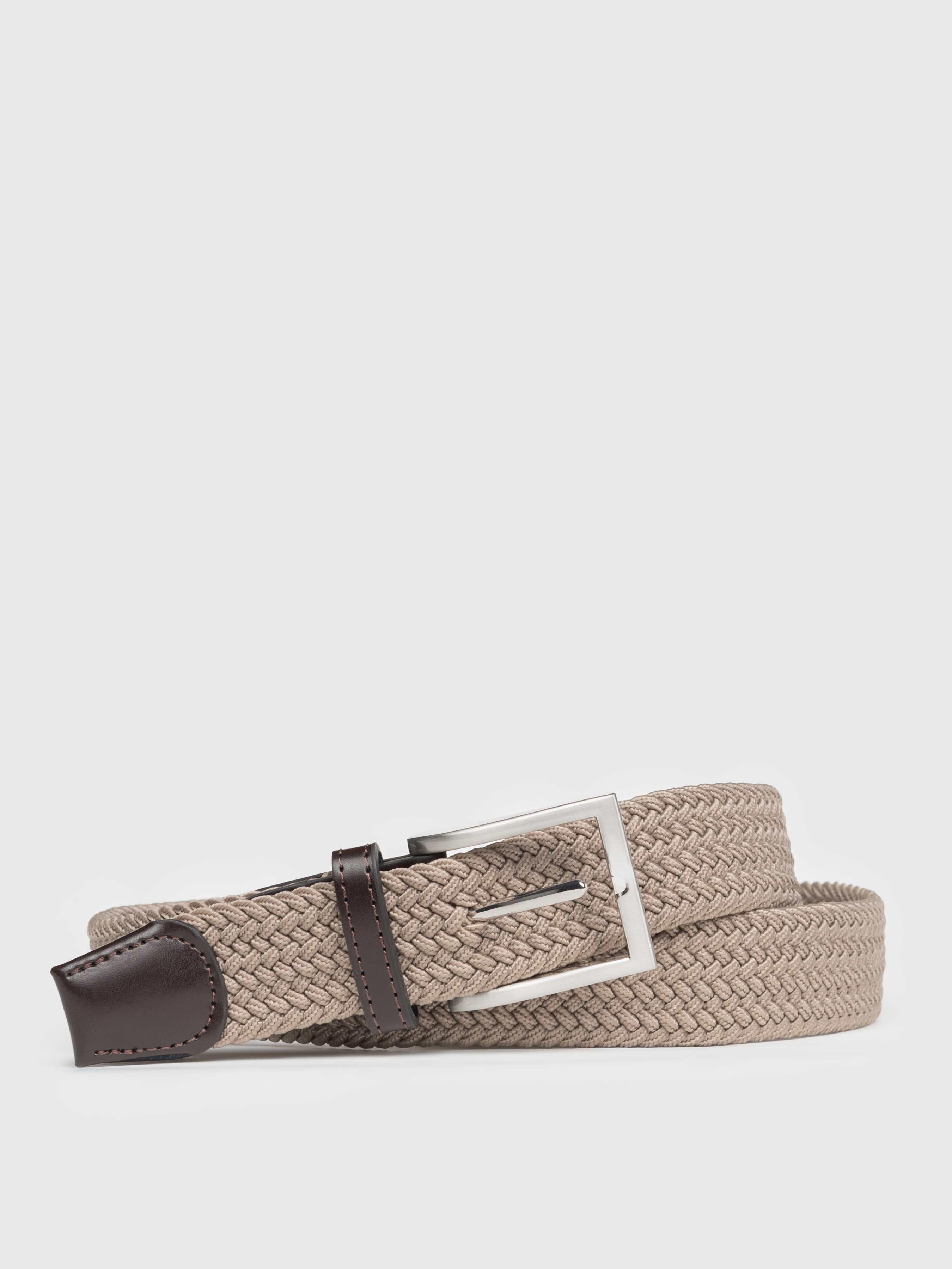 Чоловічий ремінь Arber молочного кольору виконаний з плетеного текстилю з контрастними шкіряними вставками. Міцна металева пряжка доповнює лаконічний дизайн, роблячи аксесуар універсальним вибором для повсякденних образів.