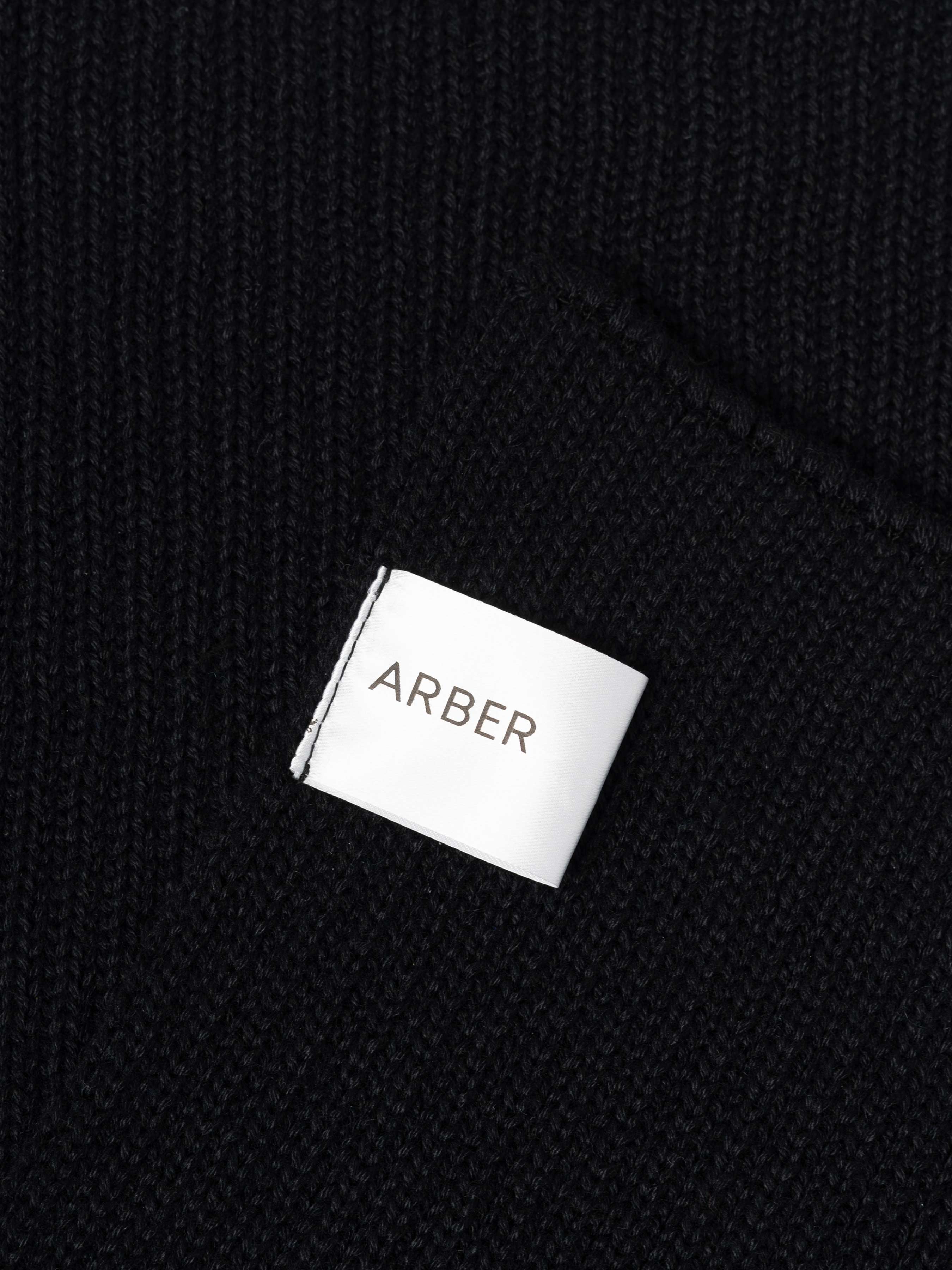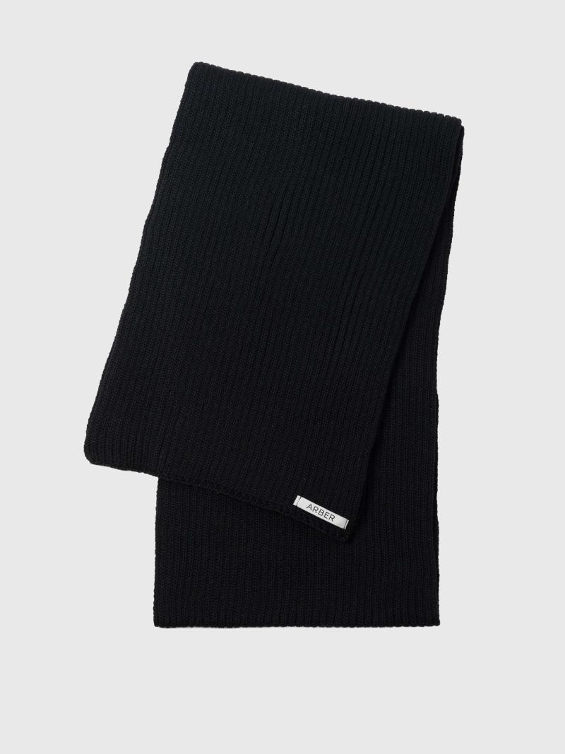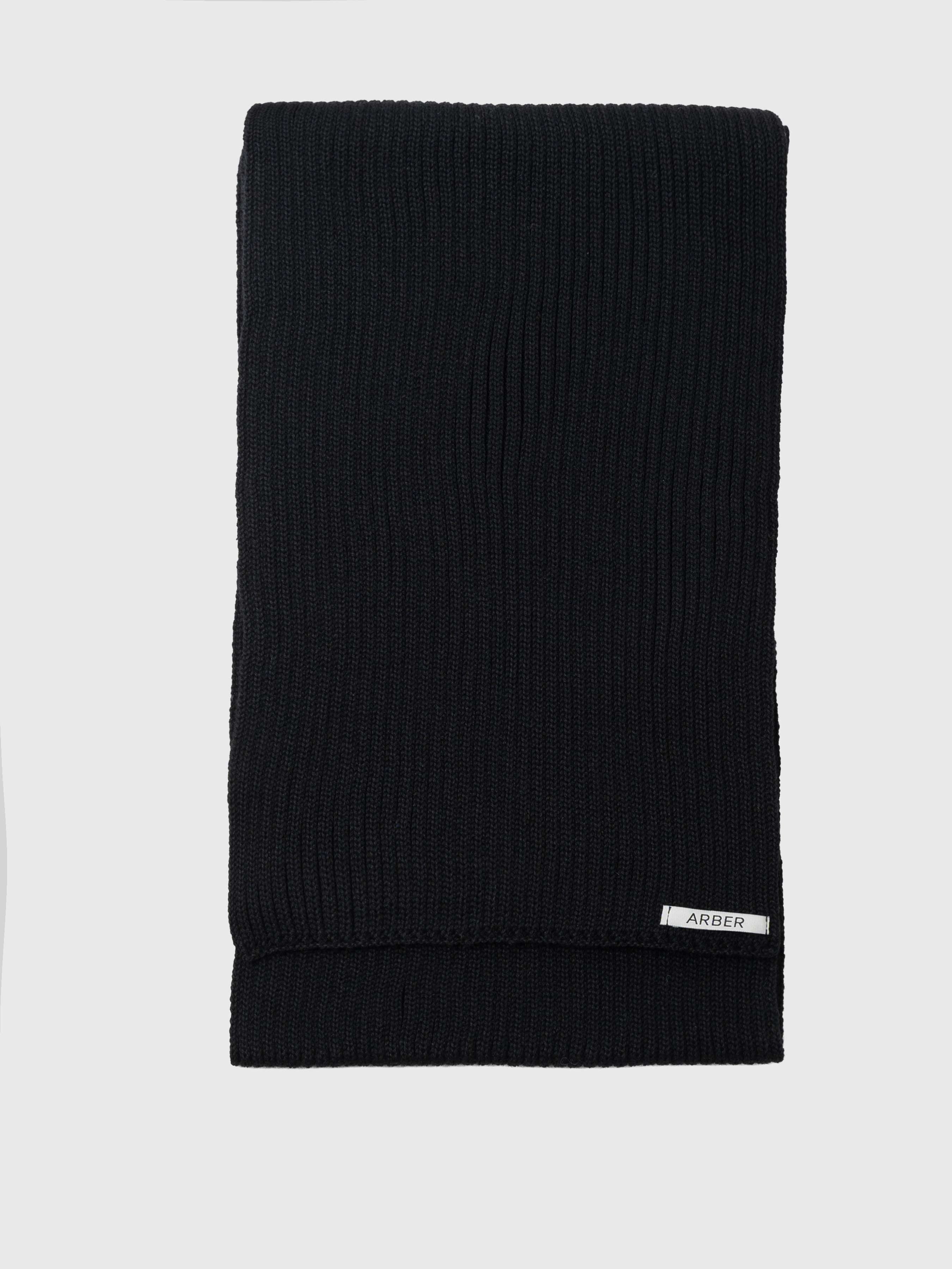 Чоловічий шарф Arber чорного кольору з м’якої вовняної пряжі. Легкий і теплий, з виразною текстурою — мінімалістичний акцент для сучасного образу.
