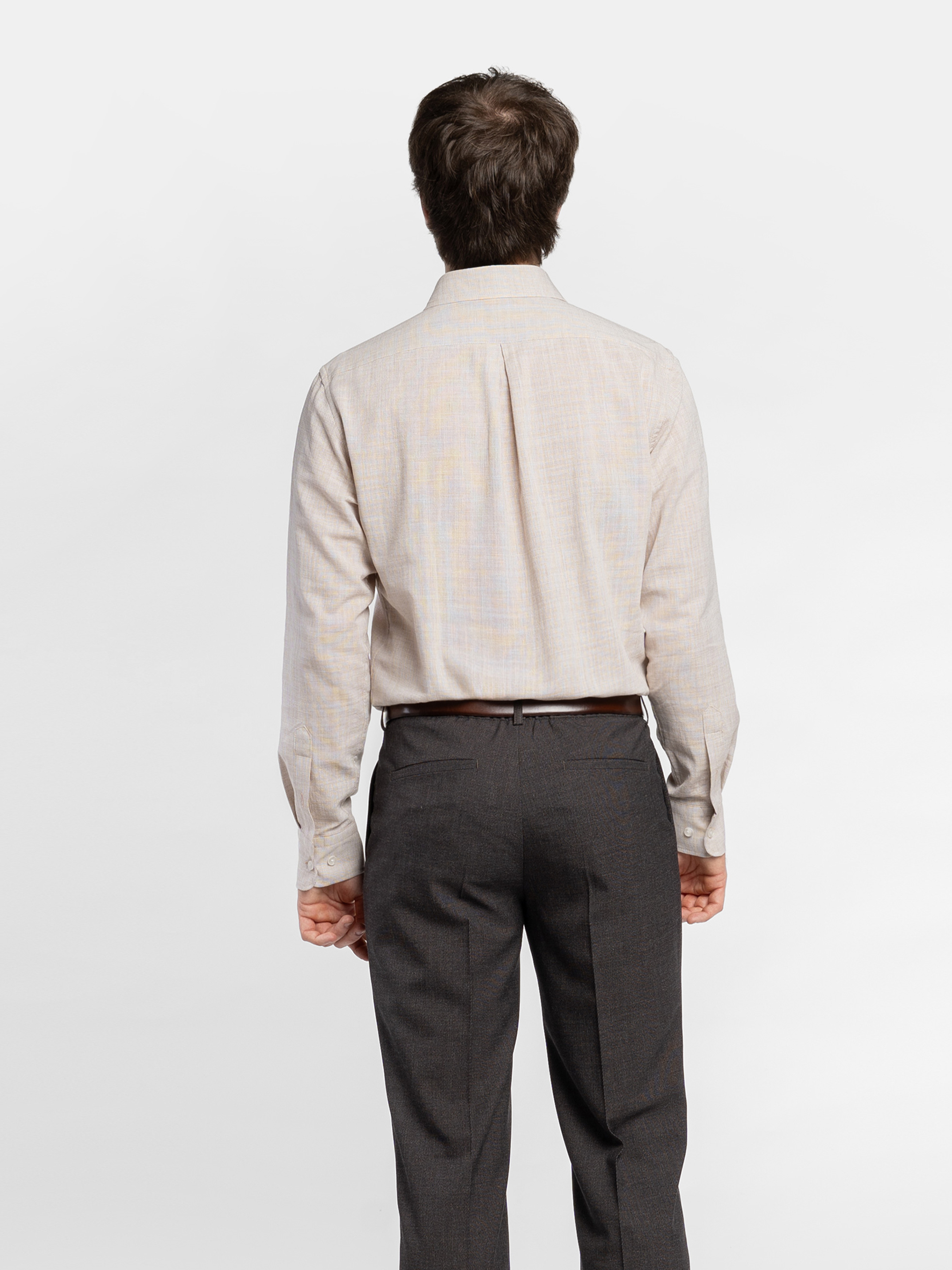 Бежева чоловіча сорочка Arber - основа базового гардероба ділового чоловіка. Модель напівприлеглого силуету створена з легкої тканини 100% бавовни. Модель з відкладним коміром та регульованими манжетами які застібаються на ґудзик, на спинці оброблена подвійна притачна кокетка, лінія низу фігурної форми. Ця елегантна сорочка гарно пасуватиме до будь-якого костюма, піджака або ділових штанів. Модель на фото у розмірі 48. Зріст: 183 см. Параметри: 94/90/100