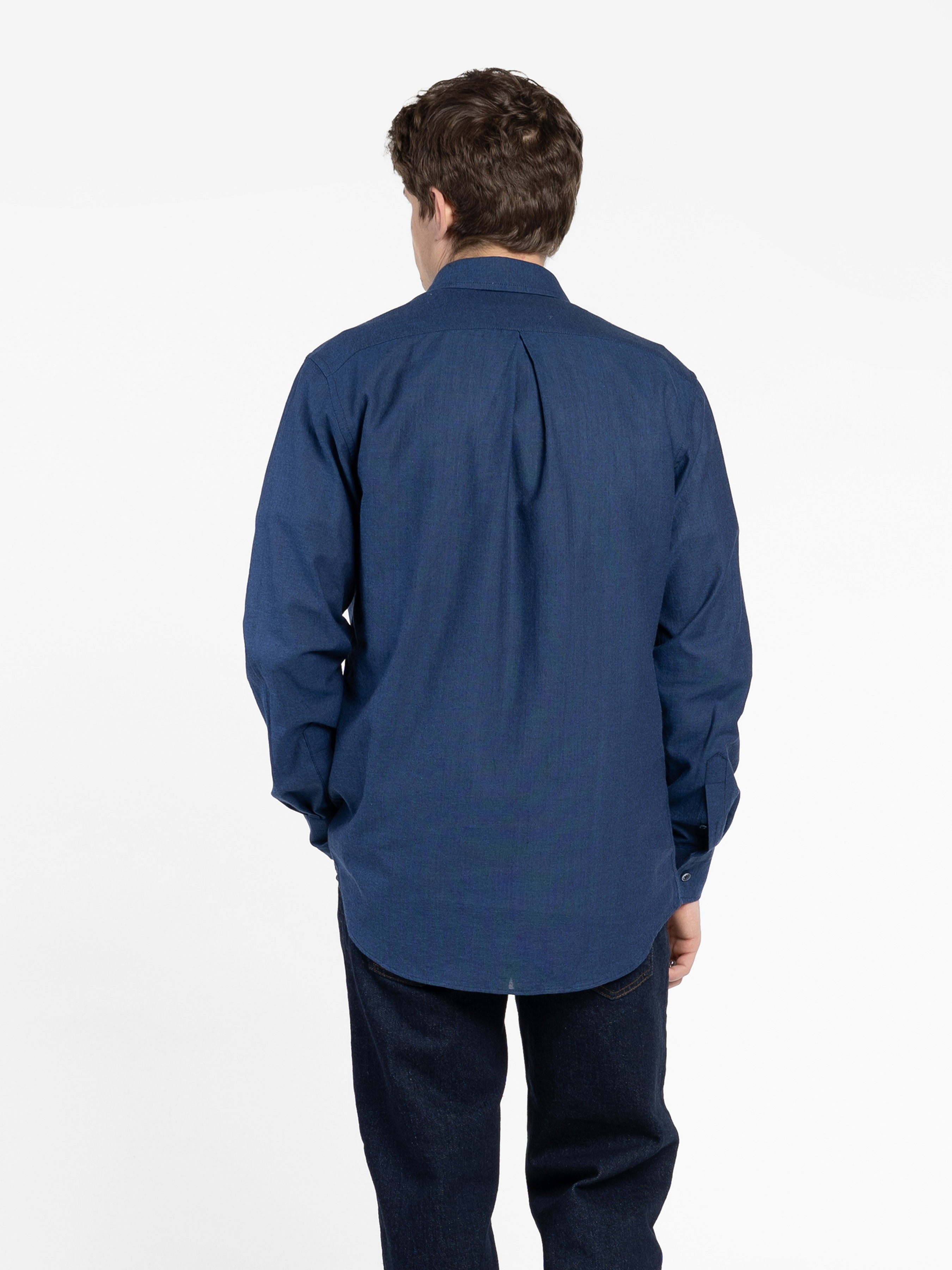 Чоловіча сорочка Arber синього кольору. Модель напівприлеглого силуету створена з легкої тканини 100% бавовни. Модель з відкладним коміром та регульованими манжетами які застібаються на ґудзик, на спинці оброблена подвійна притачна кокетка, лінія низу фігурної форми. Ця елегантна сорочка гарно пасуватиме до будь-якого костюма, піджака або ділових штанів. Модель на фото у розмірі 48. Зріст: 188 см. Параметри: 110/80/100