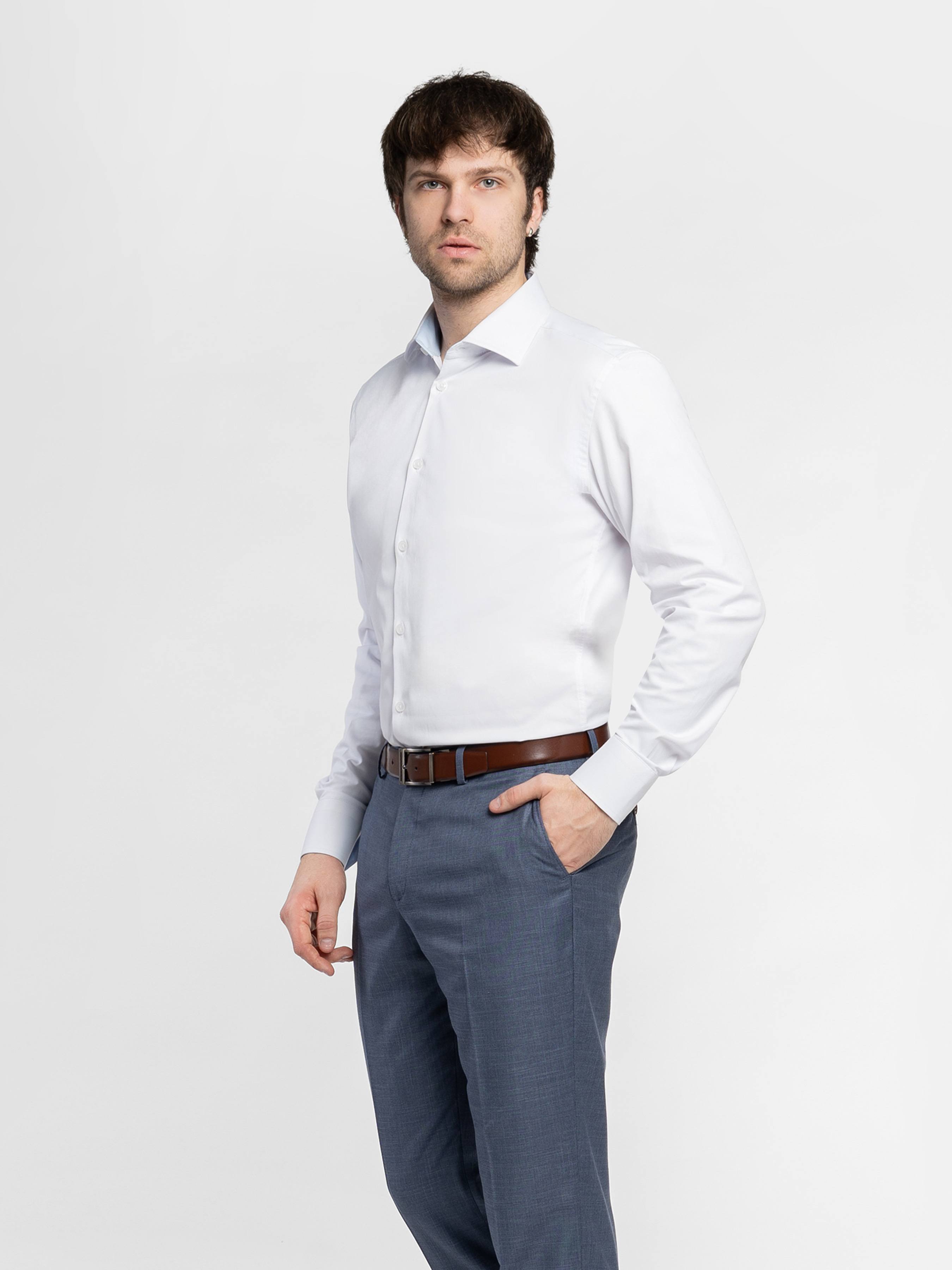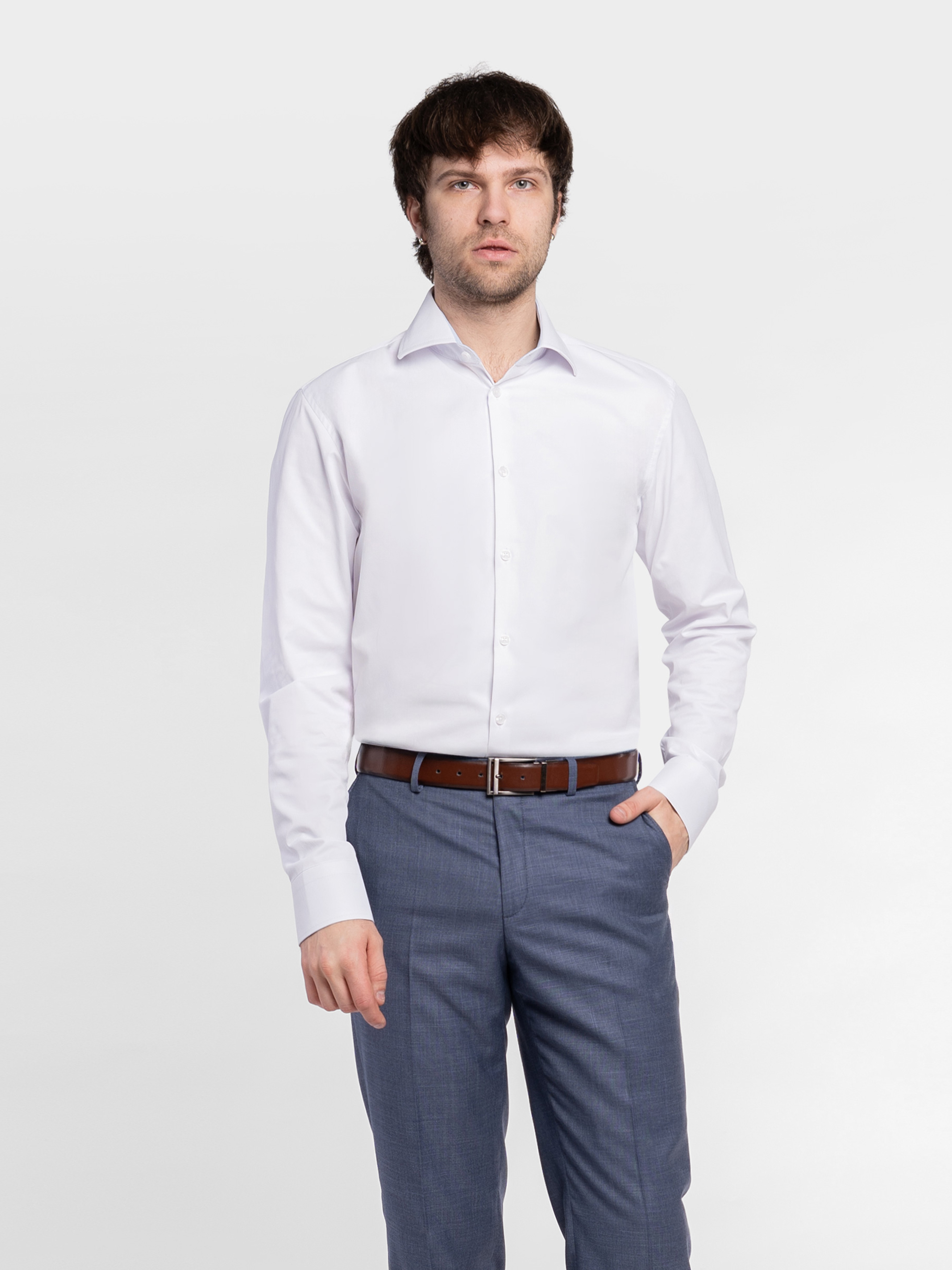 Біла чоловіча сорочка Arber - основа базового гардероба ділового чоловіка. Модель напівприлеглого силуету створена з легкої тканини на основі бавовни з еластаном. Модель з відкладним коміром та регульованими манжетами які застібаються на ґудзик, на спинці оброблена подвійна притачна кокетка, лінія низу фігурної форми. Ця елегантна сорочка гарно пасуватиме до будь-якого костюма, піджака або ділових штанів. Модель на фото у розмірі 48. Зріст: 185 см. Параметри: 103/78/100