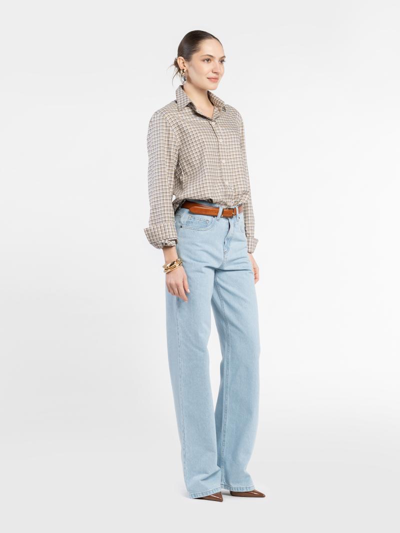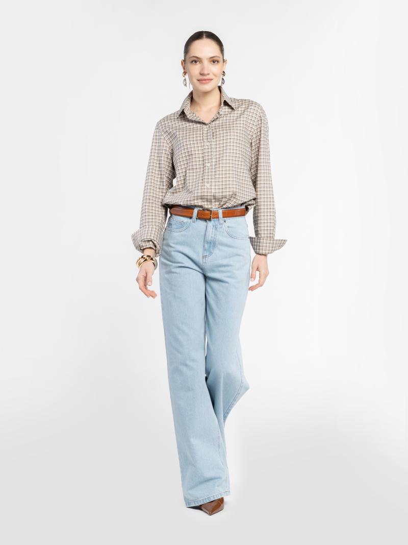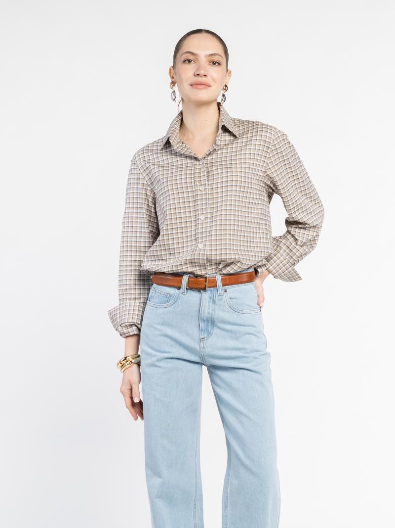 Жіноча сорочка Arber бежевого кольору у клітину, з м'якої тканини на основі бавовни з додаванням синтетичних волокон, забезпечує комфорт протягом усього дня та легко прасується. Модель прямого силуету з фігурною лінією низу та манжетами, що застібаються на 2 ґудзики, додає елегантності. Ідеальний вибір для робочих буднів або офіційних зустрічей, додаючи вишуканості вашому образу. Модель на фото у розмірі 42. Зріст: 175 см. Параметри: 84/61/91