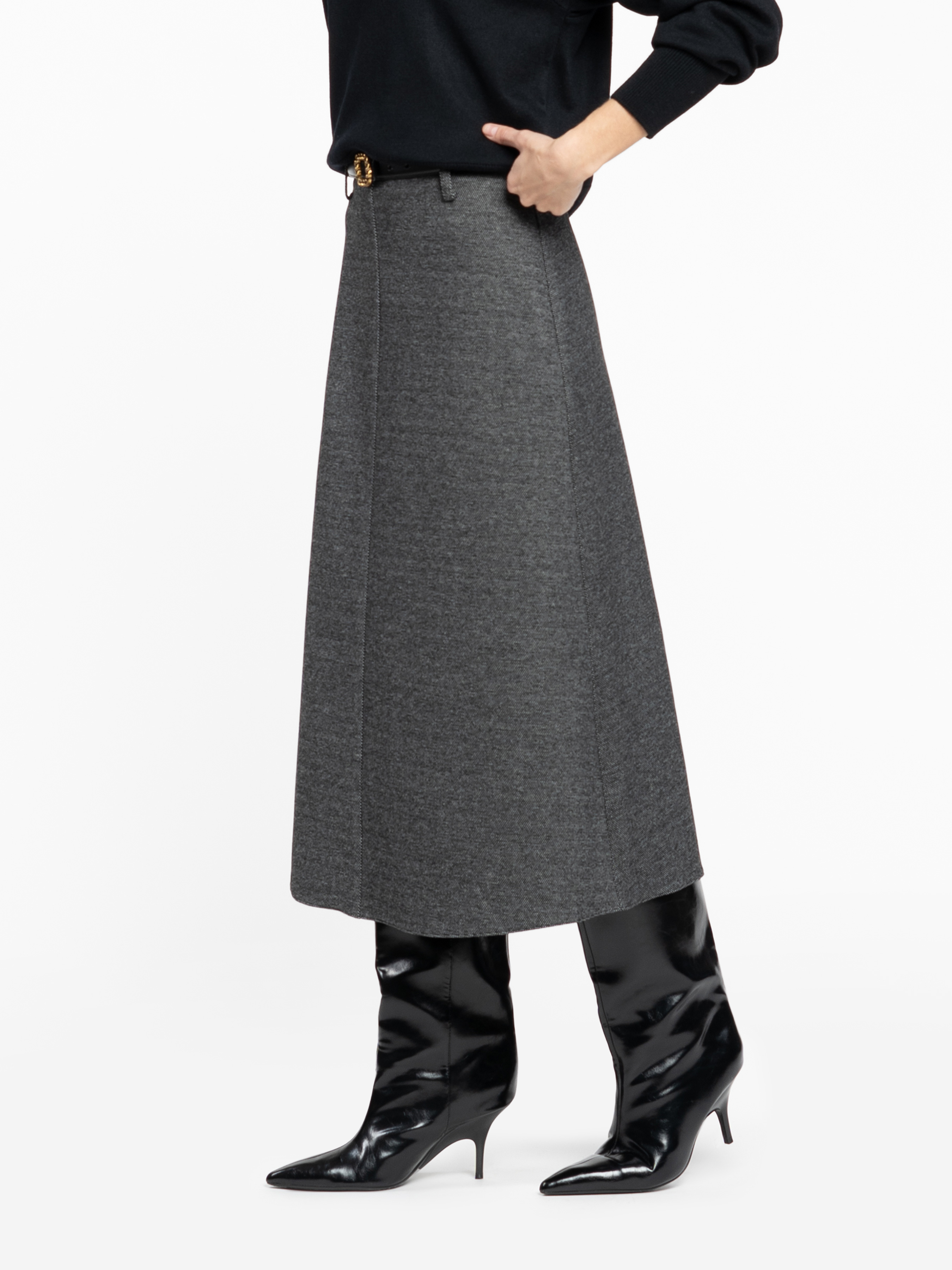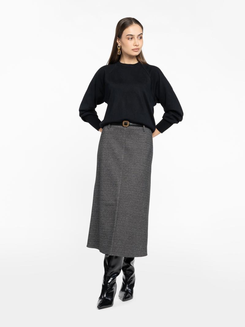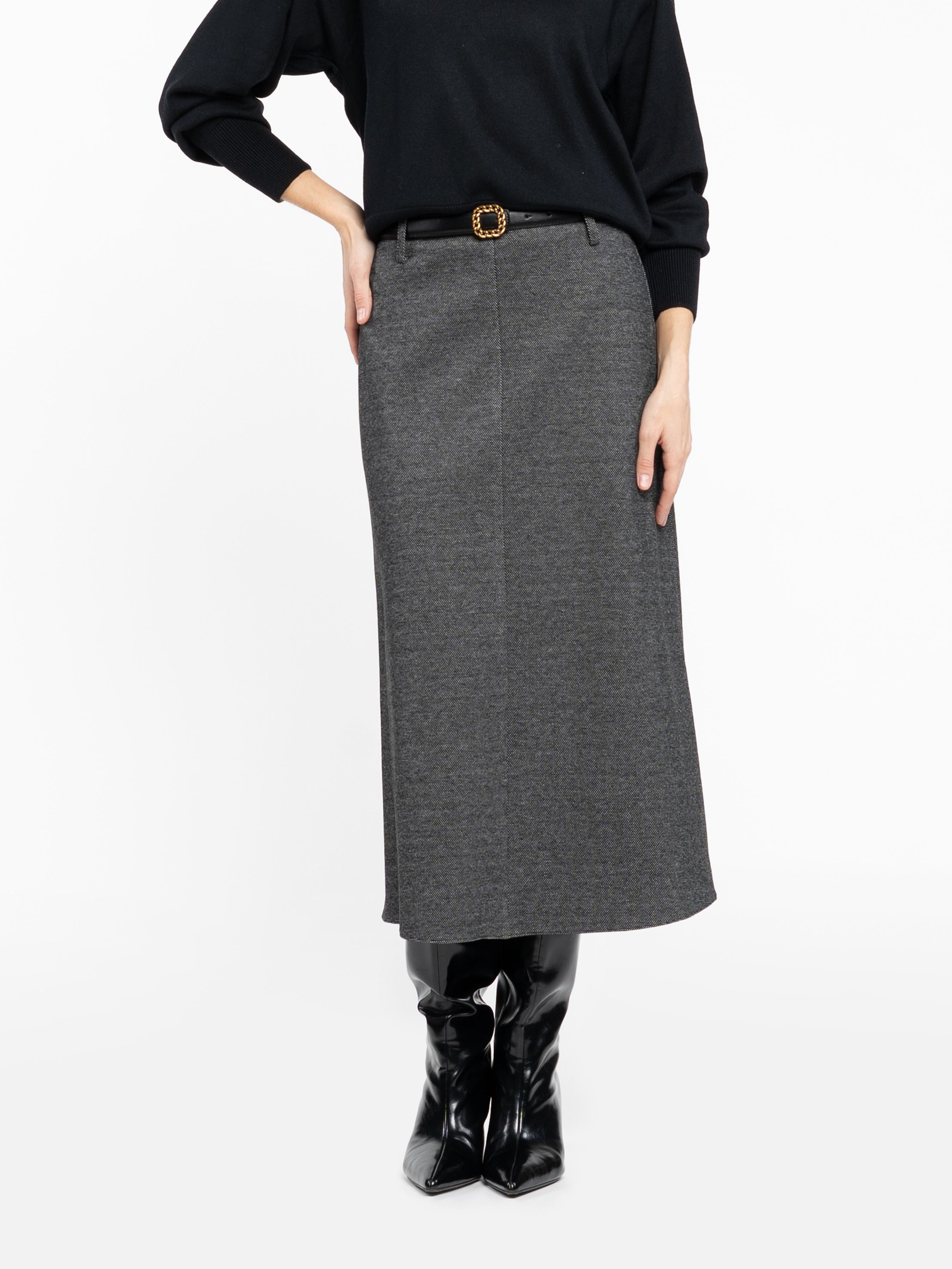 Жіноча трикотажна спідниця Arber сірого кольору створена з м’якої еластичної тканини з ефектом в’язки. Злегка розкльошений силует додає виробу витонченості, а застібка на блискавці забезпечує зручність та бездоганну посадку. Ідеальна для створення елегантних total look. Легко стилізується із сорочками чи джемперами — для повсякденних і вечірніх образів. Модель на фото у розмірі 42. Зріст: 178 см. Параметри: 89/60/90