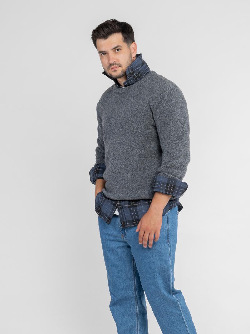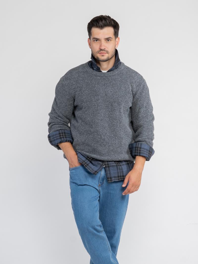 Чоловічий светр Arber сірого кольору з додаванням вовни. Тепла, приємна на дотик тканина дарує комфорт, а вільний крій створює сучасний силует із елегантним і затишним ефектом. Легко поєднується з джинсами або класичними брюками для стильного та невимушеного образу. Модель на фото: розмір 48, зріст 180 см, параметри 103/85/97.