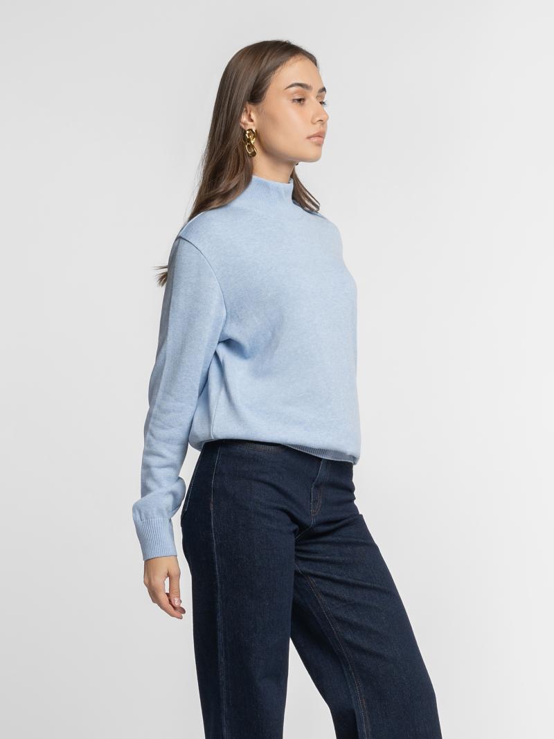 Жіночий светр Arber блакитного кольору виготовлений з натуральної 100% бавовни. Матеріал приємний до тіла, дихає та забезпечує комфорт протягом усього дня. Легка фактура створює відчуття свободи рухів і затишку, а лаконічний дизайн робить светр універсальною базовою річчю, що гармонійно поєднується з будь-яким гардеробом. Модель на фото у розмірі XS. Зріст: 168 см. Параметри: 79/60/88