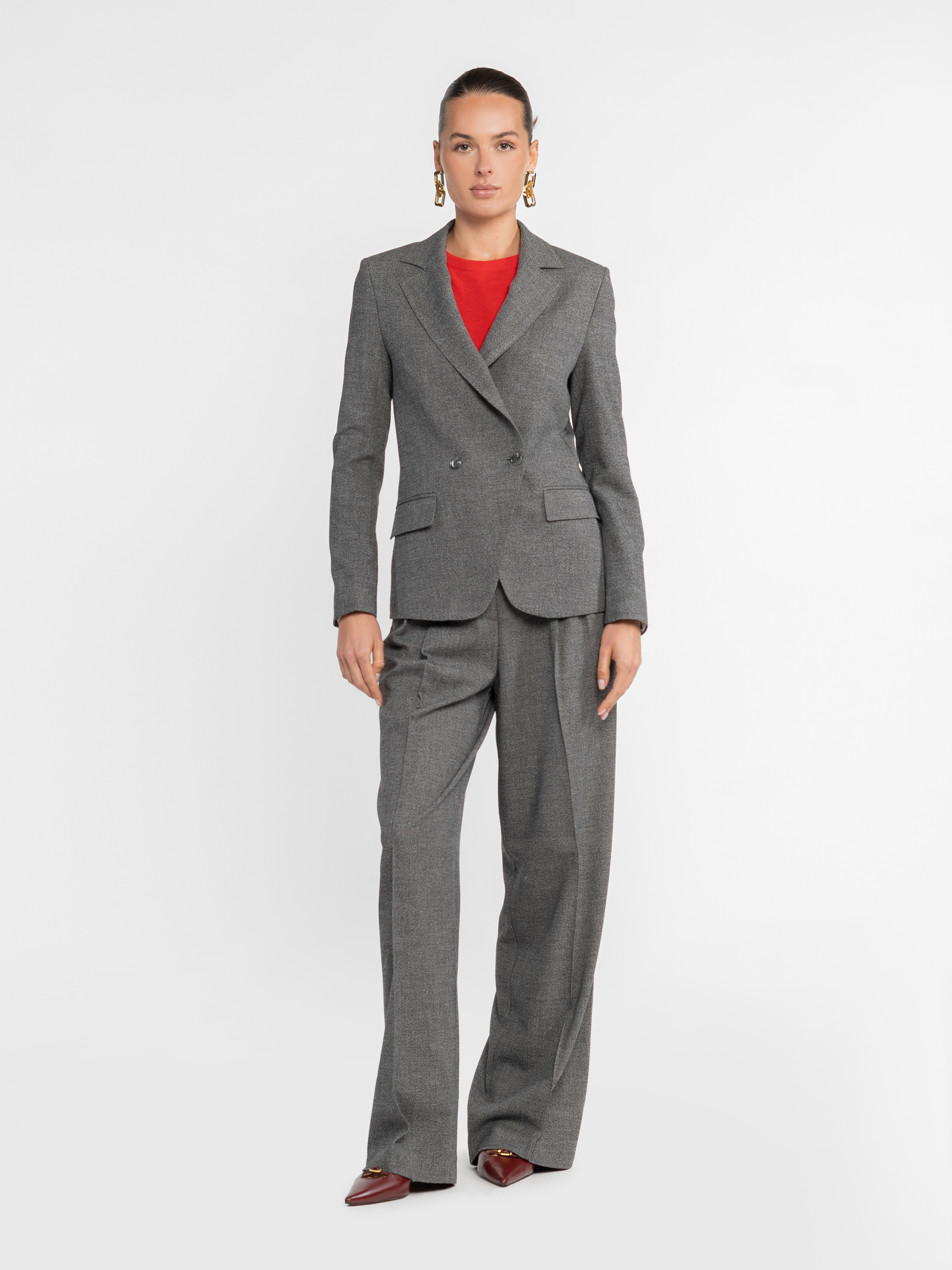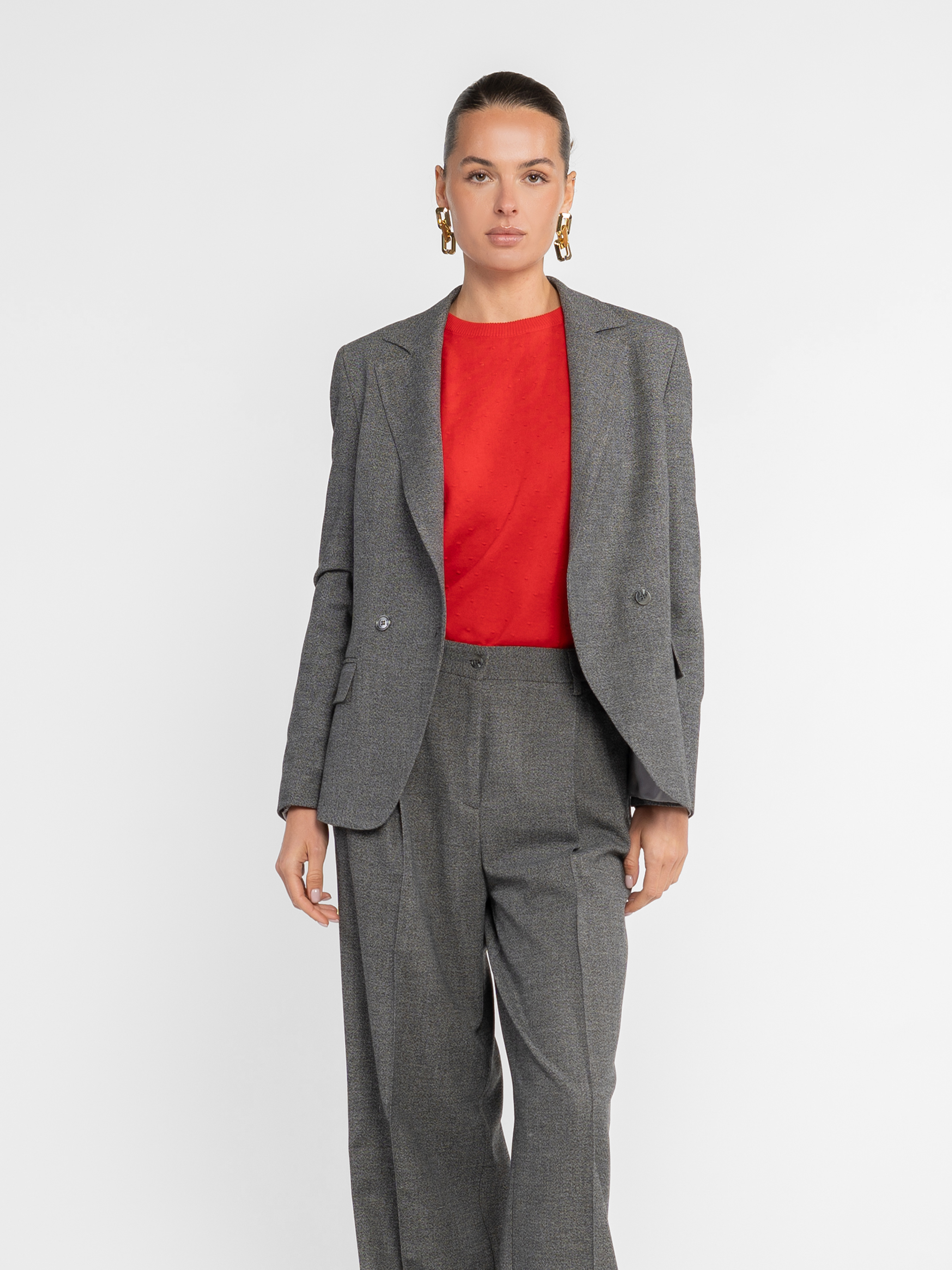Жіночий жакет Arber сірого кольору, виконаний з м’якої тканини з додаванням віскози. Двобортний приталений крій із перехресною застібкою підкреслює талію та додає образу витонченості. Прямі лацкани, прорізні кишені з клапаном і лаконічна посадка формують сучасний силует. Ідеально поєднується з брюками або спідницями, створюючи продуманий total look. Модель на фото у розмірі 42. Зріст: 178 см. Параметри: 89/60/90