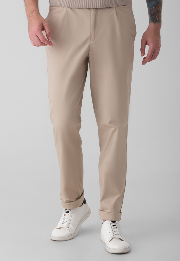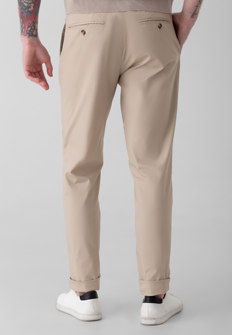 Светло-бежевые брюки chino от Arber, из тонкого экологичного хлопка с добавкой эластана. Эластичная ткань делает их комфортной и удобной. Модель комфортной посадки, суженная к низу, с двумя наклонными боковыми карманами и двумя задними прорезными, застежка на молнию и пуговицу. Брюки бежевого цвета удачно впишутся в повседневный гардероб в сочетании с блейзером, трикотажем или рубашками casual.