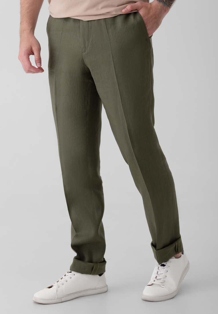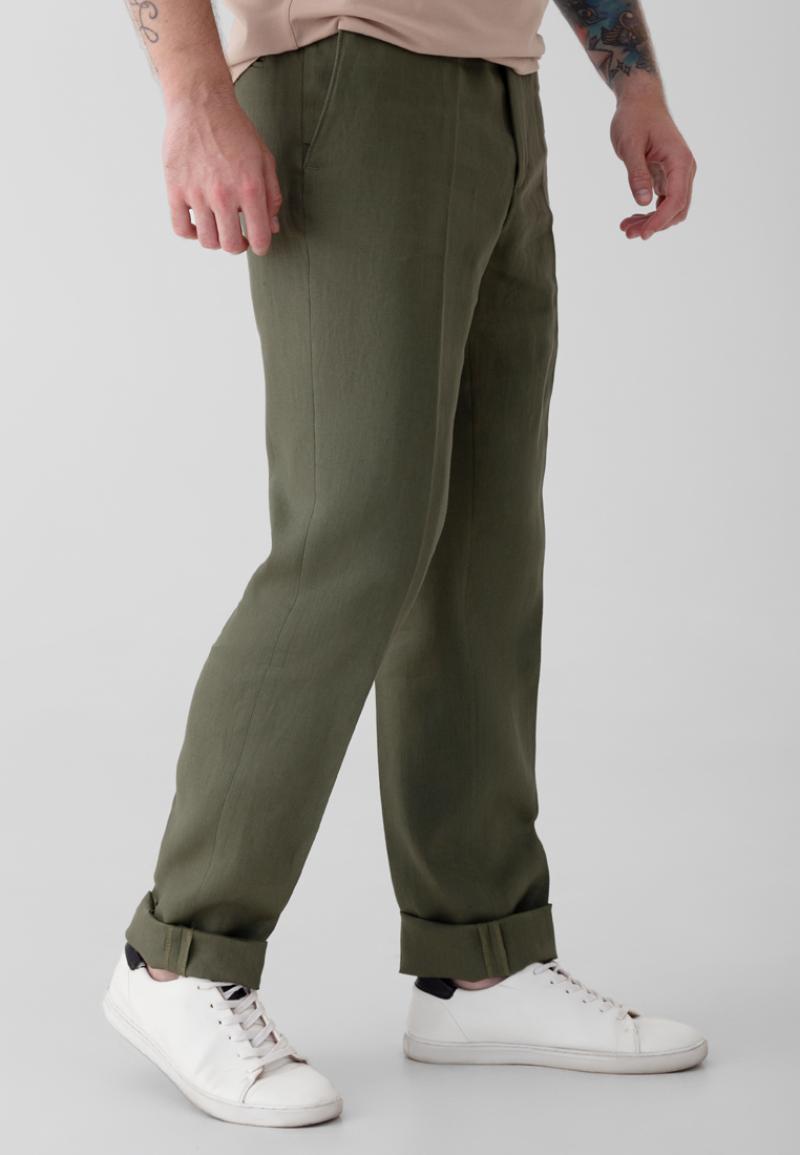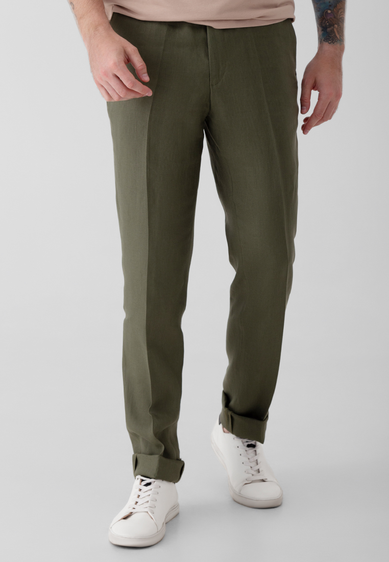 Льняные брюки мужские хаки Arber