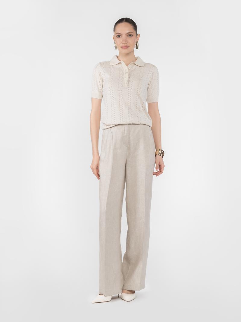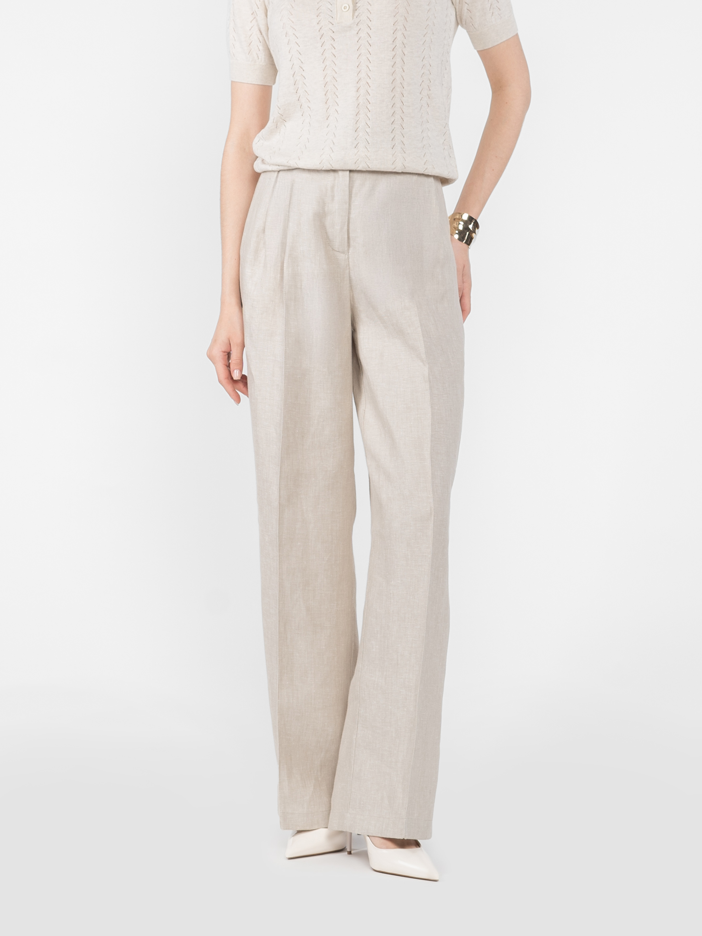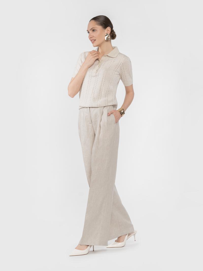 Брюки женские W01.27.16.522 Arber бежевые из 100% льна на высокой посадке