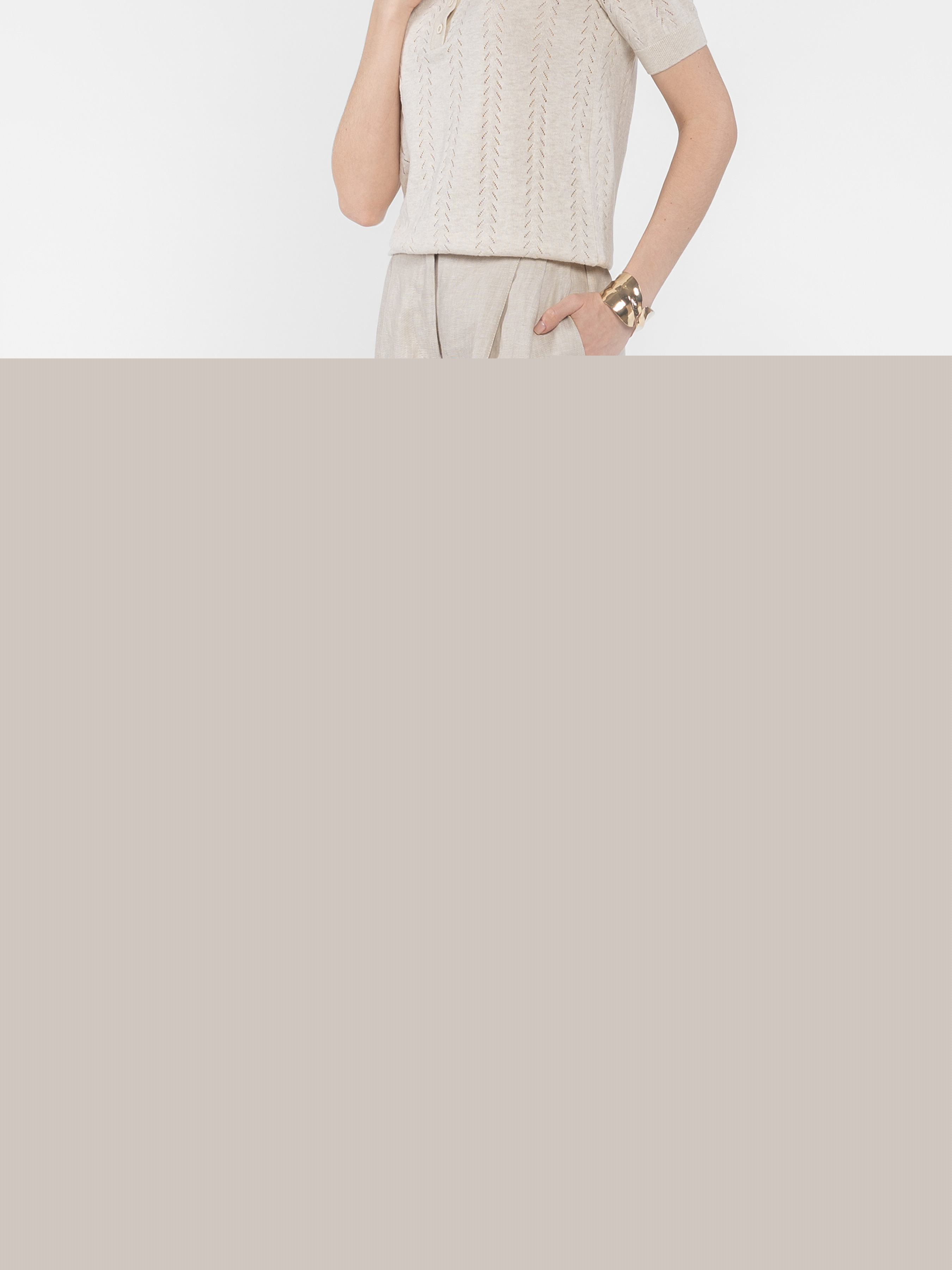 Женские брюки Arber в бежевом цвете выполнены из 100% льна - натуральной, легкой и дышащей ткани, которая обеспечивает комфорт даже в жаркую погоду. Модель имеет высокую посадку и пояс на резинке, что добавляет удобства в носке. Широкий свободный крой, двойные застежки и два наклонных кармана создают идеальный баланс между элегантностью и практичностью. Брюки легко комбинируются с блузами, поло или жакетами, формируя стильные офисные и повседневные образы. Модель на фото в размере 42. Рост: 175 см. Параметры: 84/61/91