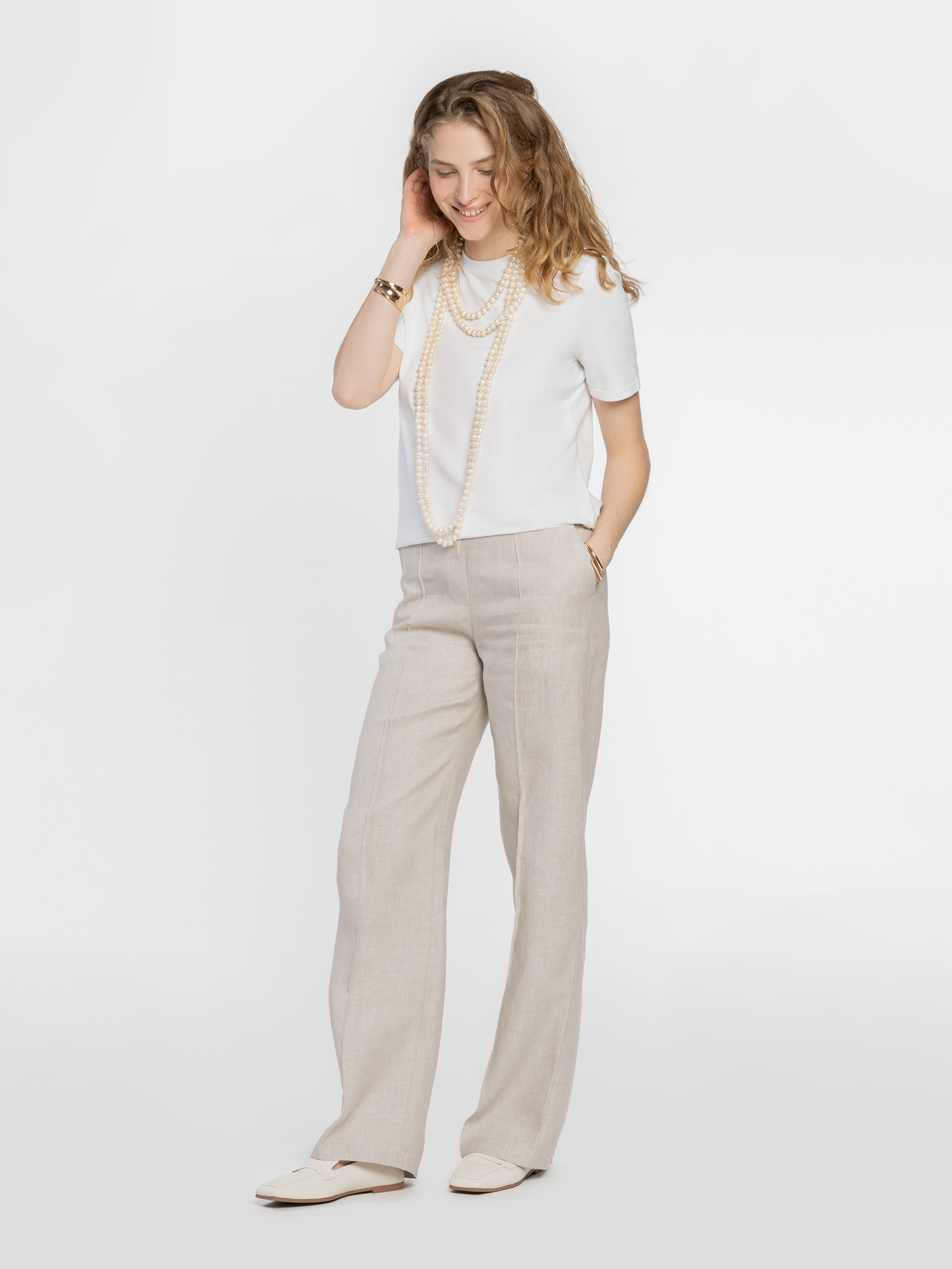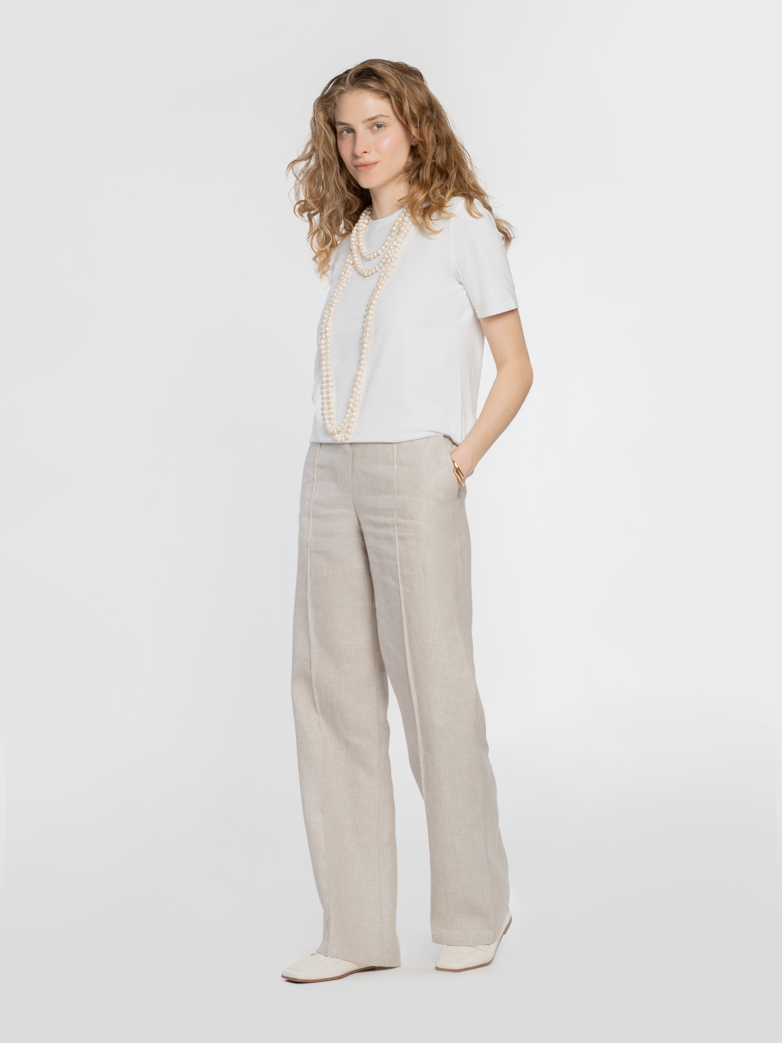 Брюки женские W01.28.16.522 Arber бежевые из 100% льна на высокой посадке прямые