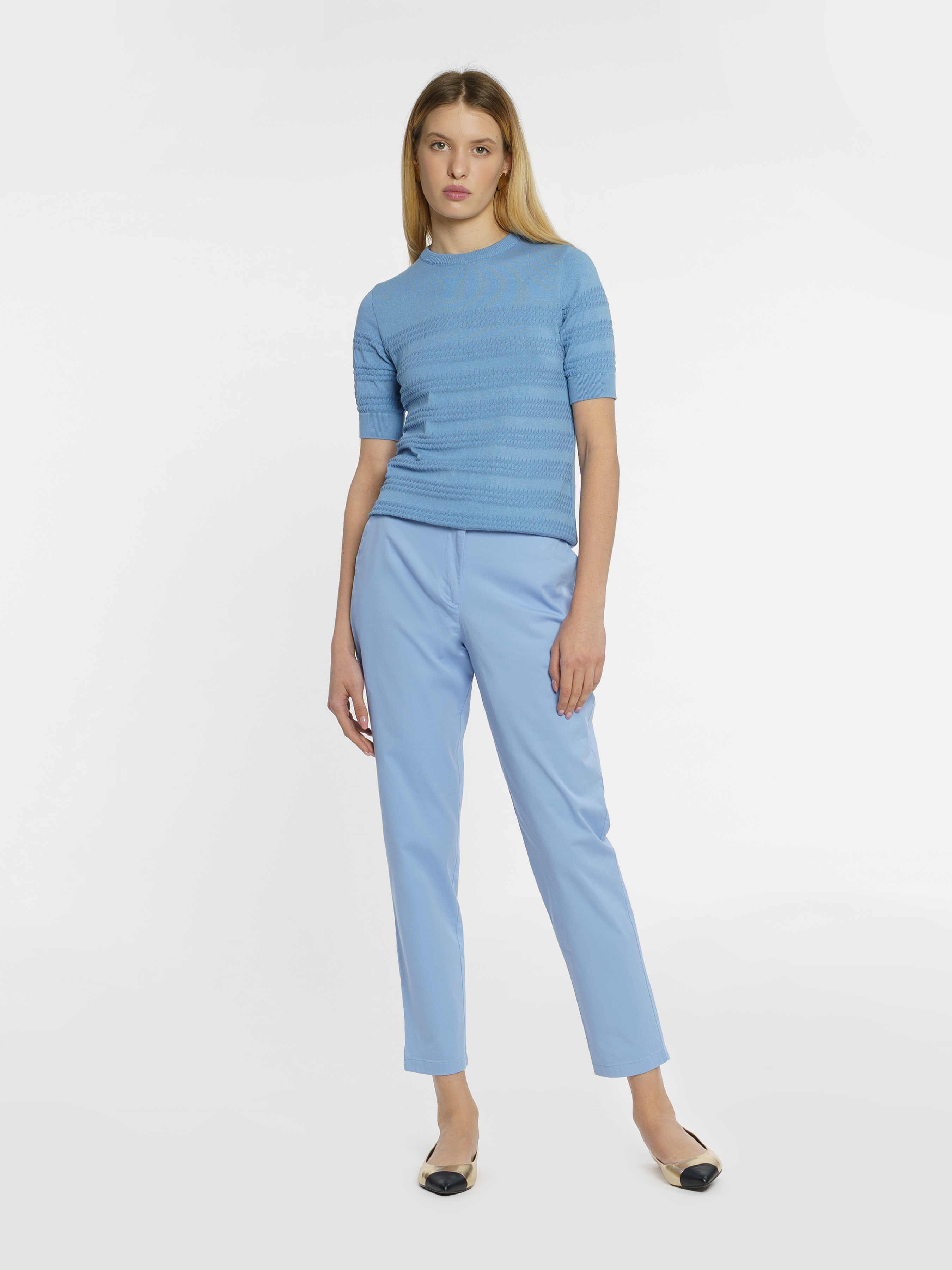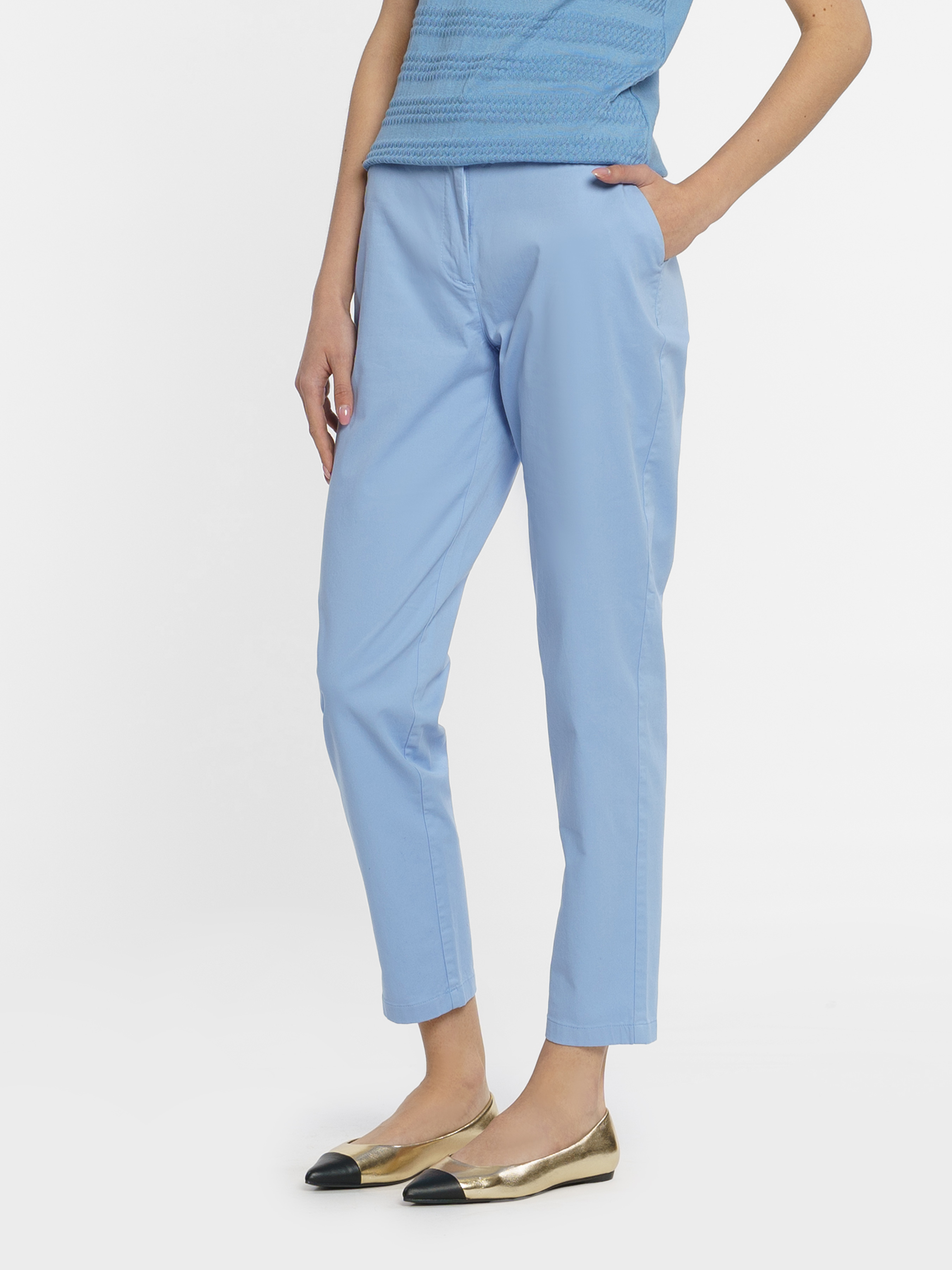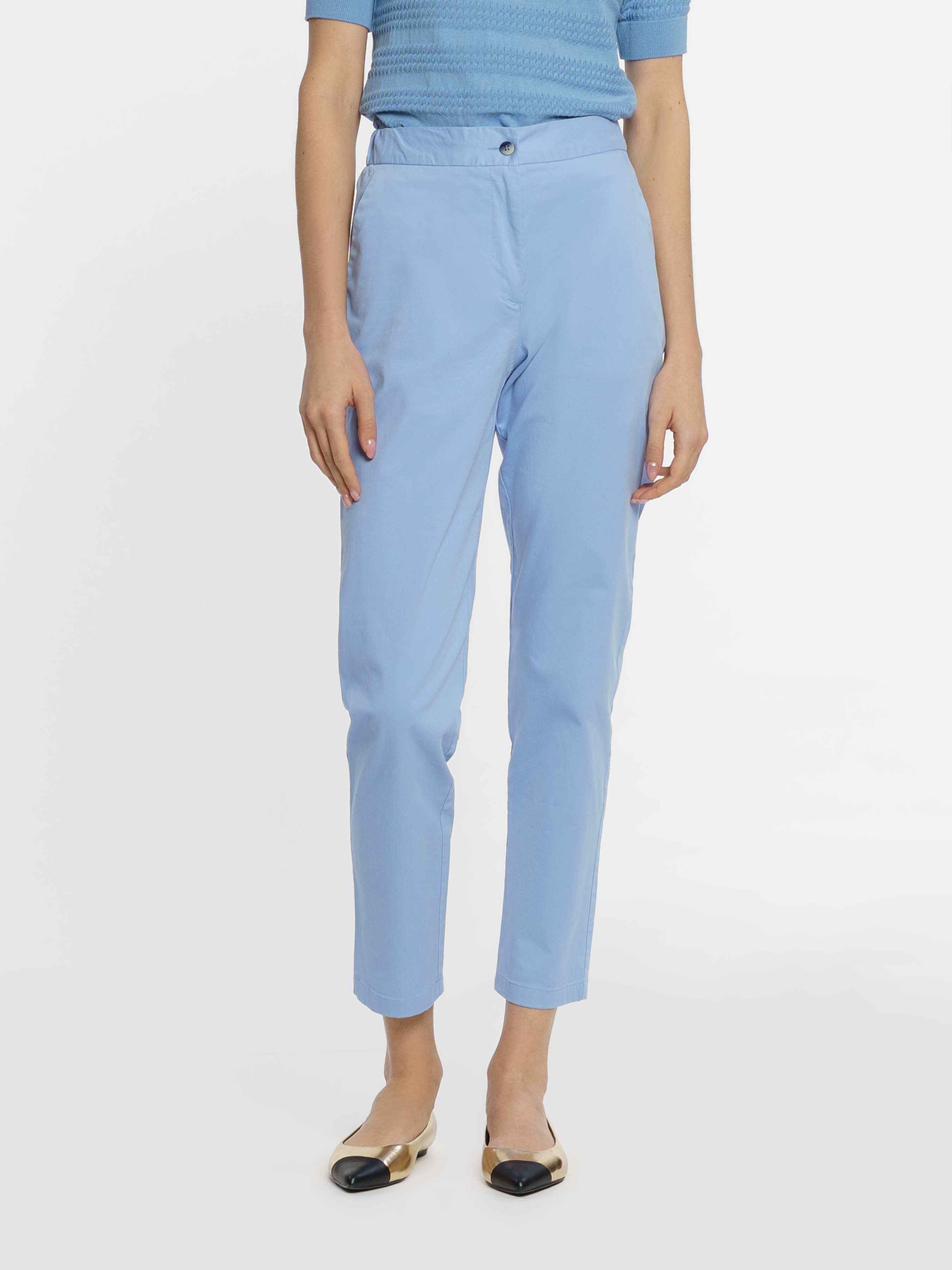 Голубые брюки Arber из хлопковой ткани, комфорт обеспечивает добавка эластана. Средняя посадка, зауженные к низу, имеет с двумя прорезными карманами и поясом на резинке. Изделие прекрасно дополнит повседневный гардероб в сочетании с блейзером, трикотажем или рубашками casual.
