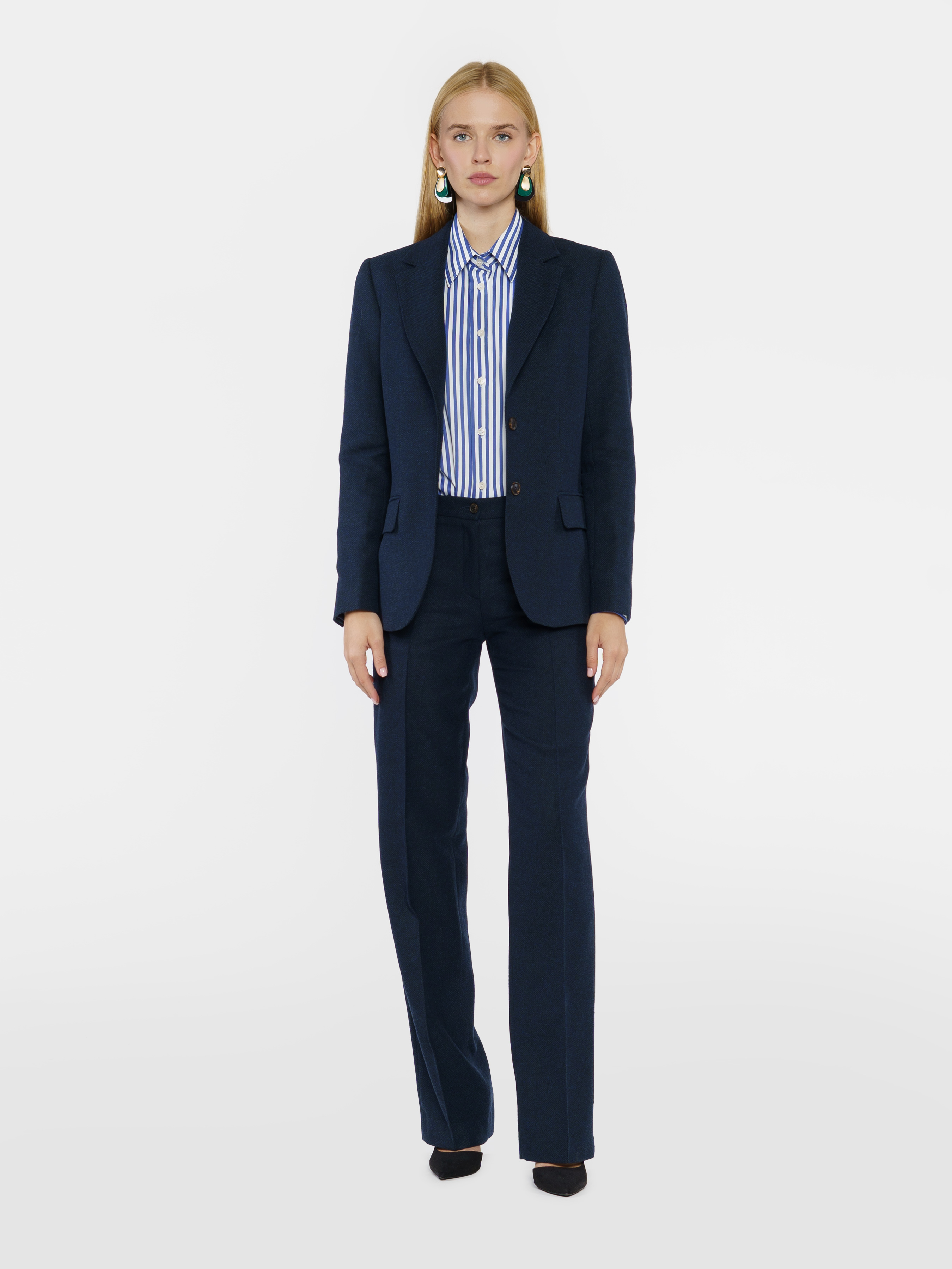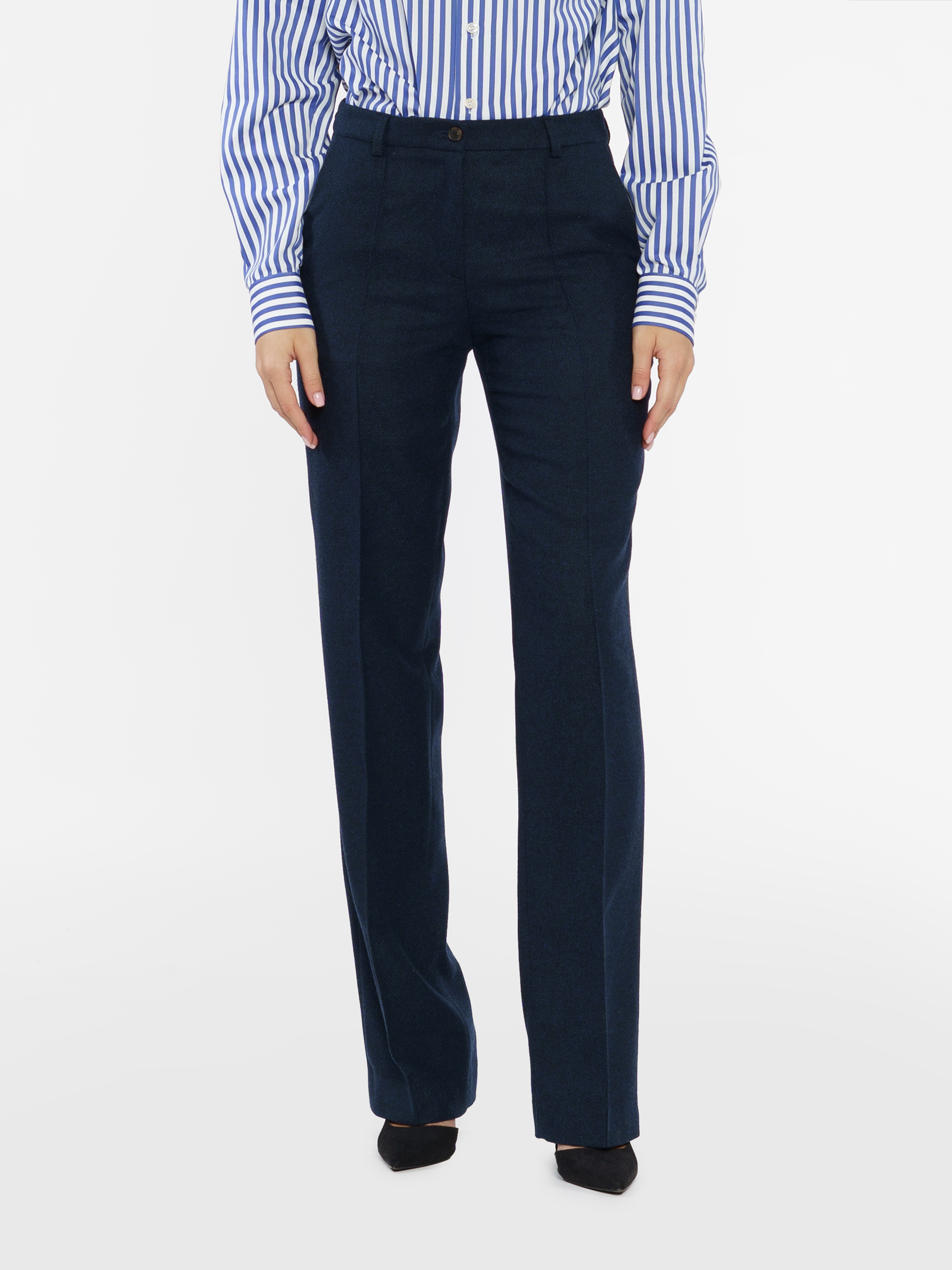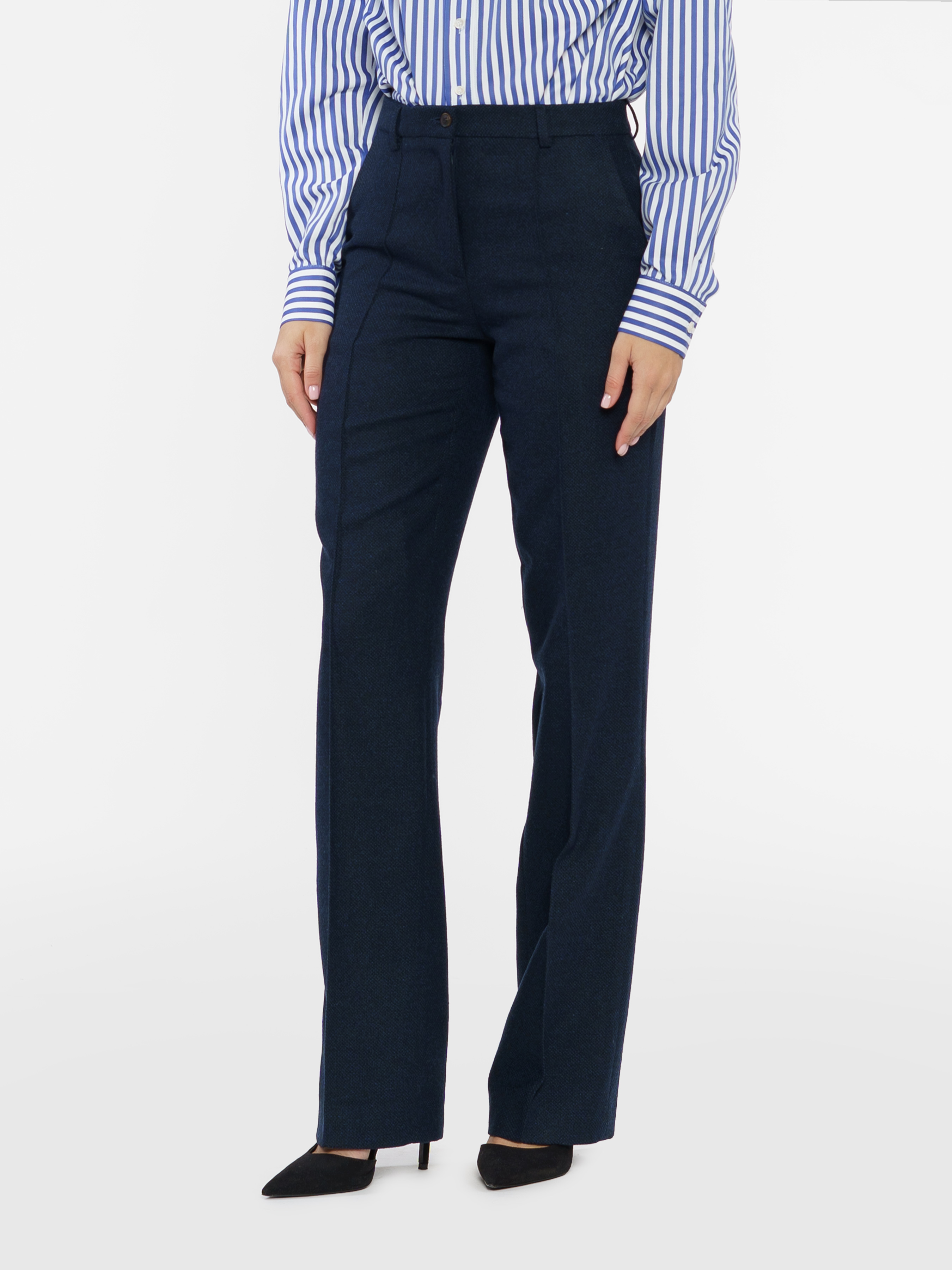 Женские брюки Arber синего цвета из шерсти, прекрасно сидят на фигуре, не сковывают движений. Мягкая, фактурная ткань на основе шерсти, позволяет сохранить и удерживать тепло, при этом ткань практичная, не мнется, устойчива к загрязнениям. Брюки имеют среднюю посадку, прямой крой со стрелками и пояс, застегивающийся на пуговицу и молнию. Особенно замечательно смотрятся в комплекте с жакетом W02.03.07.433 из такой же ткани. Модель на фото в размере 42. Рост: 175 см. Параметры: 84/61/91